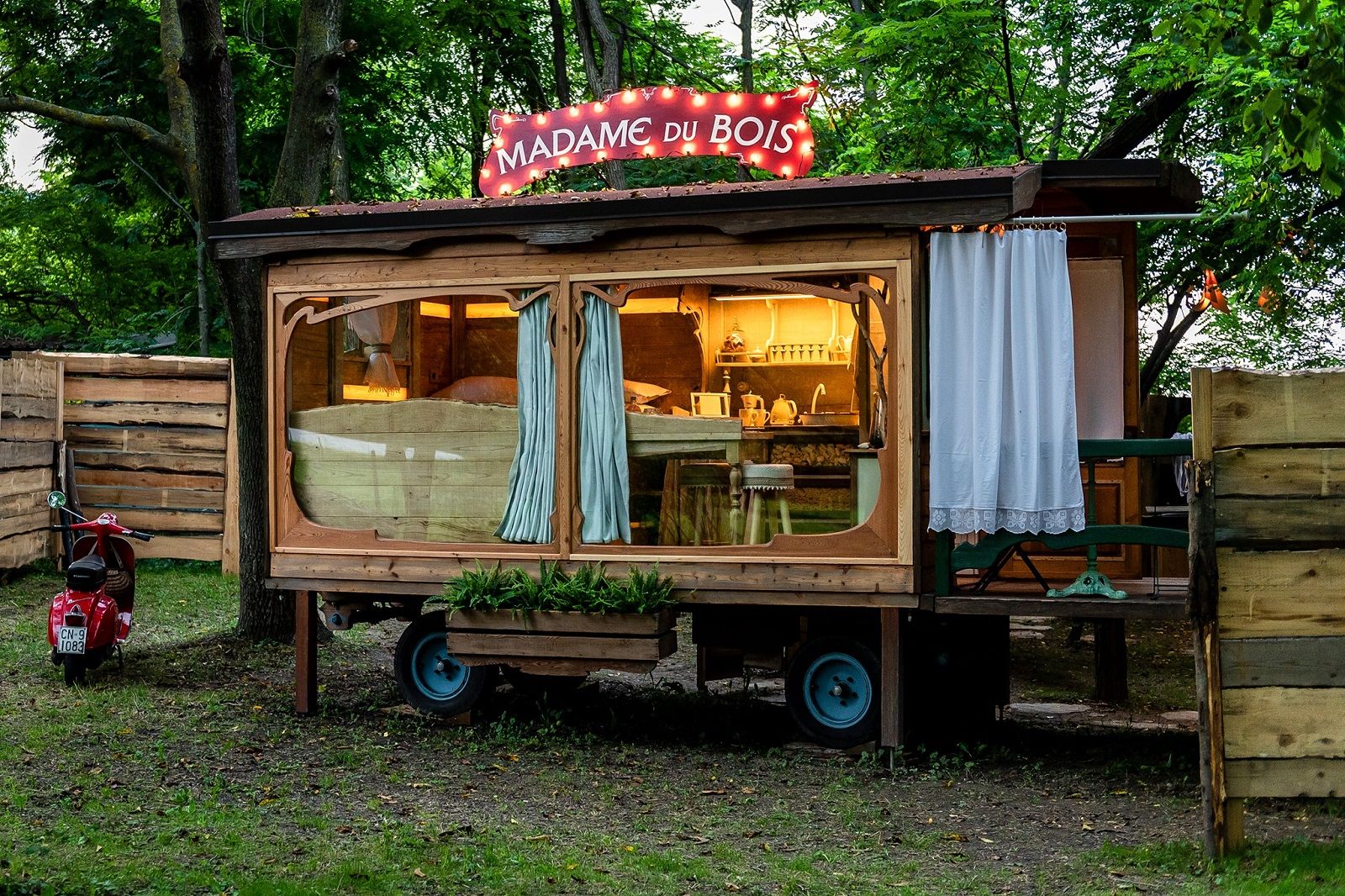 Per apprezzare questo alloggio a Borgo San Dalmazzo dovete avere uno spirito romantico e bohémien. Questa casa nei boschi è un carro in legno di larice e castagno, costruito a mano durante i mesi di lockdown da un artigiano del luogo che lo ha arredato con oggetti di recupero, e si chiama Madame du Bois. Secondo la leggenda, Madame du Bois nacque nel 1846 a Parigi da una famiglia circense che sognava per lei un futuro da trapezista. Peccato che la ragazza soffrisse di vertigini, così ripudiata dal padre, fuggì. Divenne la più famosa addestratrice di cavalli del secolo scorso e continuò a viaggiare su una carrozza gipsy. Affascinante, no?