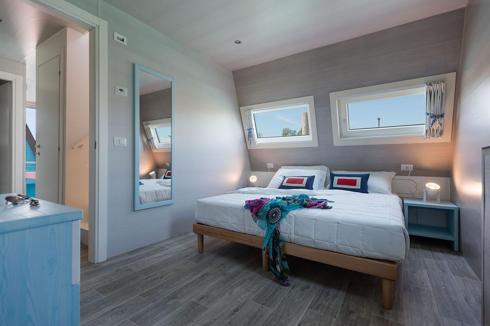 Questa houseboat che si riflette nelle acque verde smeraldo del fiume Tagliamento sembra uscire da un quadro. Qualche curiosità: la struttura è ispirata ai casoni, caratteristiche abitazioni dal tetto spiovente fatte di canne palustri ed usate dai pescatori lagunari dell’Alto Adriatico, mentre i colori accesi ricordano le tipiche casette dell’isola di Burano.