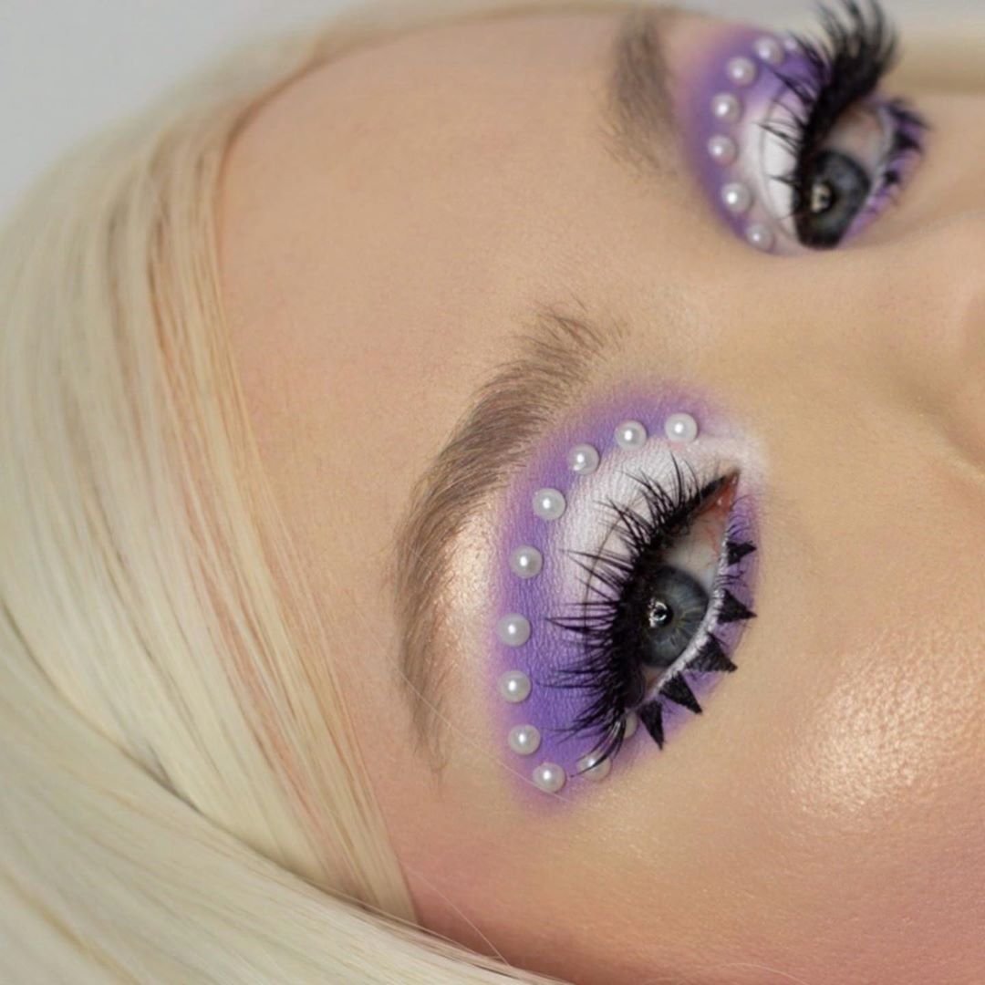 In terms of make-up to match with the pearls, there are no rules, it depends on the aesthetics and the results you want to achieve and on personal taste: pearls create a lovely match with a basic, nude make-up with a gentle linear black eyeliner, as well as with colours, for a bold and vibrant look. Either way, make-up needs to be dry before you start applying the pearls, otherwise, they won't stick to the skin and may come off easily.