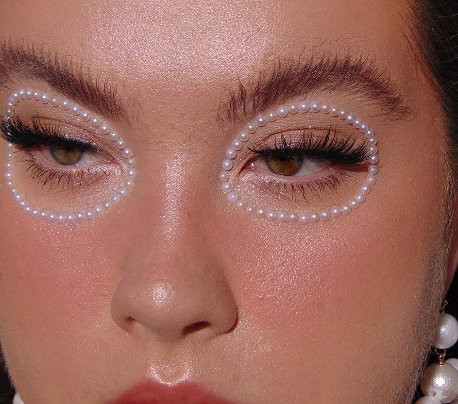 Minimalism, but with a transgressive flair. All we need is to place a few pearls on our face, here and there, over a nude make-up, for a sensual and delicate look. But how can we do this?