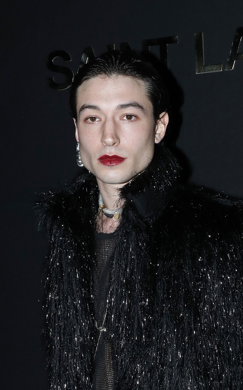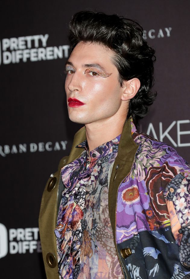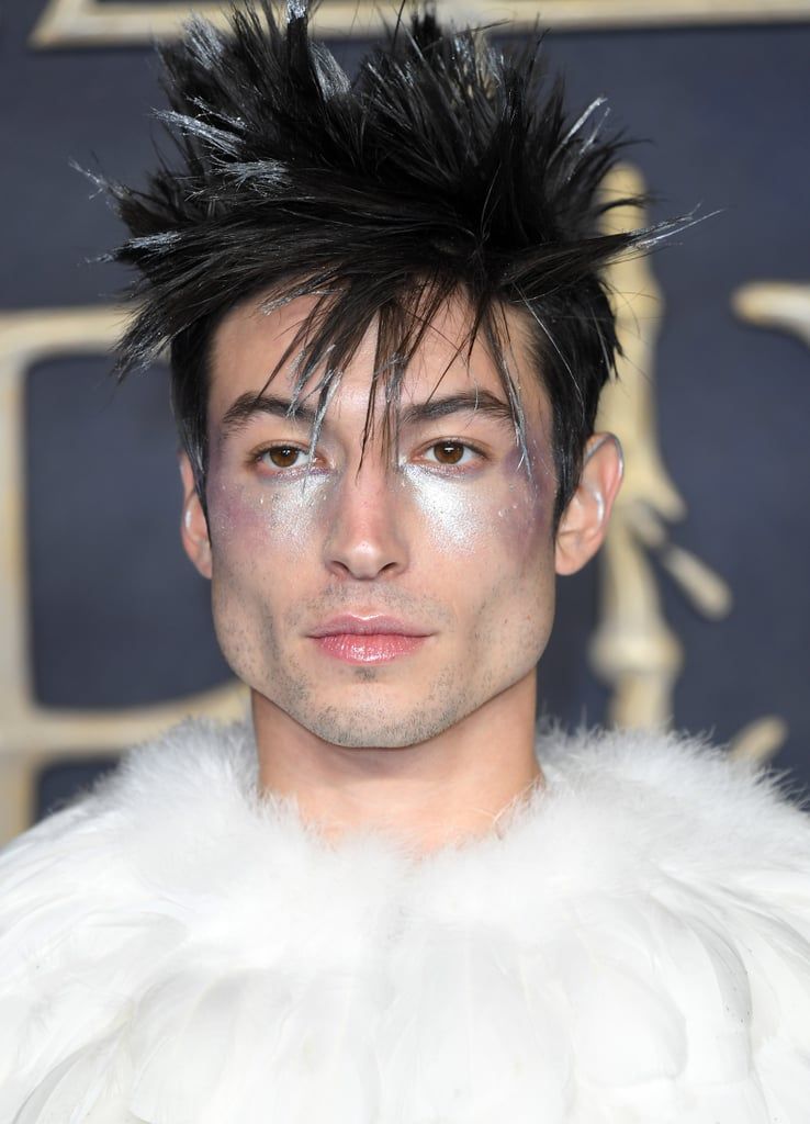 Eclectic and sophisticated, Ezra Miller always offers gothic and 70s inspiration in his beauty looks, playing with glitter and colors of the lipsticks, eyeshadows and highlighters. Real make-up, elaborated and adapted according to the occasion and style. One of those that impressed us the most was shown a year ago during the Paris Fashion Week FW19, during the Saint Laurent fashion show: diaphanous complexion, almost vampiric, and red lips, gel-effect hair pulled backwards by a hair clip jewel. Wow!