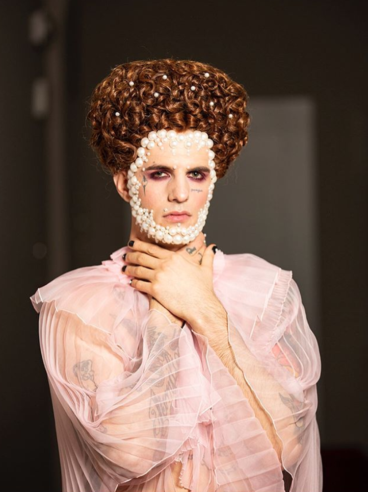 Lauro De Marinis, aka Achille Lauro, in recent years, has gone from purely "trap" aesthetics made up of pigtails, grills on the teeth and visible jewels, to an almost extremely feminine look, reaching its peak during the last Sanremo Festival 2020. After having already surprised the rap-trap scene with a change of style also from the musical point of view, Lauro begins to wear boots with heels, latex and makeup, to amaze everyone in Sanremo with spectacular Gucci total-looks, designed by Alessandro Michele, inspired respectively by San Francesco, Marchesa Luisa Casati Stampa, Elisabeth I Tudor and David Bowie.