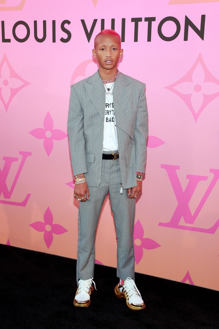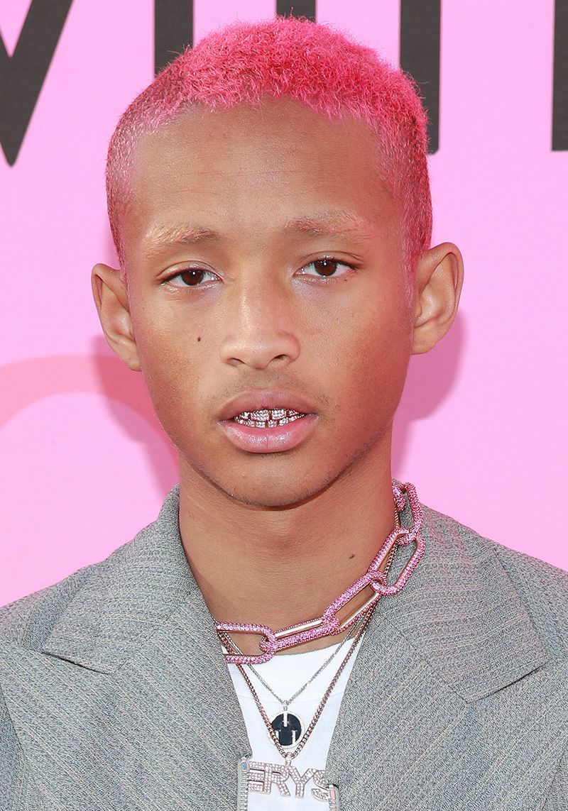 Jaden Smith, son of the icon Will Smith, undoubtedly loves to amaze the audience with his Louis Vuitton outfits - he is ambassador of the maison - and his dyed hair. After the green (of his more rebellious period) and the blond, seems like pink has become Jaden's favourite hair colour. In addition to her hair, he showed off a total pink beauty look during the Louis Vuitton X cocktail party in Beverly Hills last year, including eyebrows, lip gloss, hair and jewellery, all in neon pink shade.