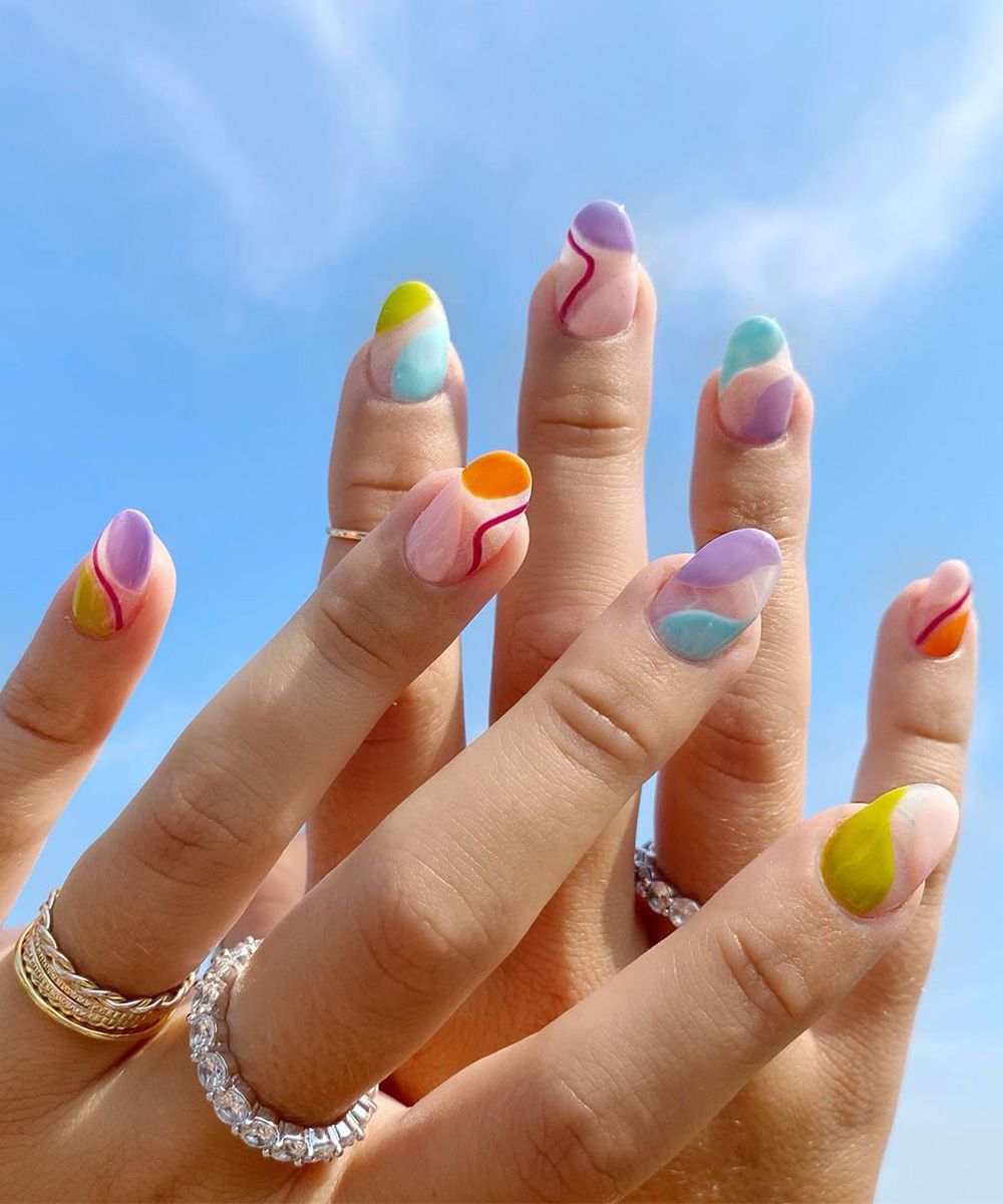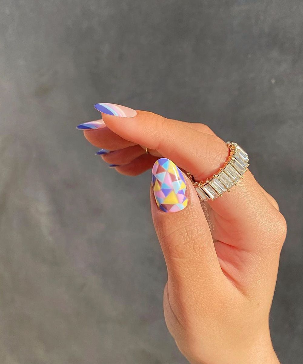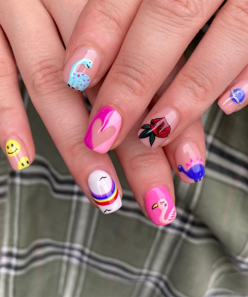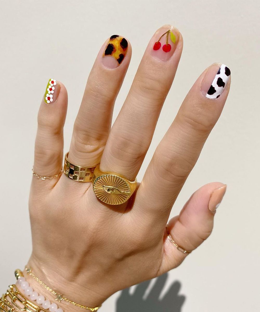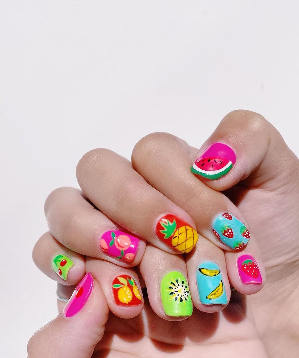 Probably the most popular nail art on our Instagram feeds during the summer and still very present on the profiles of nail artists and beauty addicts: the best way to express yourself 100%, nail after nail, is to choose a mix of patterns, decorations, designs and themes for each nail, for a super fun and colorful result.