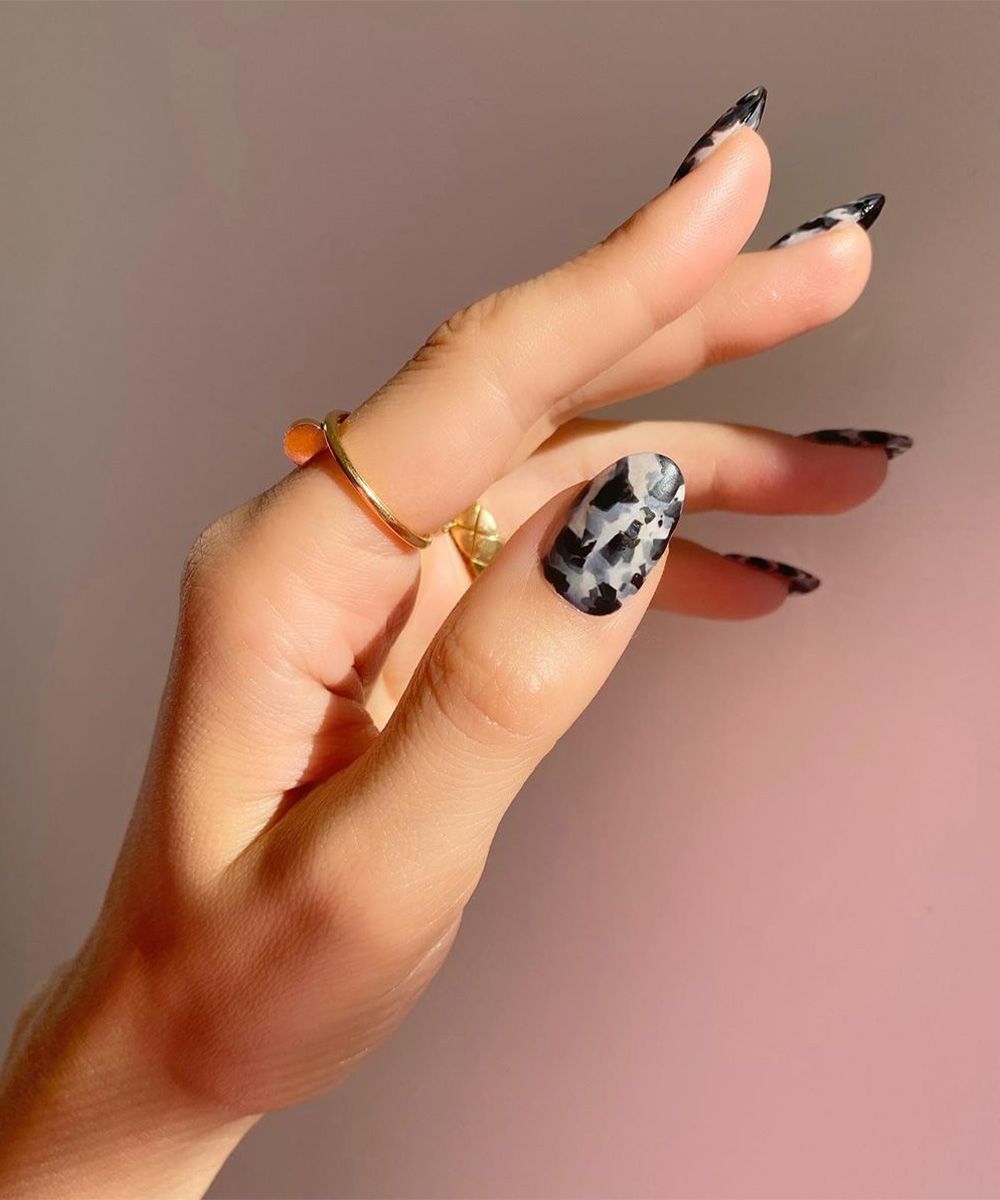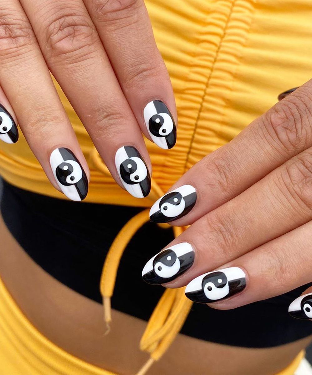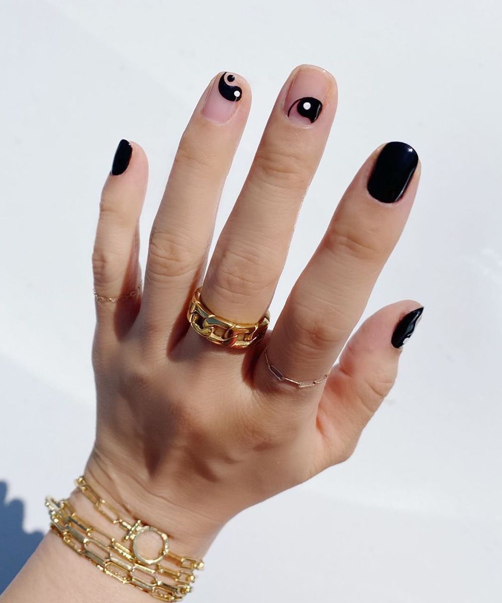 Two opposites that attract each other - black and white - come together in a graphic nail art that recreates different cool patterns: from the cow print, which has already won over beauty enthusiasts during the summer, to the yin and yang symbol, to the checked pattern. Go for creative combinations.