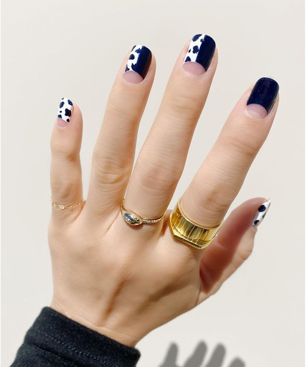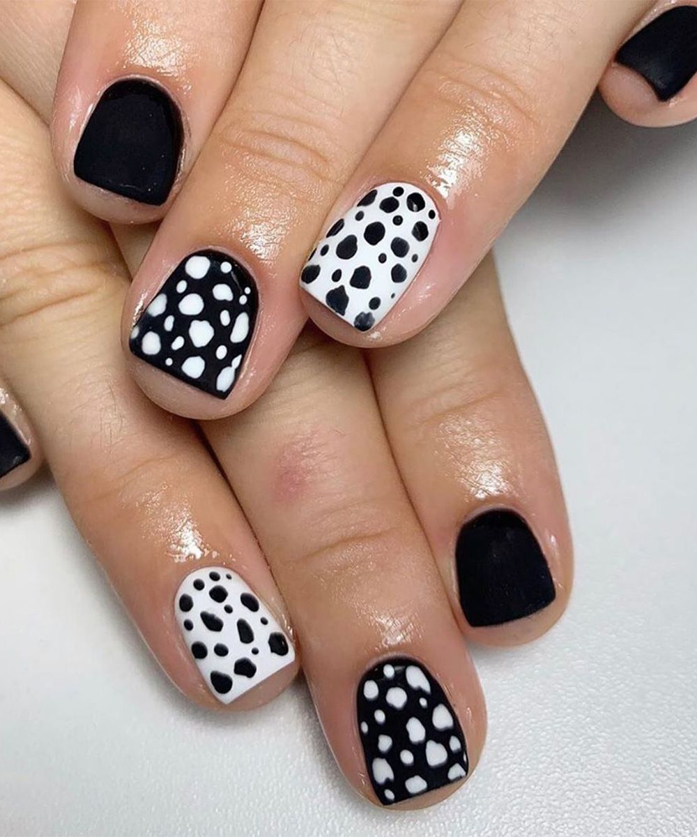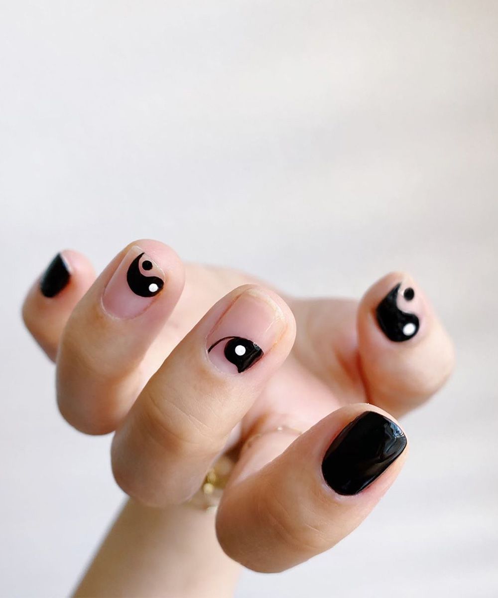 Two opposites that attract each other - black and white - come together in a graphic nail art that recreates different cool patterns: from the cow print, which has already won over beauty enthusiasts during the summer, to the yin and yang symbol, to the checked pattern. Go for creative combinations.