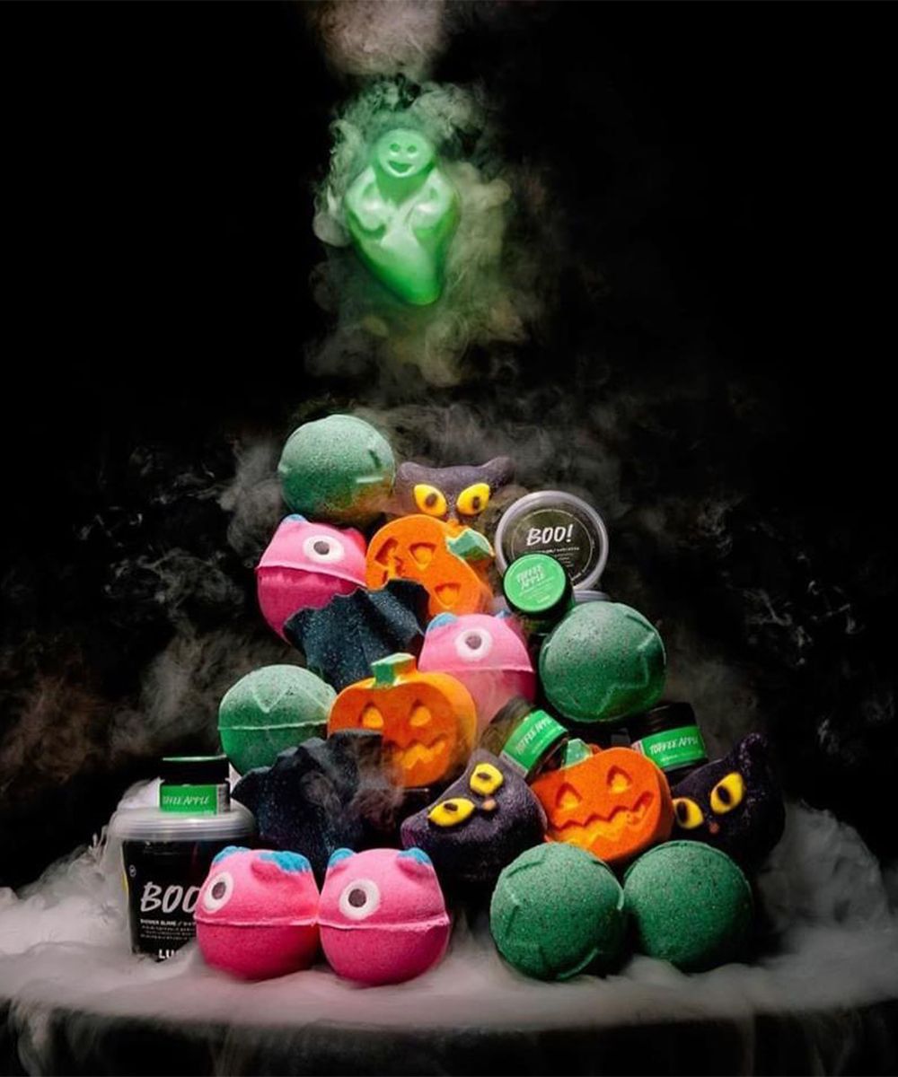 The box contains two bath bombs and a bubble bar: Punkin Pumpkin, Lord Of Misrule and Bewitched. With spectacular sparkles and bergamot-scented foams, you will fall in love with these fun and scary products!