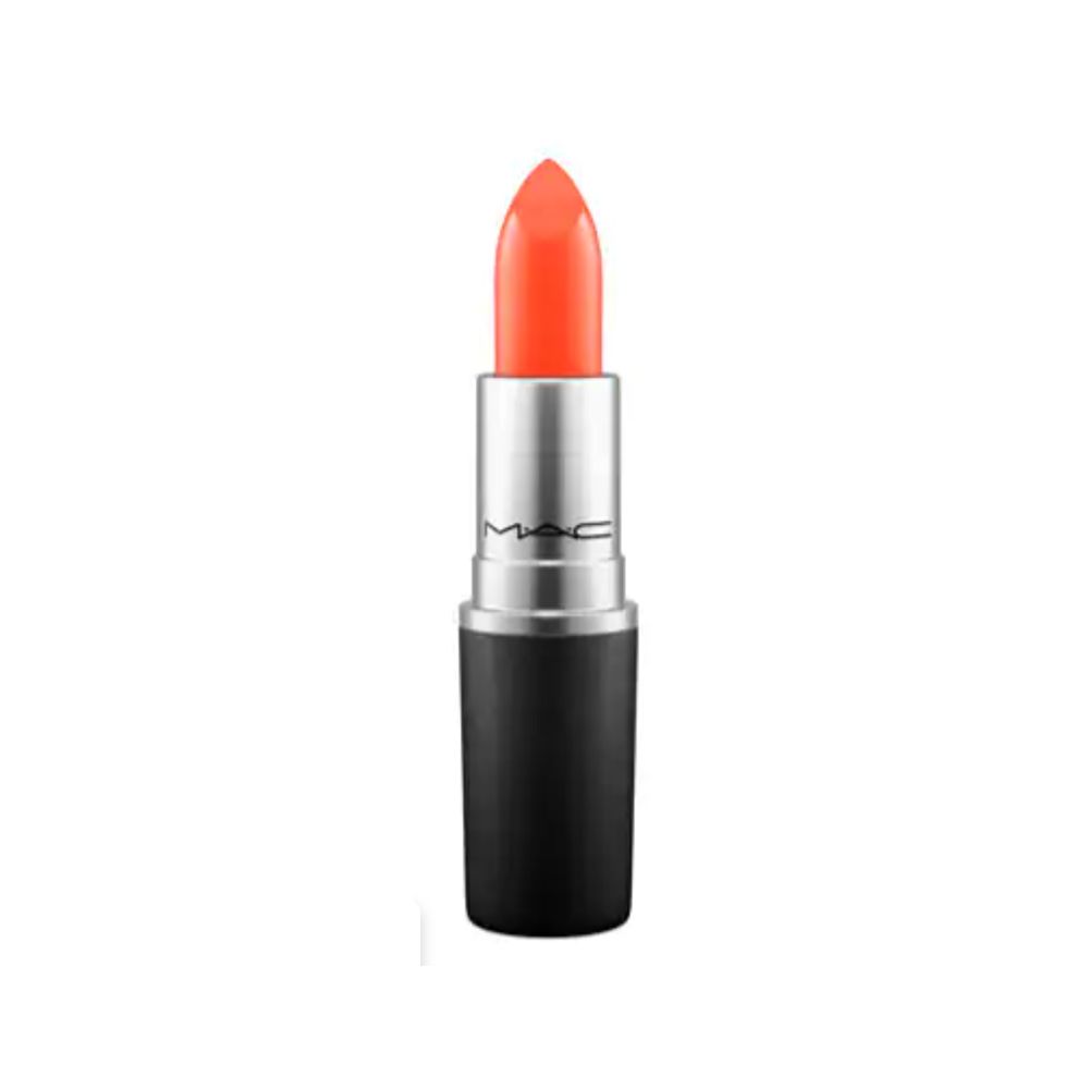 The iconic MAC Lipstick with a light and creamy formula, with moisturizing power, in a bright orange shade, is intense and guarantees full coverage and a semi-gloss finish.