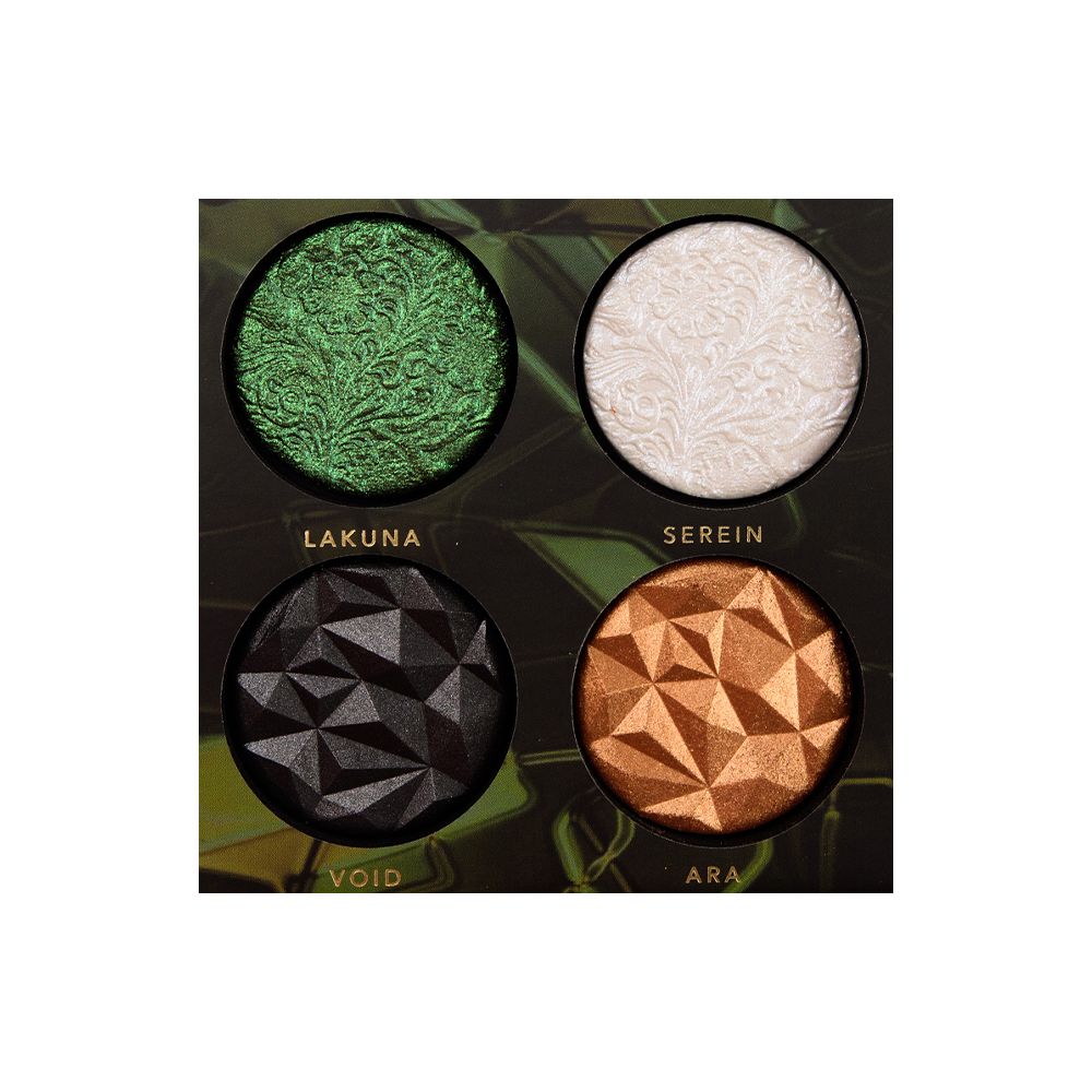 A palette that contains four shades in a color combination that does not go unnoticed. Two colors sparkle with different shades, inspired by the wonderful world of nature. The other two give a luminous and almost metallic finish.