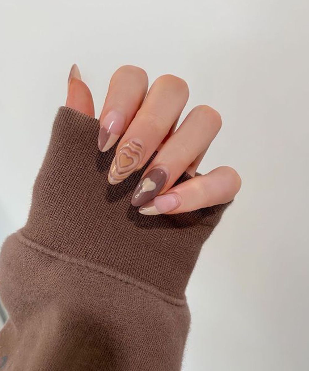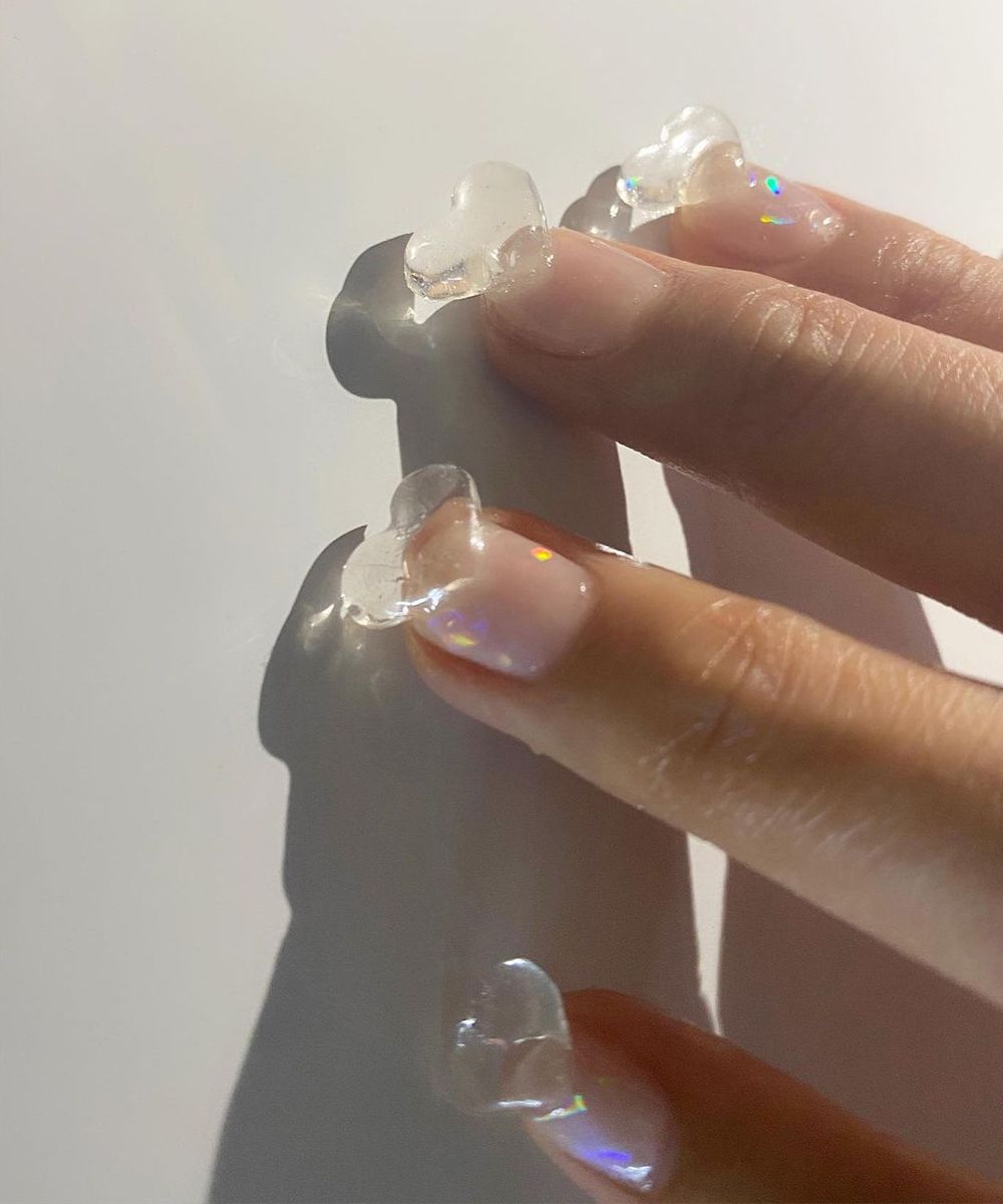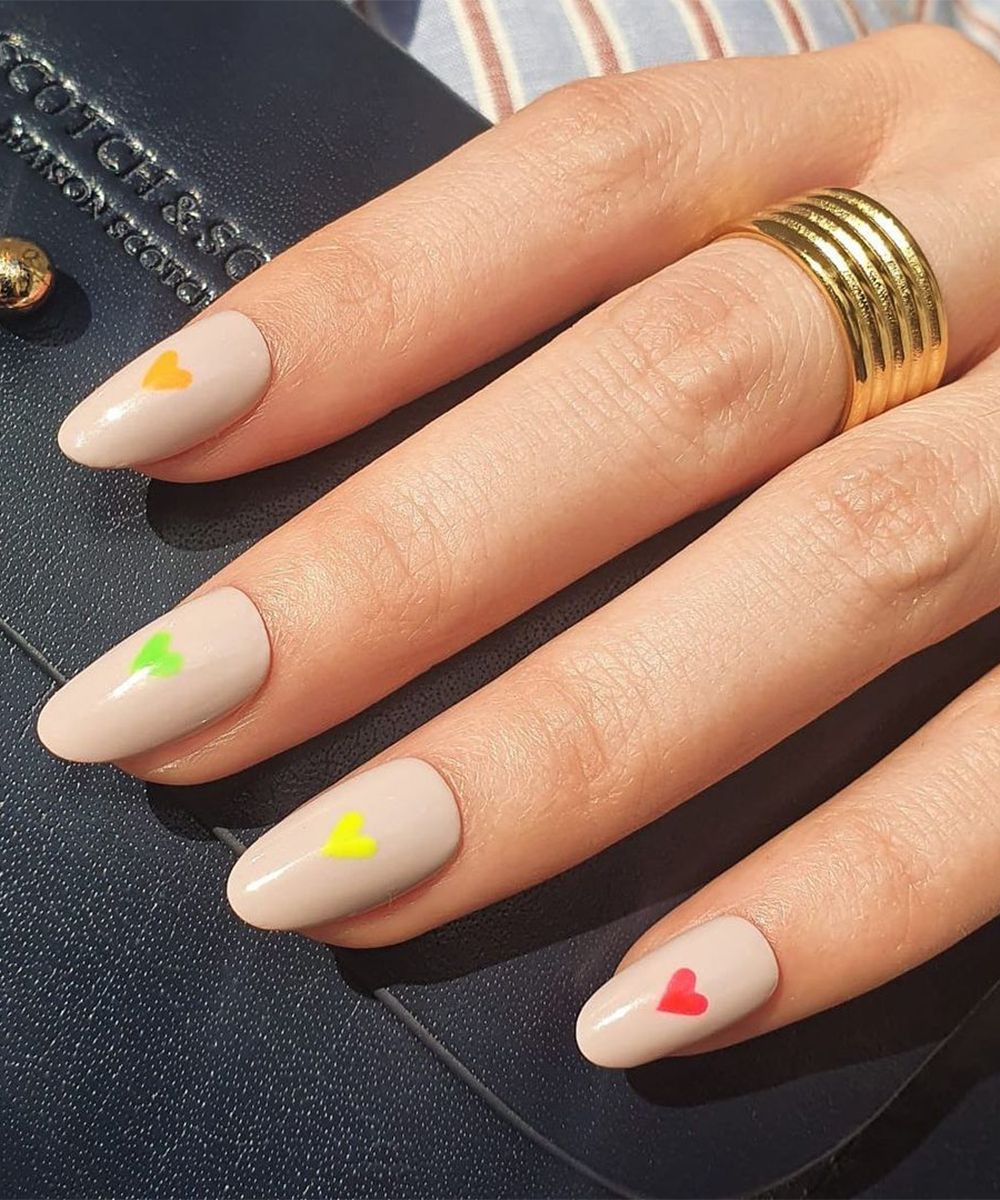For the most romantic and not only, sweet hearts applied or designed on the nails: this will be one of the Spring/Summer 2021 trends. For a delicate and discreet effect, better opt for a natural or light pink base with contrasting hearts; if, on the other hand, you want an idea that won't go unnoticed, you can choose 3D applications or bright colors.