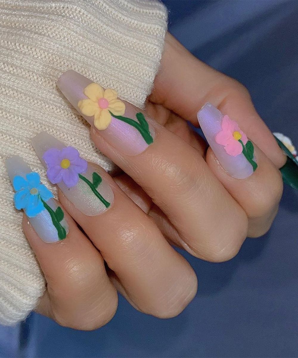 5 nail art trends for spring 2021 From degradé to blooming nail art, passing through a contemporary version of the classic French manicure
