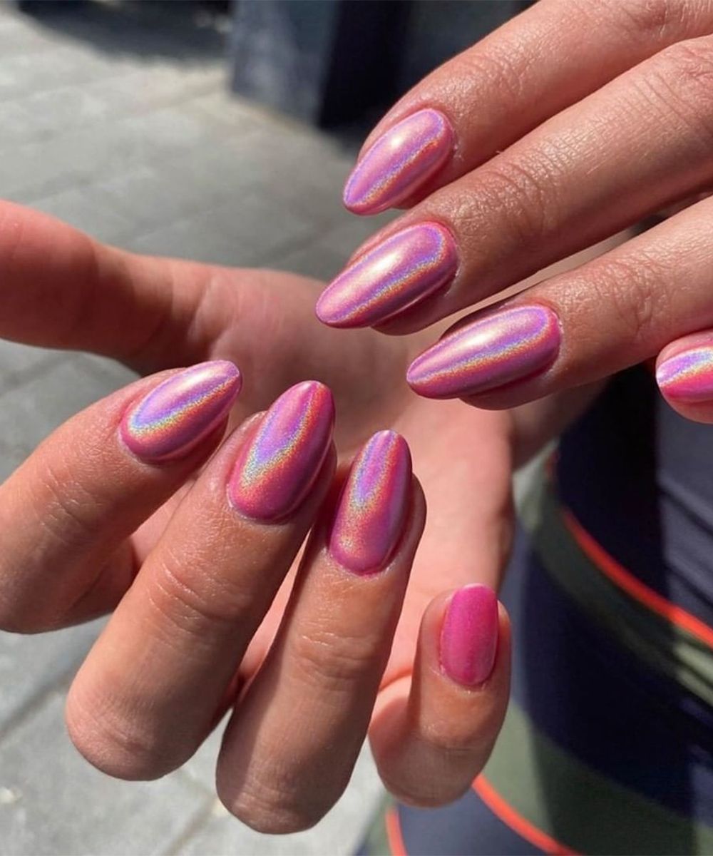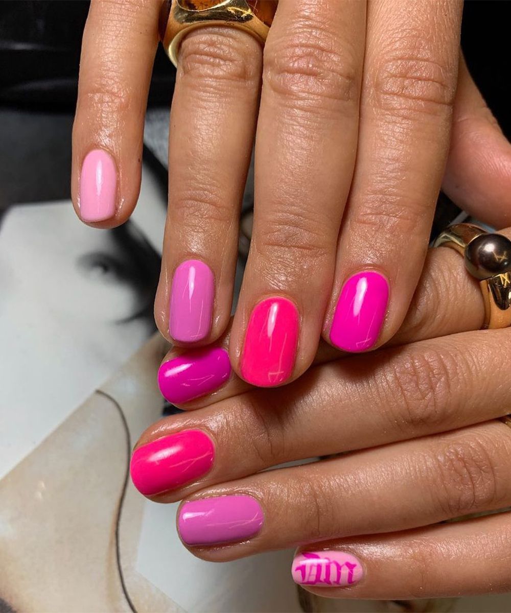 Gradient or degradé nails are undoubtedly a trend for next season because they give a sparkling and lively twist. But, remember, there are two dégradé techniques: the first involves a nuanced effect on each nail (like the one worn by Chiara Ferragni created by Isabella Franchi of @unghiedellamadonna) and is obtained by first applying the lighter base, then the darker shades to starting from the middle of the nail; the second is instead realized as a chromatic scale that starts from the thumb with a bright enamel shade, arriving at the little finger with the same color, but much softer.