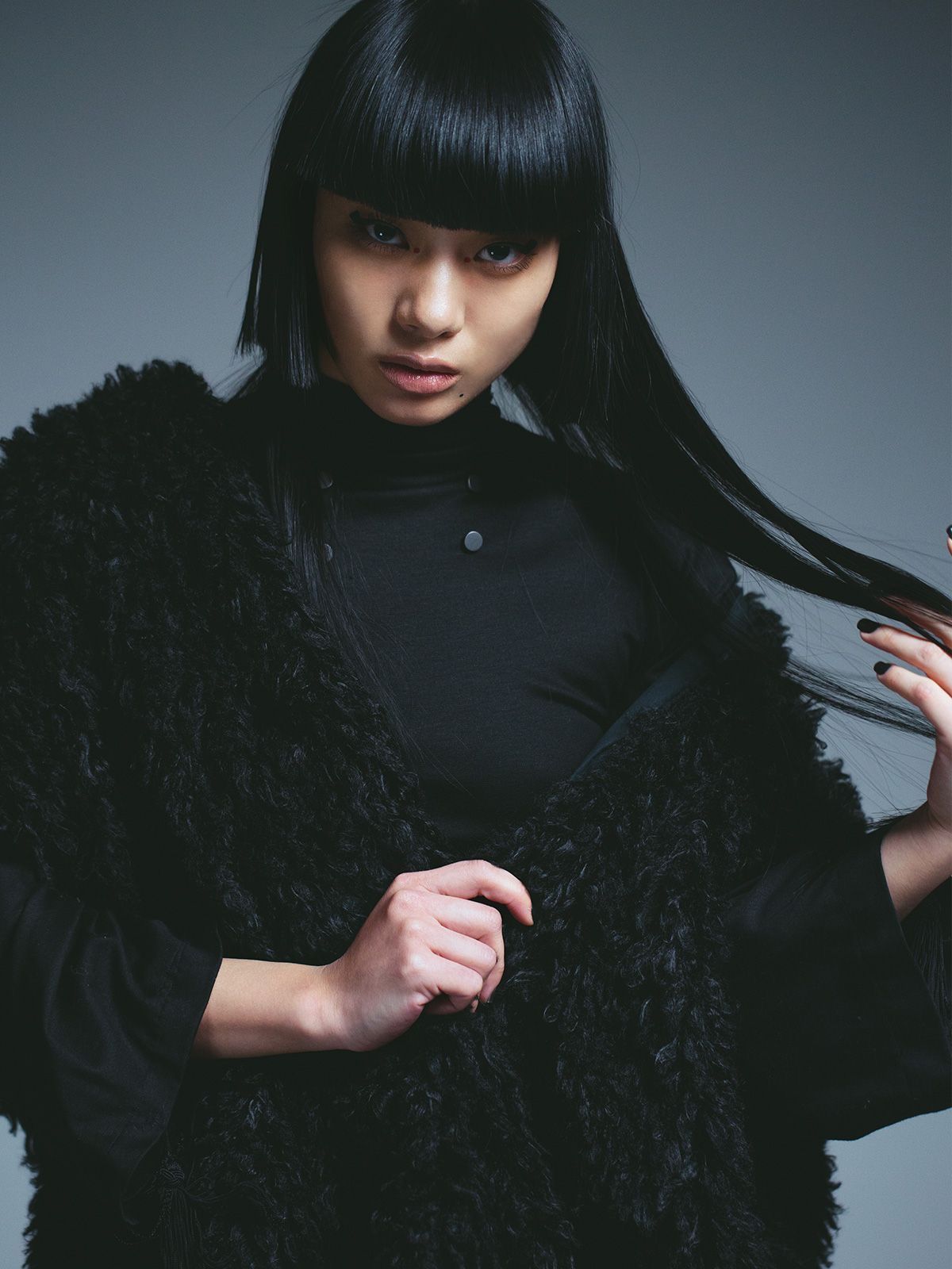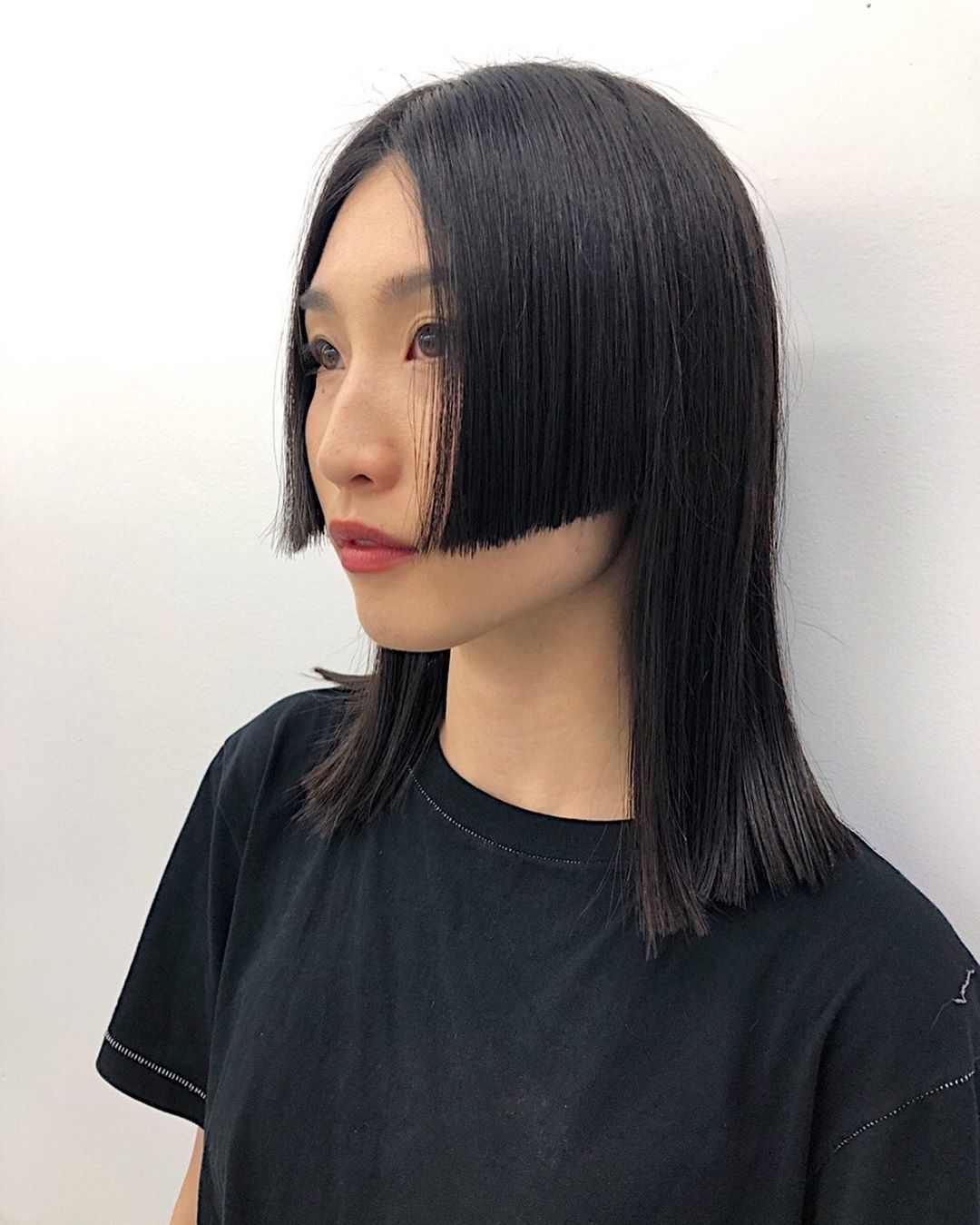 The strength of this Japanese-style cut lies in the architectural elegance of its contrasts characterized by practicality, strength and femininity, all enclosed in a captivating geometric rigor. The hairstyle is characterized by a bold layering consisting of two medium-short front strands - with or without the addition of a fringe - which stop at the cheeks, thus framing the face and defining the look.