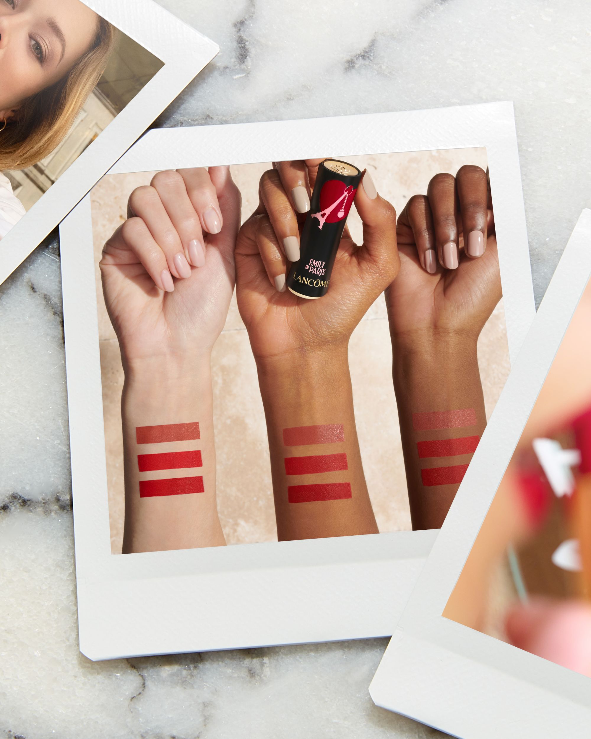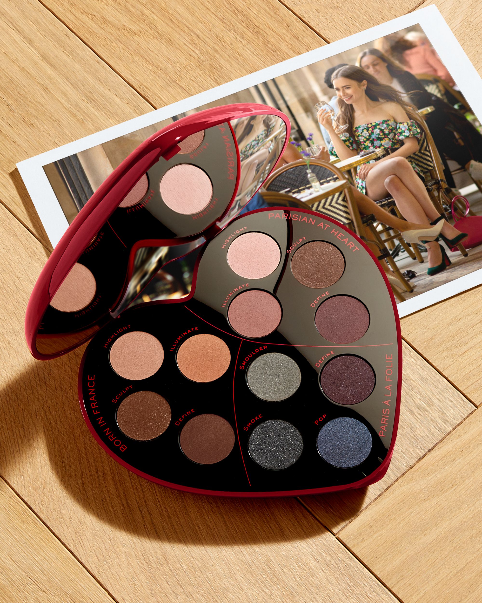 You will also love everything else: skincare and make-up products that capture the essence of the show and allow every woman to achieve a unique French girl beauty in their own way. The collection has a common thread: the joie de vivre that distinguishes Emily's personality and the mission of the Parisian brand to promote happiness come together thanks to the red and pink color codes and the need to become a Parisian even far from Paris. The skin will be fresh, kissed by dewy effect, whereas the lips are red fire, the eyes intense but not too much, more in a smudged "I woke up like this" mood. The star of the collection is the new heart-shaped eye palette with 12 shades all to mix, divided into three color families inspired by Camille - Born in France - Emily - Parisian at heart - and Mindy - Paris à la folie. Then there is Monsieur Big Mascara, hyper voluminous, Advanced Génifique Serum, which allows you to get a perfect Dewy skin, L'Absolu Rouge Lipstick, declined in three reds, and Idôle Eau De Parfum, the fragrance that infuses happiness and lightheartedness.