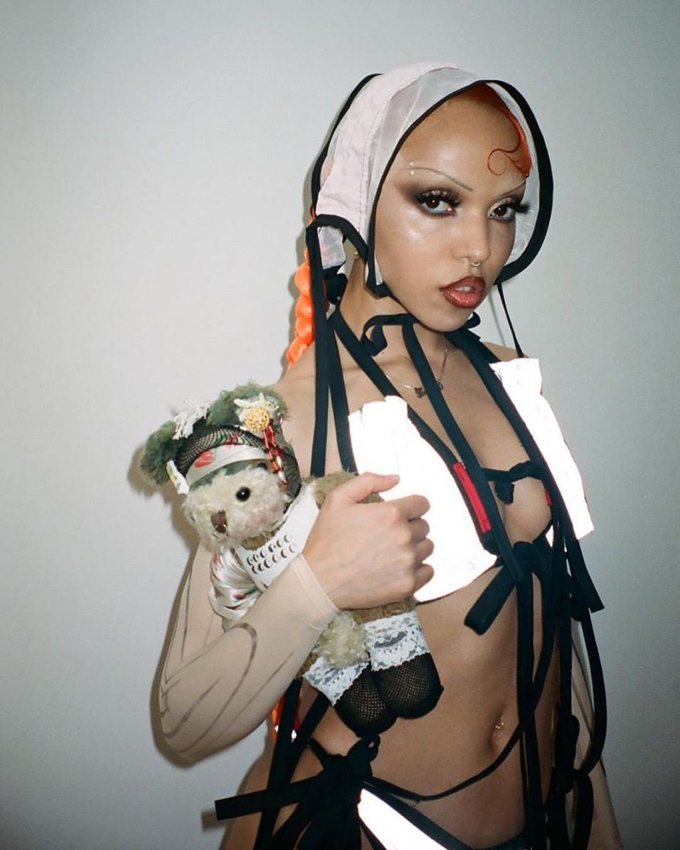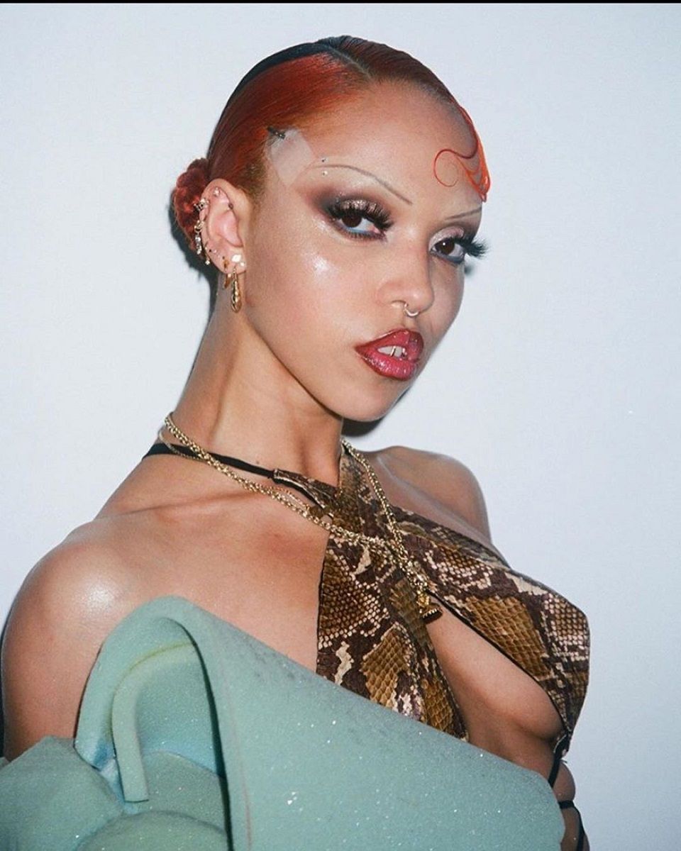 If in the Victorian era ladies preferred them natural and wild (a consequence of the fact that makeup was usually reserved for prostitutes and the working class), skinny brows became popular again thanks to flappers and silent film stars. Rejecting the status quo and the aesthetic standards of the conservative class, young women of the early post-war period shortened the hems of their skirts and sported short hair, dramatic makeup and sharp eyebrows as a symbol of empowerment and sexual liberation, and so did iconic divas such as Clara Bow (the first it-girl in history), Jean Harlow and Marlene Dietrich on the silver screen. The silent ladies spoke with their gaze and those minimal and slightly rounded lines with a needle-like shape were "limned butterflies’ antennae on her forehead" (Cecil Beaton's quote about Dietrich) emphasizing their lines. As the decade passed and the war ended, eyebrows took on more prominent and natural forms, leaving the starring role to lips and red lipstick. In the following three decades thin eyebrows became the object of experimentation by artists such as Jane Forth or Leigh Bowery and characteristic of counter-culture movements such as New Romantics, goths, club kids and cholas who with their dark and defined arches claimed "their feminine power in the face of a hostile society".
