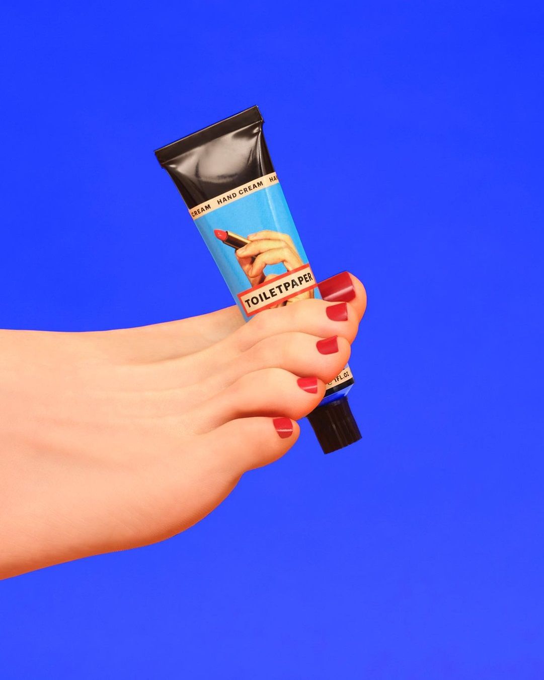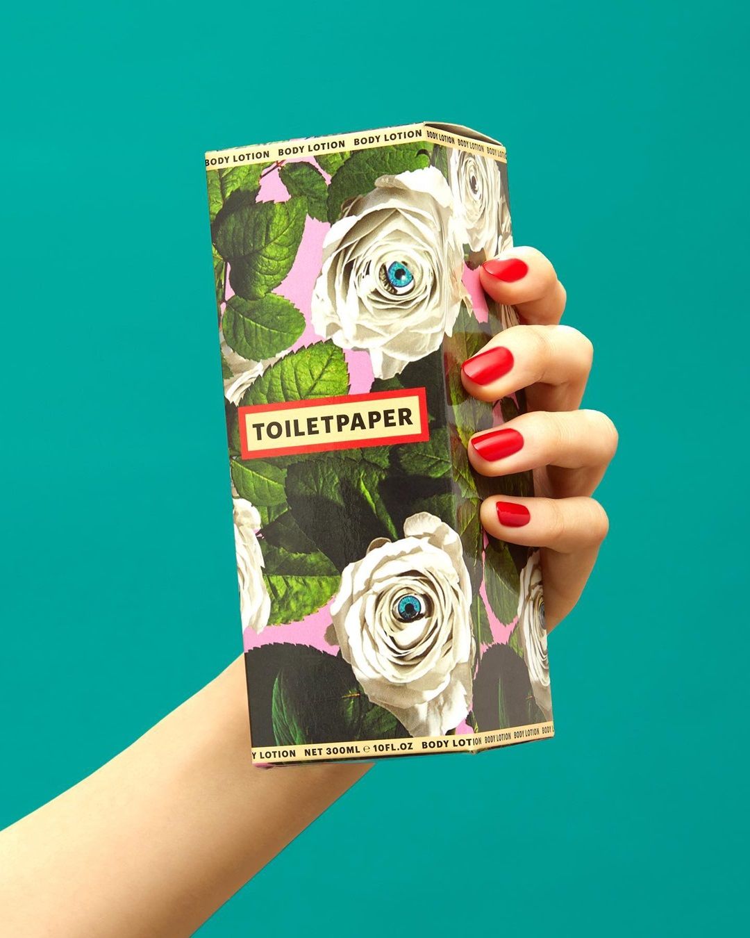 Not only Marina Abramović. Many artists have approached the beauty industry in some way. In 2021, Maurizio Cattelan and photographer Pierpaolo Ferrari launched ToiletPaper Beauty, an invitation to take care of oneself with fun and irony, including product lines for personal care, home, and leisure, from shower gel to scented candles, from hand cream to dish soap. All enclosed in packaging decorated with surreal images characteristic of ToiletPaper Magazine.
