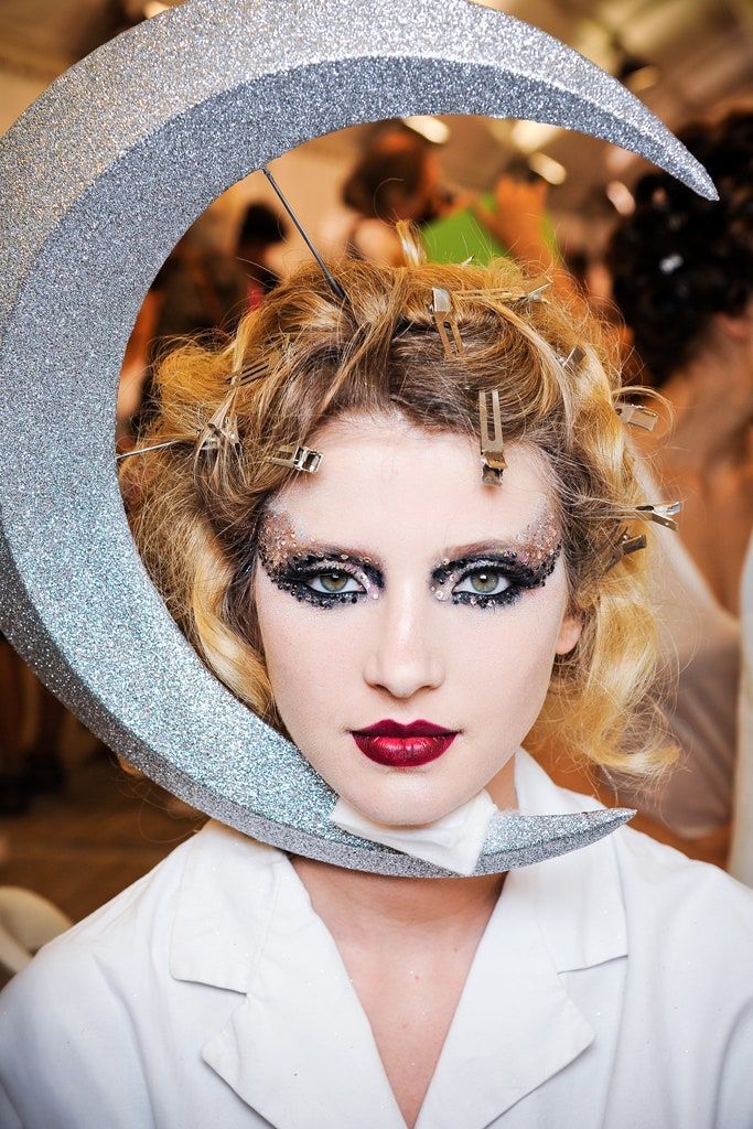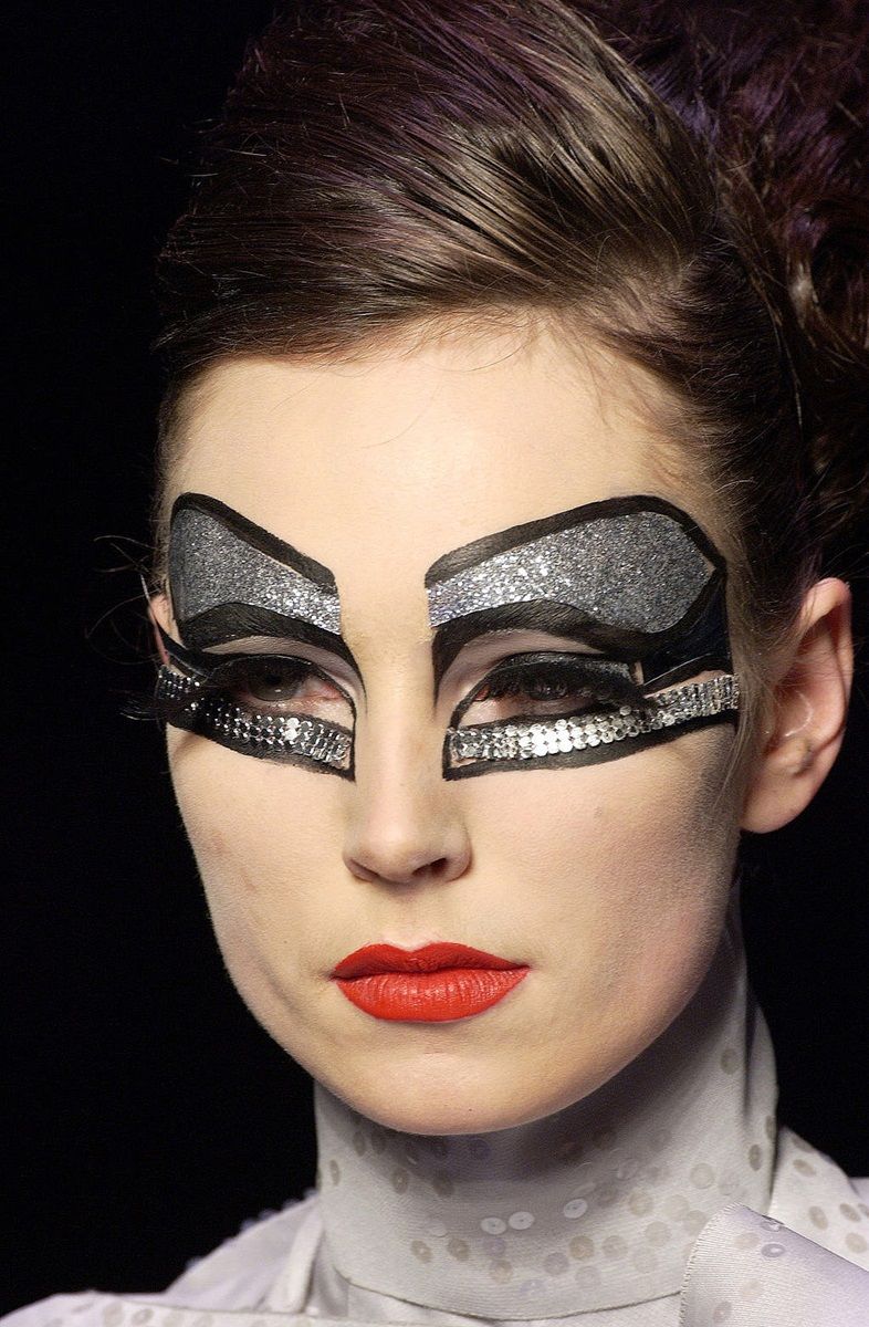 It's no coincidence that Pat McGrath's nickname is "Mother", and Vogue America defines her as the "most influential makeup artist in the world". Her works are always exceptional. One that continues to live on thanks to Pinterest and social media? The makeup created for the Christian Dior Fall 2011 Couture show, the first in the post-John Galliano era led by Bill Gaytten and Susanna Venegas. It draws inspiration from the world of clowns, Pierrot, and the vintage circus, but also from the shapes and colors of Memphis Milano, the Italian design and architecture collective founded by Ettore Sottsass. The result? Eyes adorned with iridescent powders applied from the eyelid to the temples, sequins and glitter in gold, silver, and black tones, paired with burgundy lips, alternating with pastel-colored graphics and red lips.