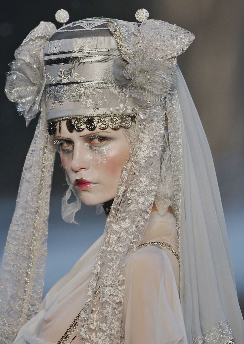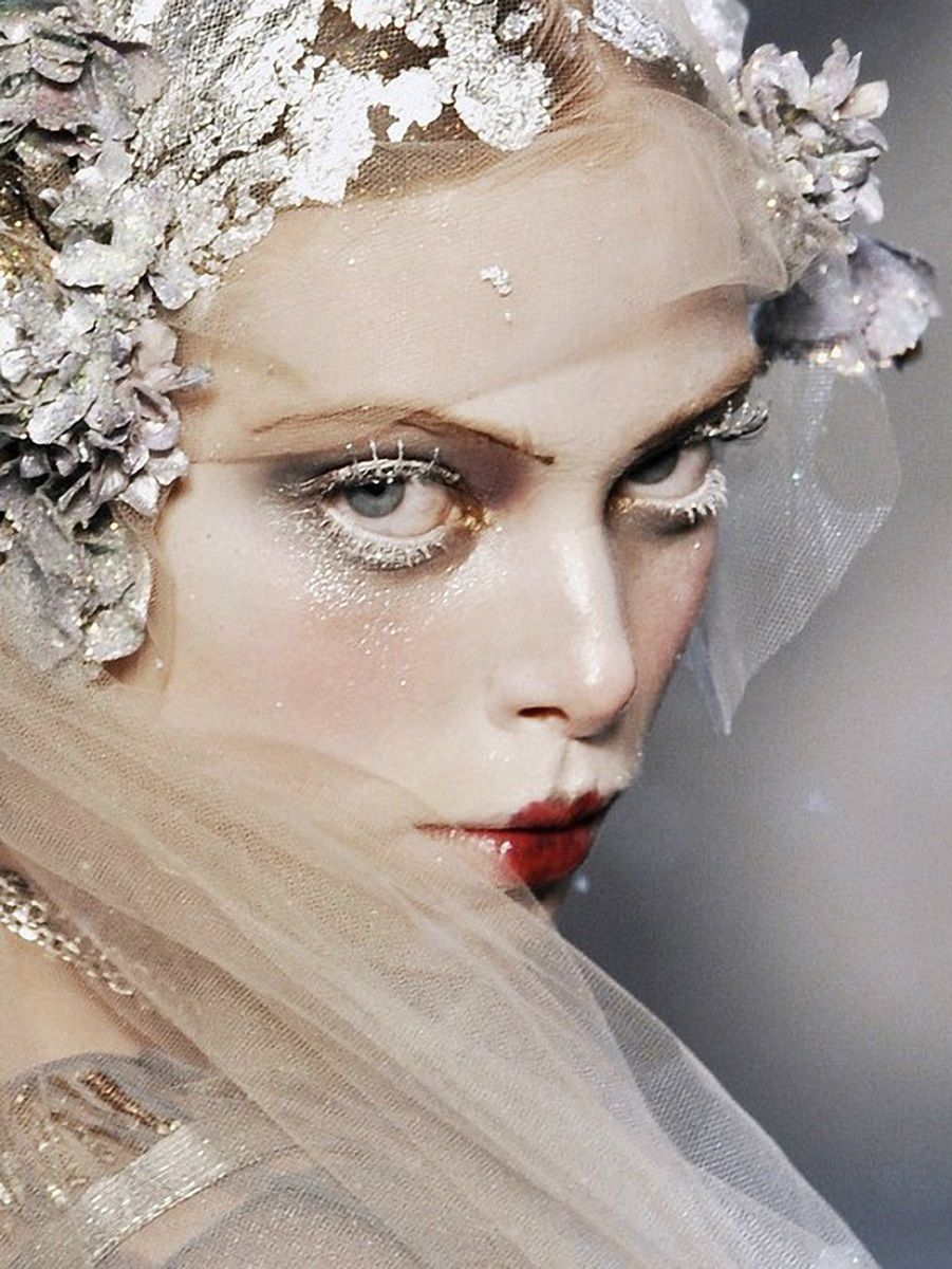 There's something absolutely grand in the partnership between Pat McGrath and John Galliano. Together, they have created true masterpieces, as evidenced by the success of the Maison Margiela Artisanal SS 2024 collection, whose makeup seems a natural evolution of their past collaborations. Among the references and past beauty looks that continue to inspire and overshadow the popularity of the associated garments is undoubtedly the one from John Galliano's FW 2009. For the occasion, McGrath brought "Ukrainian Ice Princesses" to the runway with translucent and silvery skin, gold, gray, and silver eyeshadow surrounding the eyes with a slightly smudged finish, thin eyebrows, red lips with the lipstick concentrated only in the central part to recreate a sort of heart, and rosy cheeks. A beautiful makeup still loved on TikTok.