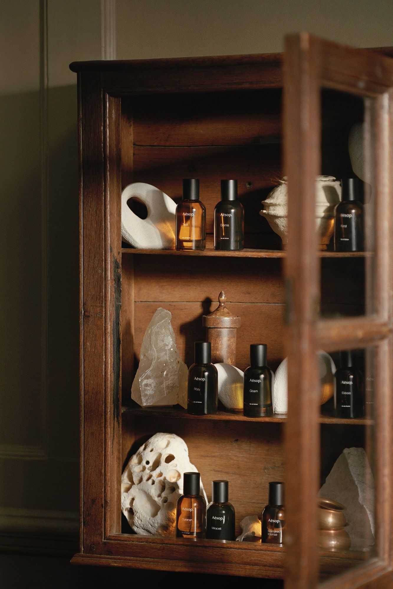 To try and find the right fragrance for each of us, simply enter an Aesop store, where the brand’s team is available to assist us among the many bottles arranged neatly on the orderly shelves. Another option, decidedly more immersive and experiential, is offered by Fragrance Armoire, a lacquered cabinet present in select Aesop stores worldwide. Inside, this special piece of furniture houses an infusion chamber, a glass case where customers can hang their garments and close the doors for a few minutes. During this short time, the chosen fragrance is sprayed into the air, deeply and evenly infusing the fabric. It’s a way to give customers an olfactory trace of the sensory experience they’ve had in-store, as well as to truly determine if the perfume they’re about to purchase is the right one.