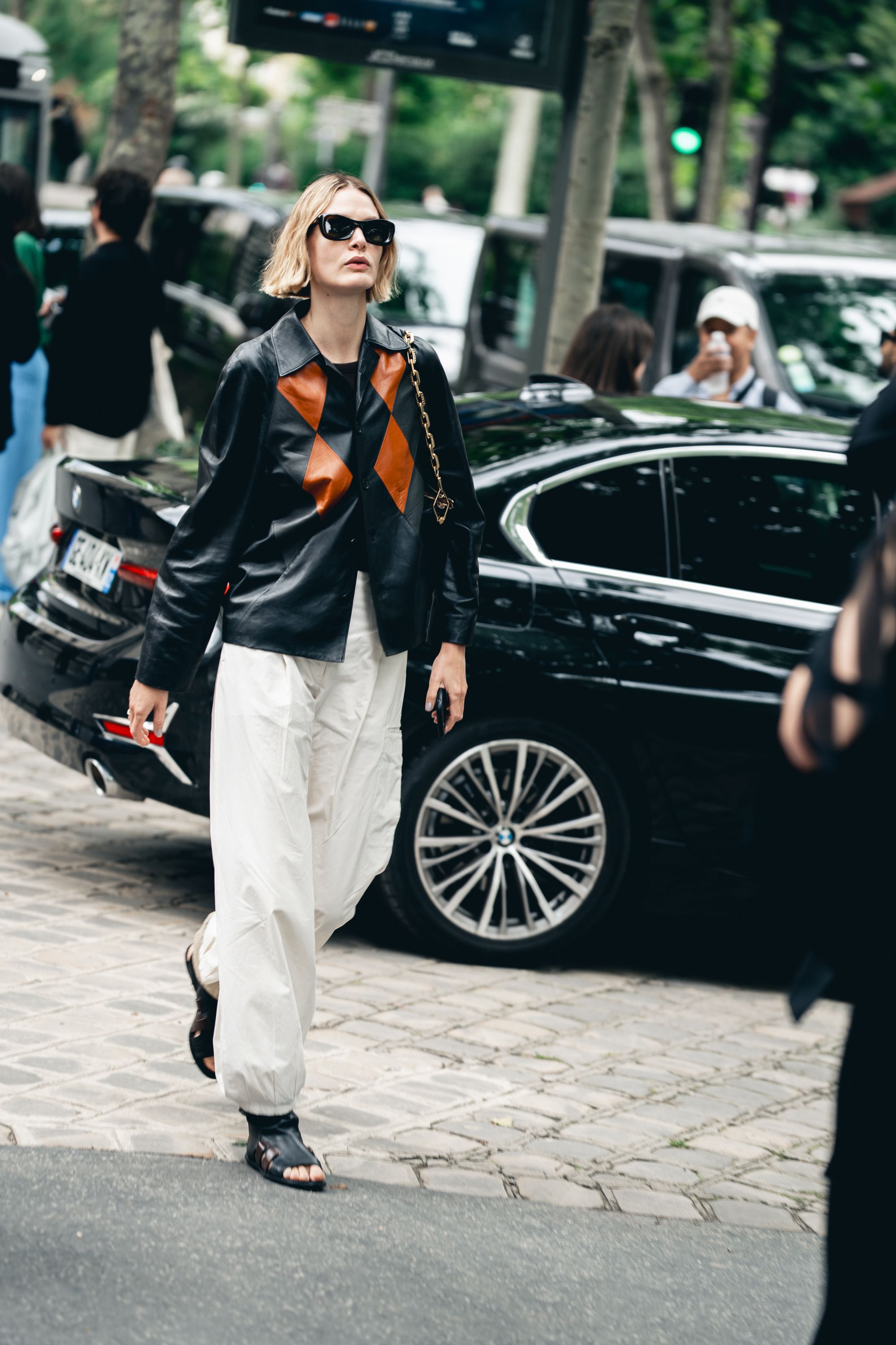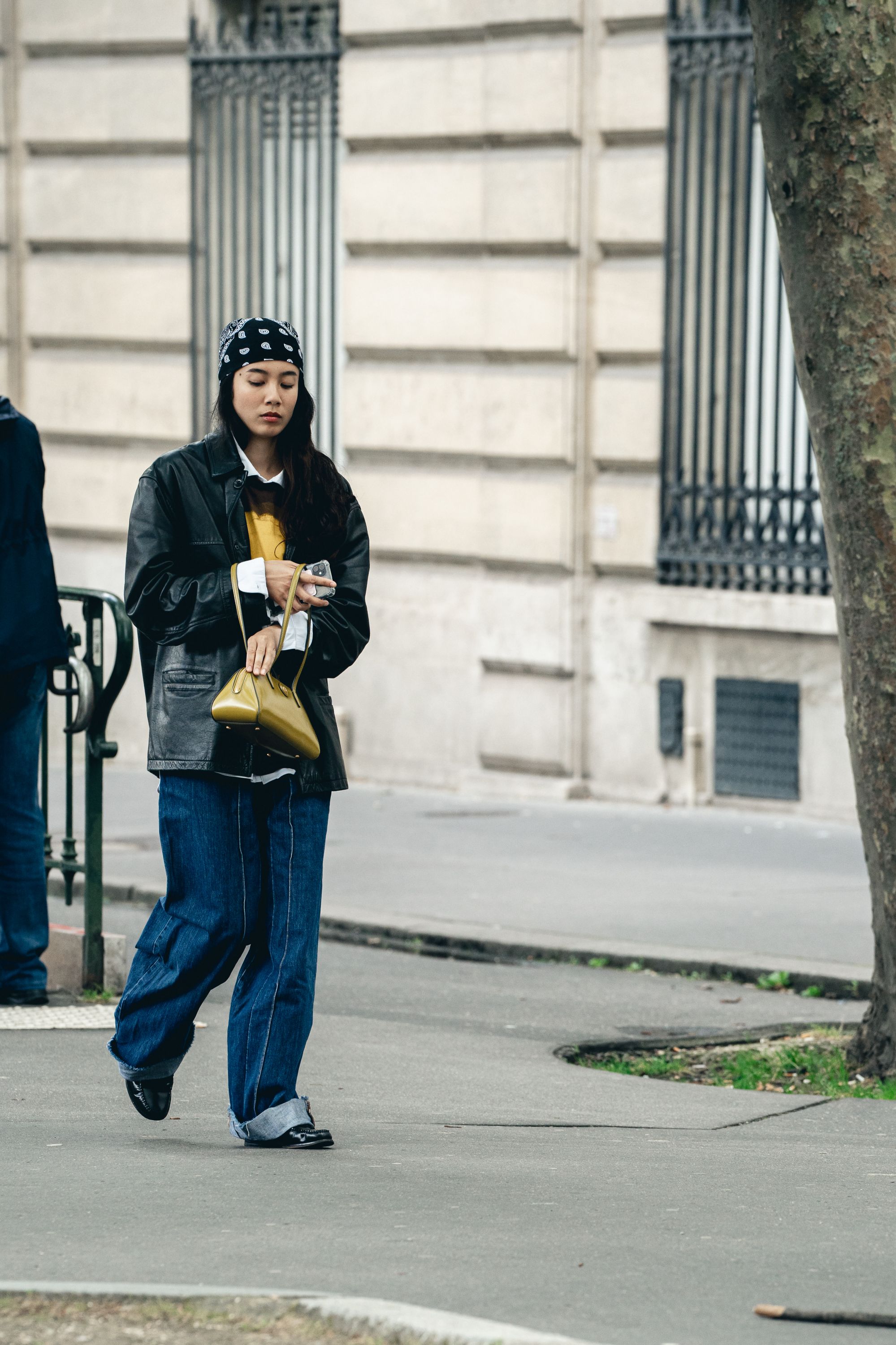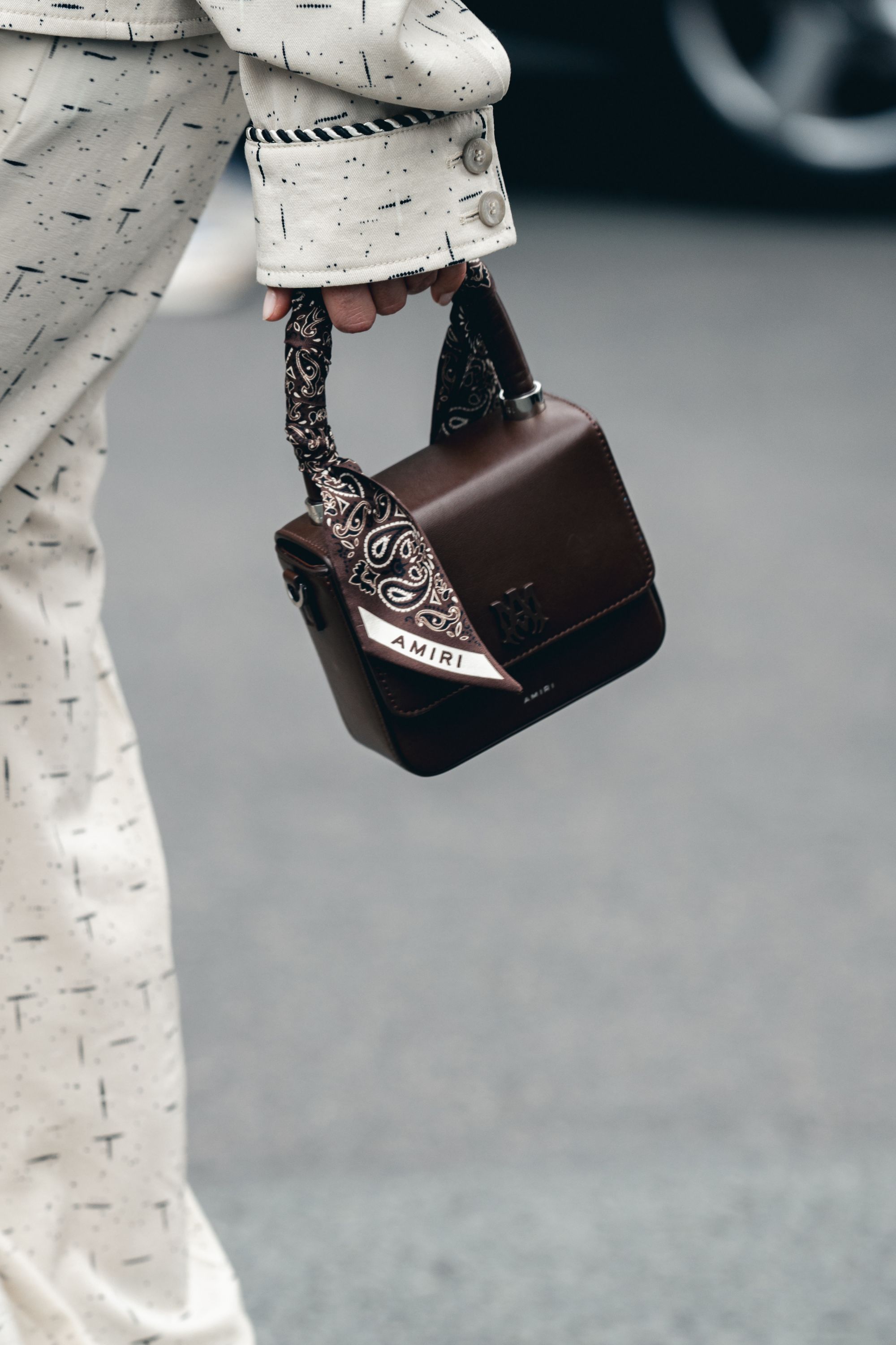 Beyond the already mentioned sunglasses, which dominate in every style, we notice small but significant bags, whether for their color, shape, model, or brand. These are the true statement pieces of Paris Fashion Week, and they are used for various purposes. To add color, to contrast the seriousness of an outfit, to lighten the mood, to add texture. They are almost always small. In addition to bags and sunglasses, bandanas and significant necklaces also make an appearance, adding a touch of flair that enhances personality.