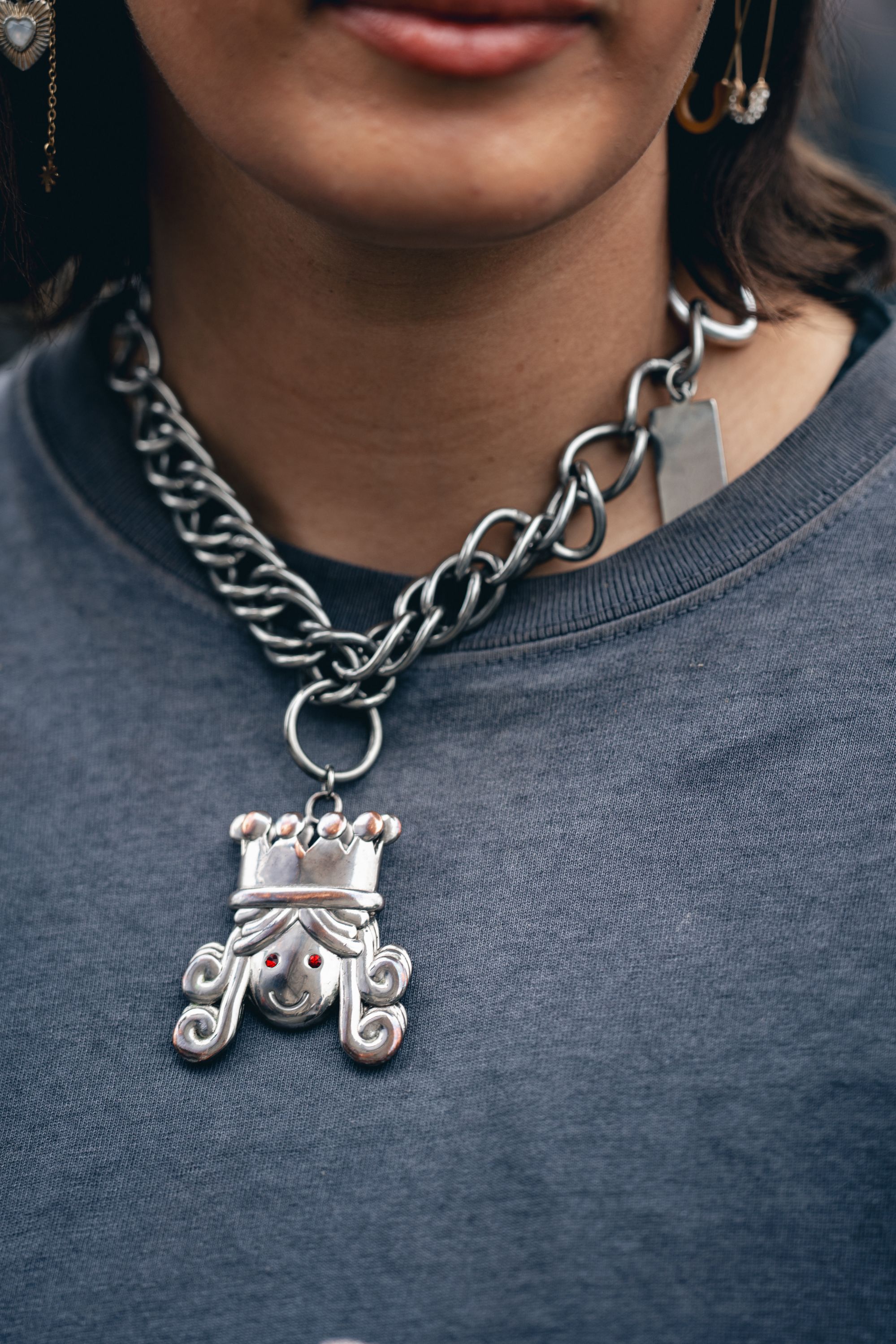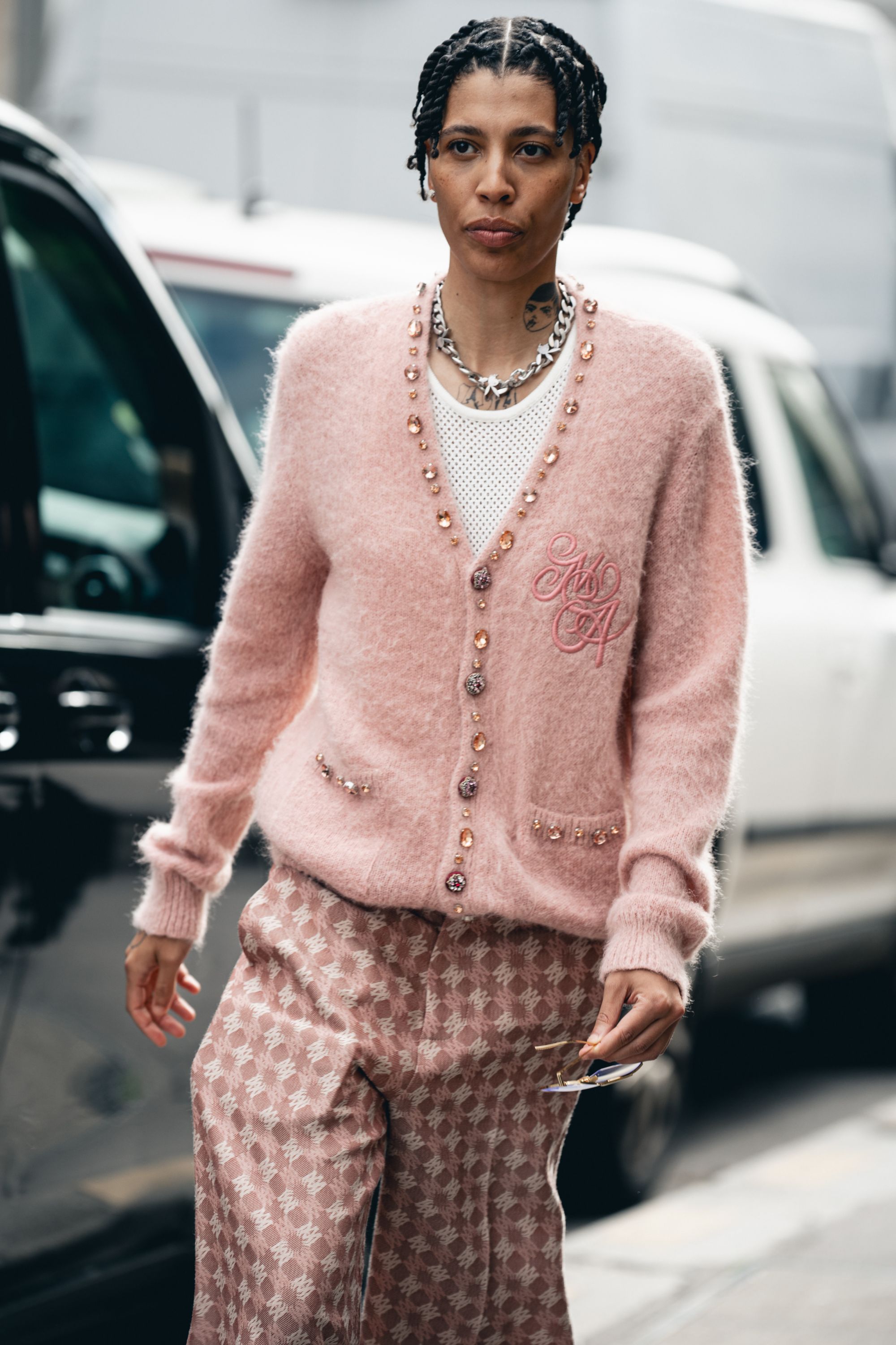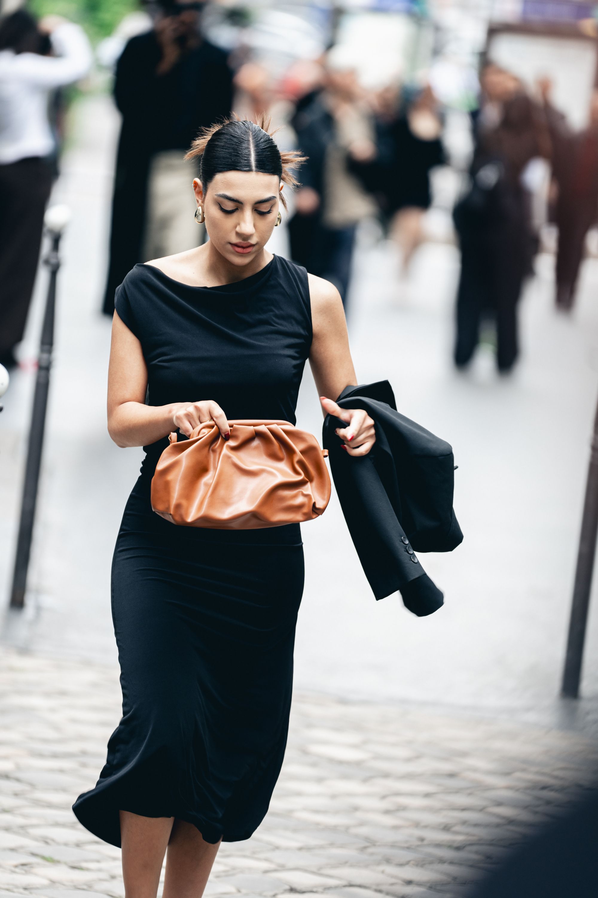 Beyond the already mentioned sunglasses, which dominate in every style, we notice small but significant bags, whether for their color, shape, model, or brand. These are the true statement pieces of Paris Fashion Week, and they are used for various purposes. To add color, to contrast the seriousness of an outfit, to lighten the mood, to add texture. They are almost always small. In addition to bags and sunglasses, bandanas and significant necklaces also make an appearance, adding a touch of flair that enhances personality.