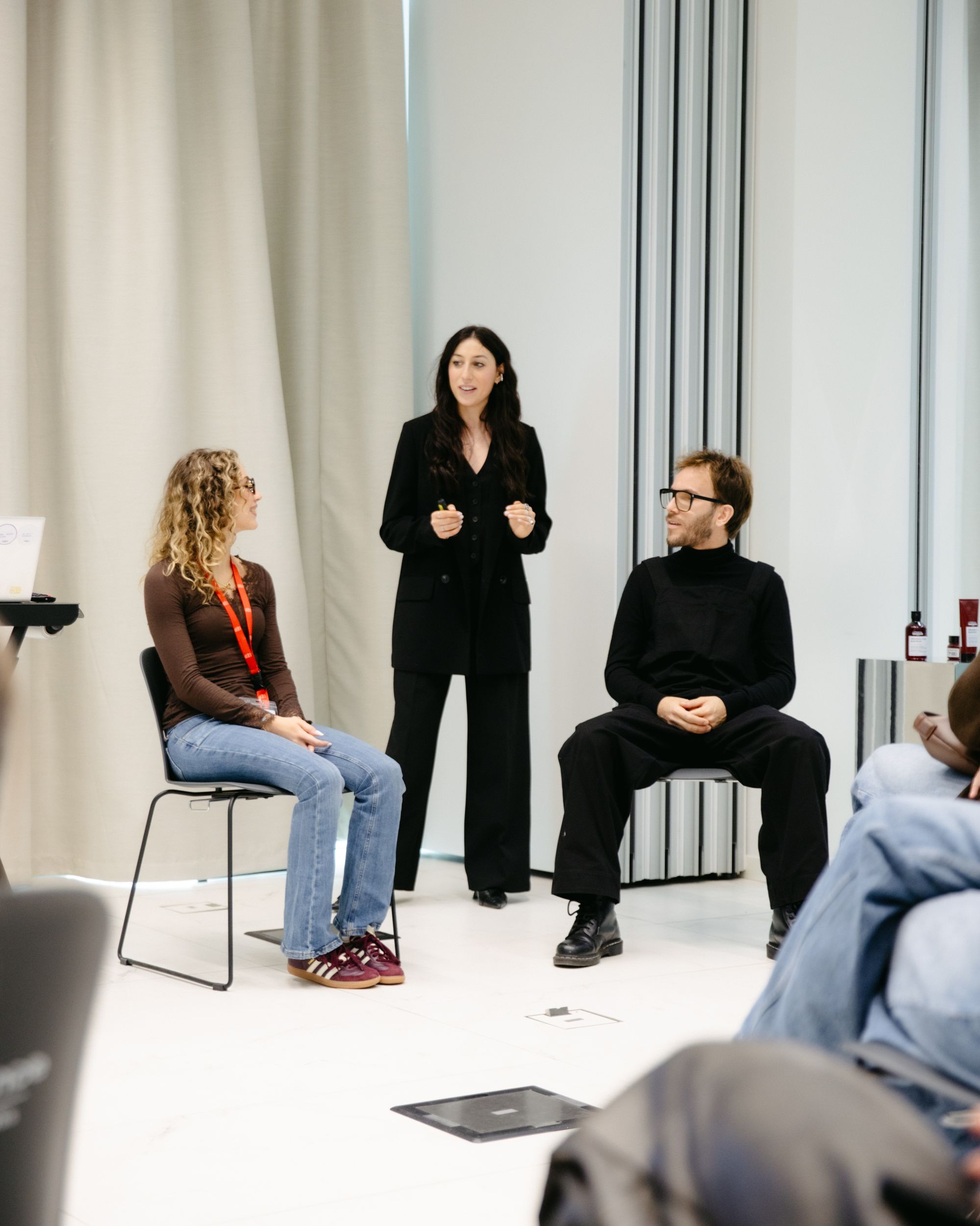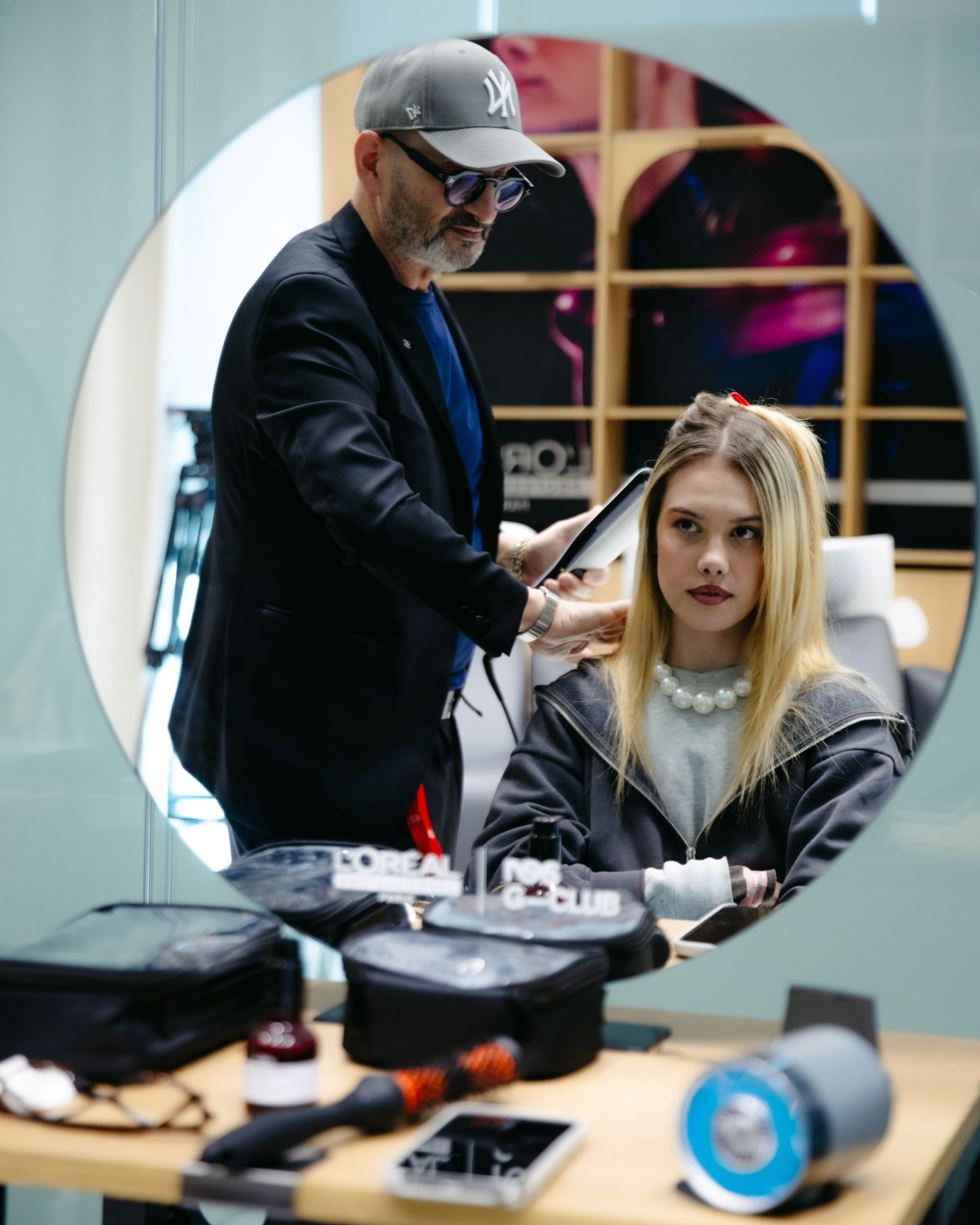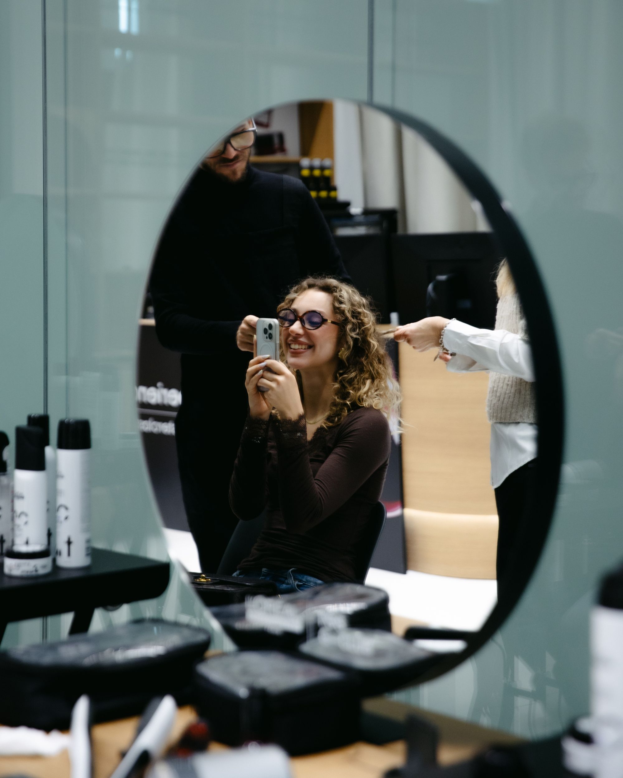 To introduce this new line to its community and make use of its new headquarters, L'Oréal Professionnel organized a masterclass at its Academy, usually dedicated to training. Here, creators had the opportunity not only to discover and experience the range firsthand but also to unleash their creativity by personalizing a mirror with phrases and words related to hair care, self-esteem, and their own vibrant, colorful personalities. Special guests included content creator Carlotta Fiasella alongside her dynamic hairstylist duo, Sergio Castiglia and Graziella Cassanelli. Together, they introduced the features of the Vitamino Color Spectrum range, explaining its benefits for hair and how it can be used by both consumers and professional hairstylists.