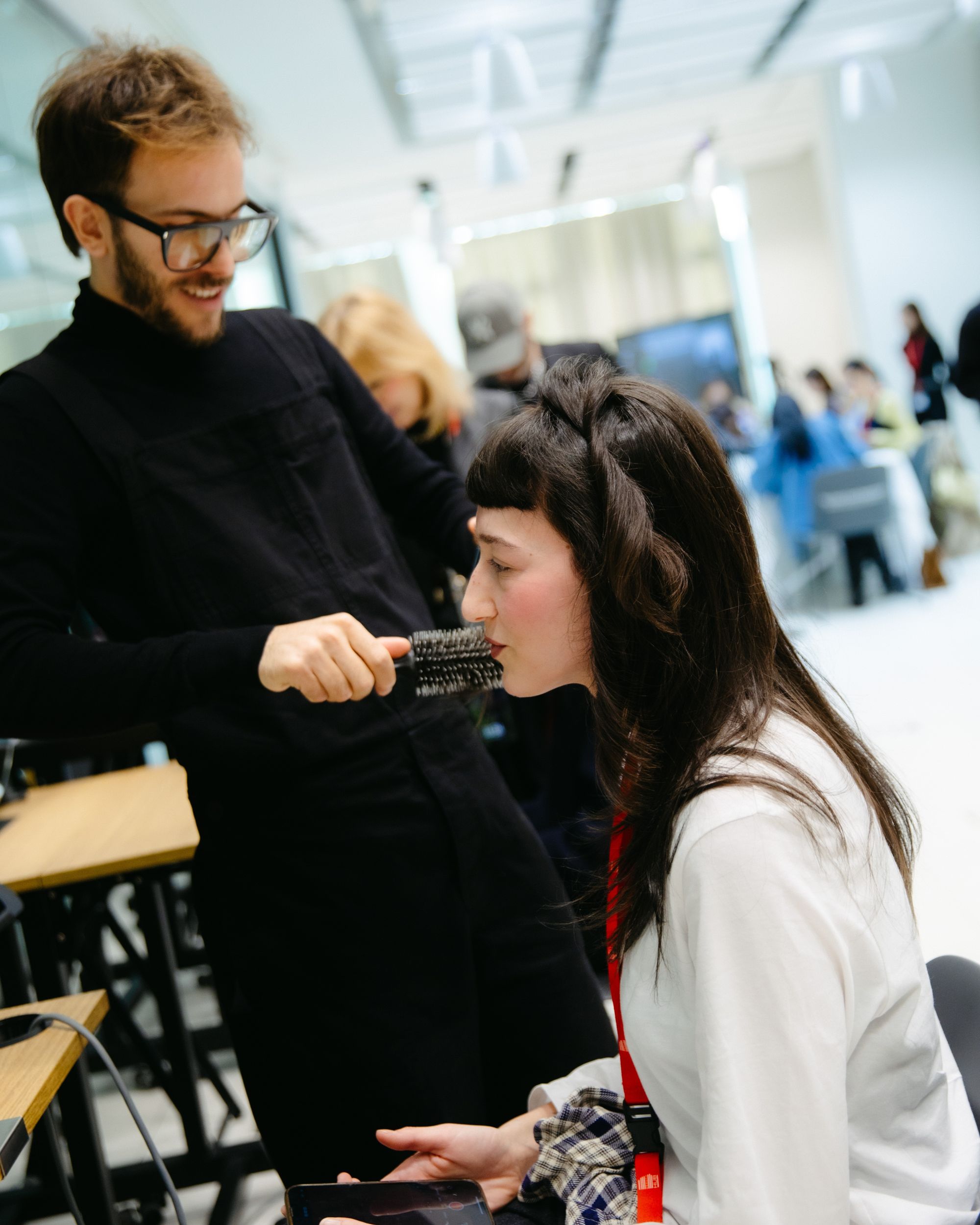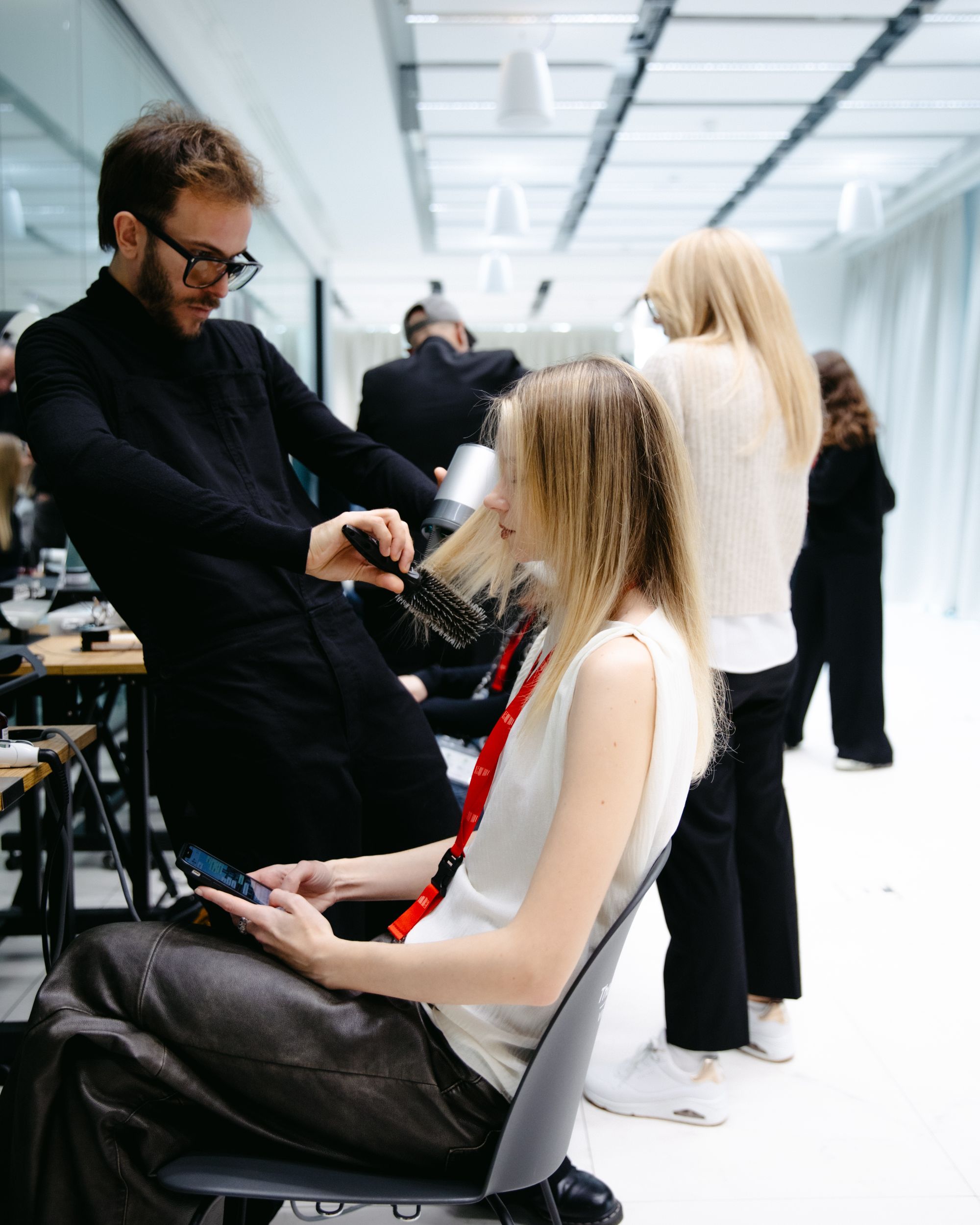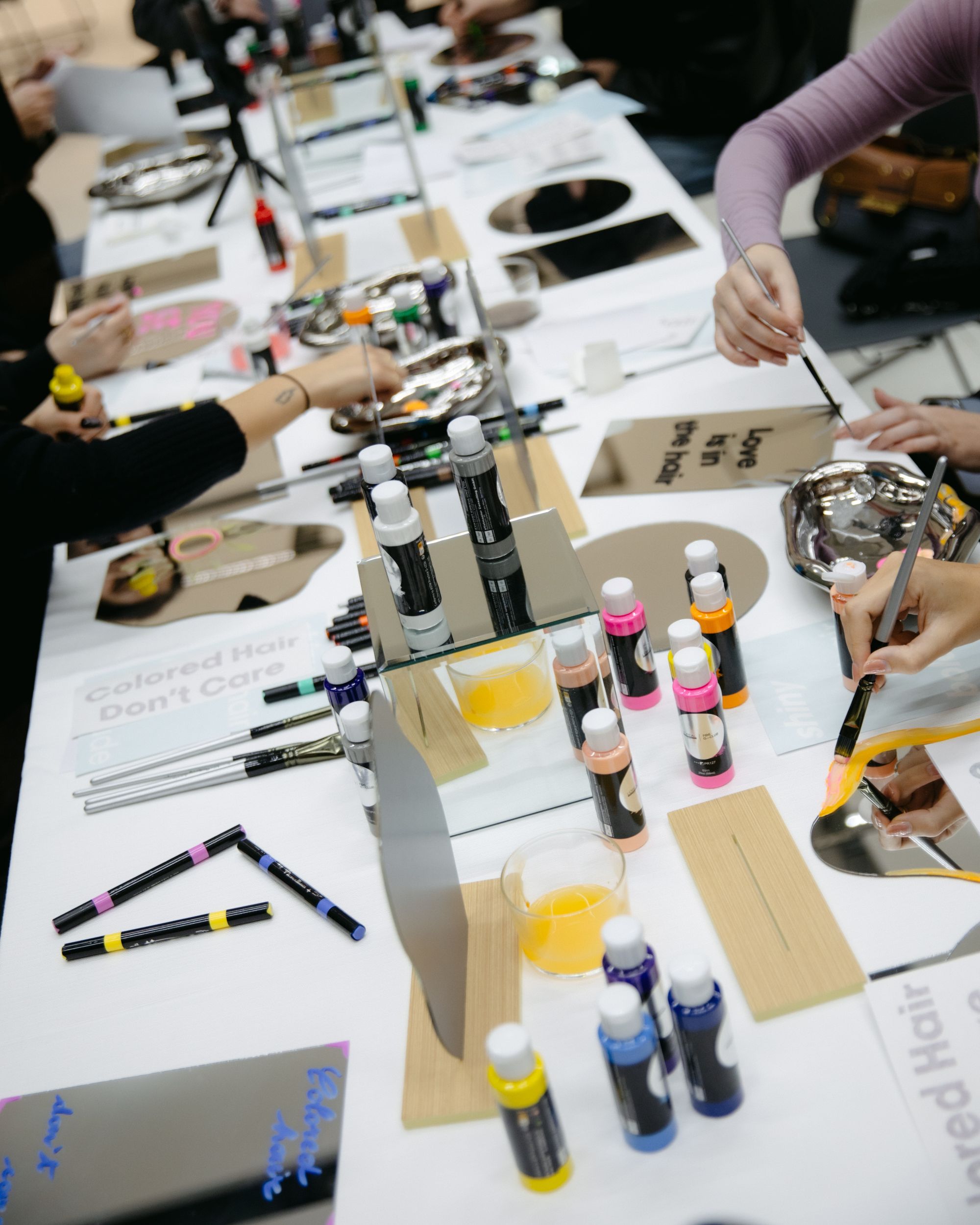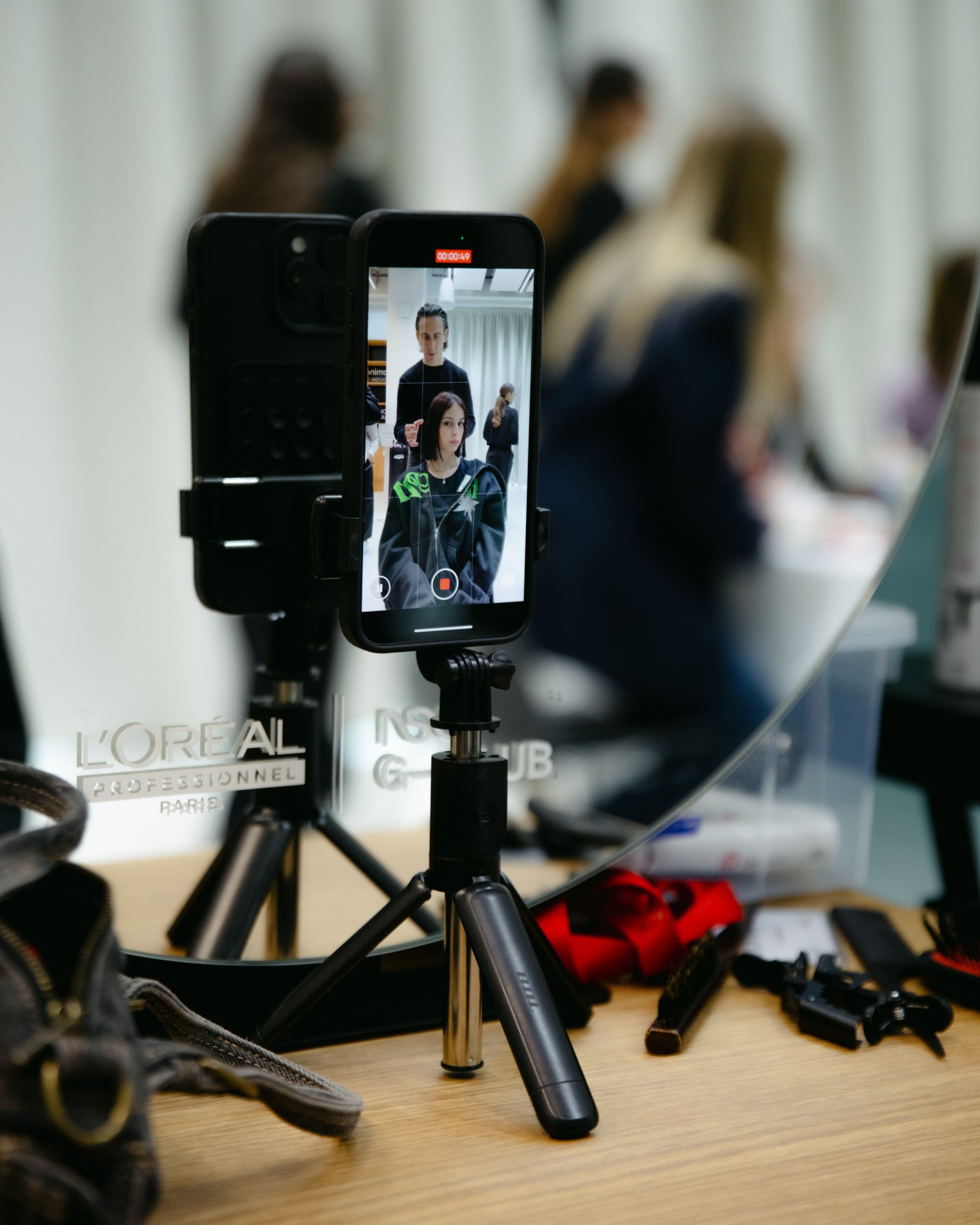To introduce this new line to its community and make use of its new headquarters, L'Oréal Professionnel organized a masterclass at its Academy, usually dedicated to training. Here, creators had the opportunity not only to discover and experience the range firsthand but also to unleash their creativity by personalizing a mirror with phrases and words related to hair care, self-esteem, and their own vibrant, colorful personalities. Special guests included content creator Carlotta Fiasella alongside her dynamic hairstylist duo, Sergio Castiglia and Graziella Cassanelli. Together, they introduced the features of the Vitamino Color Spectrum range, explaining its benefits for hair and how it can be used by both consumers and professional hairstylists.