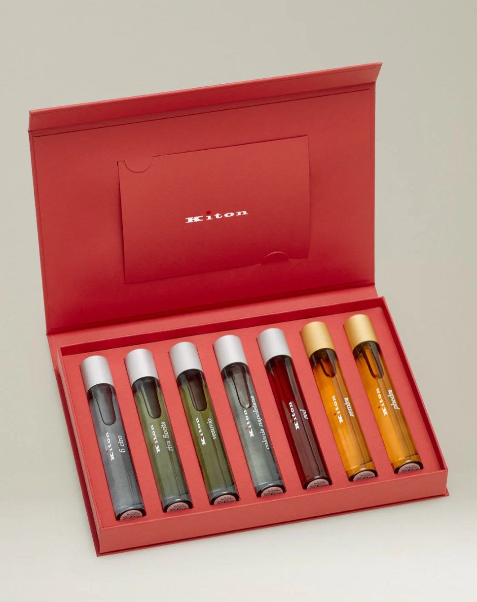 The Scent Experience by Kiton is not your typical perfume set. It’s a true sensory journey. Inside, you’ll find seven 15 ml creations that explore nature, culture, and spirituality, each with a distinct and well-defined personality. Perfect if you want to be someone different every day: basically, a miniature olfactory wardrobe.