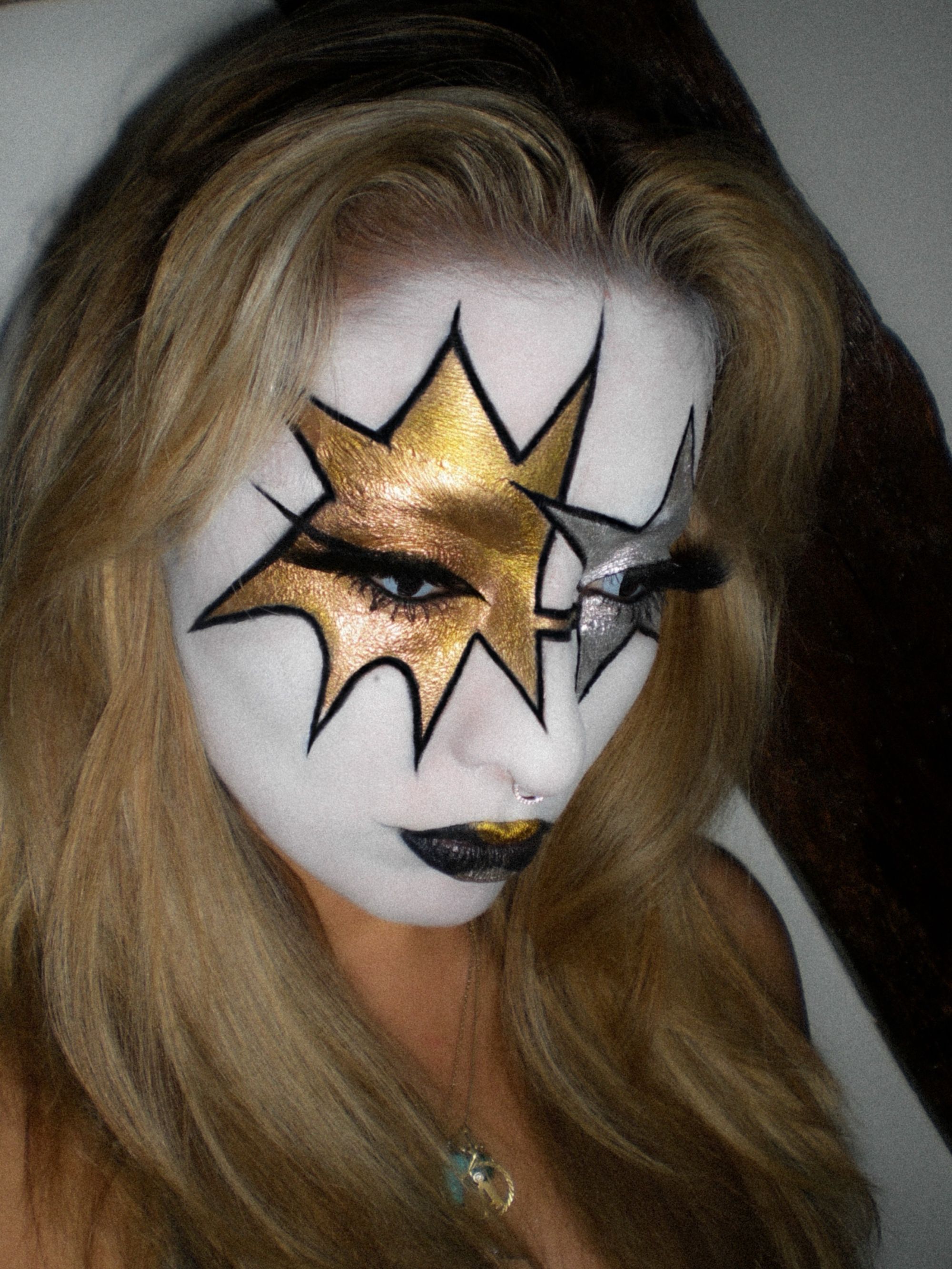 Beyond the lifelong icons who continue to inspire and amaze me, I also closely follow some artists from the new scene, whom I consider extremely talented and gifted with incredible artistic sensitivity. Ivan Nunez (@shablamgela), current make-up artist for Doja Cat’s tour: every one of his looks leaves me speechless. He’s extraordinary in his use of color, shapes and especially in interpreting Doja’s world, I’m a huge fan. His work is powerful, coherent and always surprising. Alona Sobolevska (@iksoxo) is, to me, a true creative genius in the field of special effects. I go crazy for every post: bizarre, unexpected, never predictable. I’m deeply fascinated by how she finds creative ideas in the most unusual things. She’s truly unconventional and incredibly interesting. Last but absolutely not least, Dina (@topblrrfc). The way she transfers art onto her own face moves me every time. I believe her ability to perceive beauty in art and transform it into makeup is a rare and incredible gift.