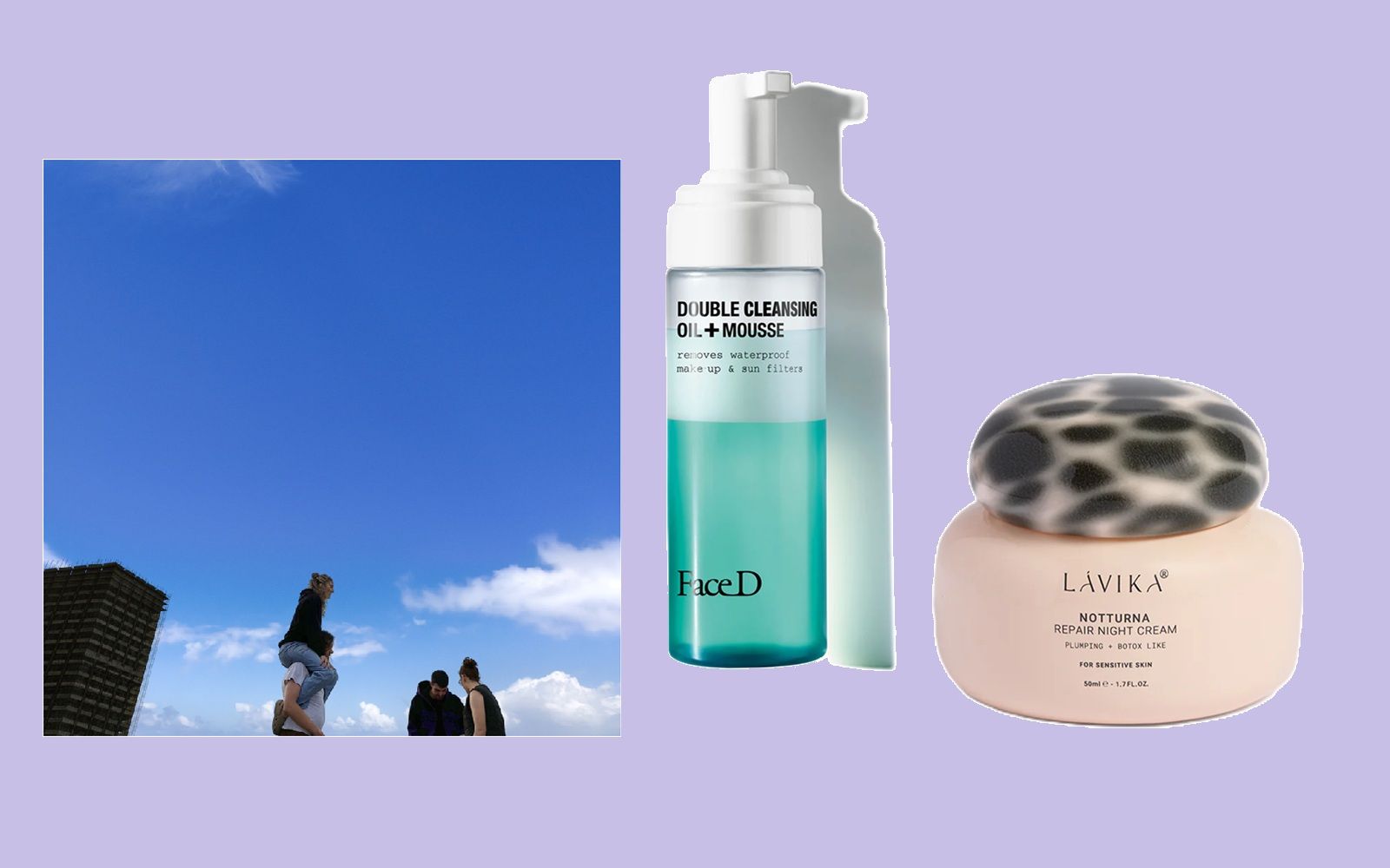 - Face D Double Cleansing Oil + Cleansing Mousse: a two-phase facial cleanse that combines make-up removing oil and cleansing mousse in one gesture, without greasiness. Melts away make-up, even waterproof — and removes sunscreen up to SPF50+.