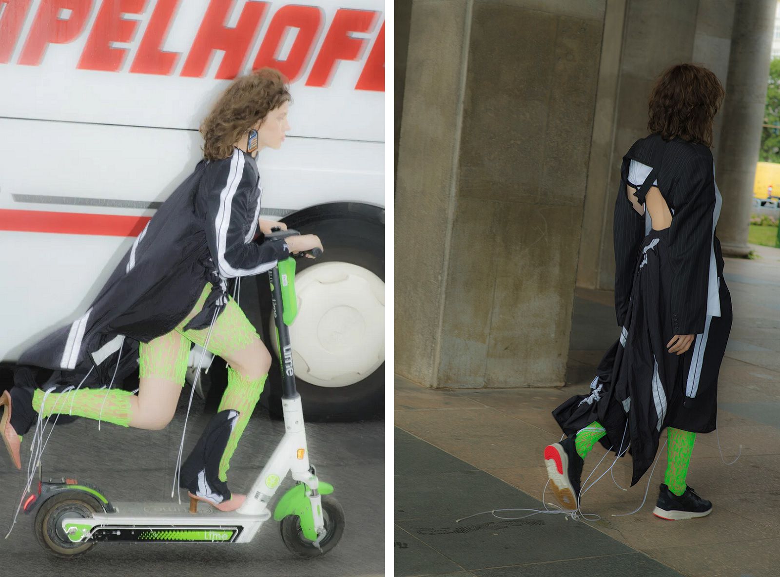 Her interior design studies in Stuttgart and Japan and a Master's degree in Fashion Design from the Universität der Künste in Berlin gave her the confidence to experiment with production techniques that allow her to overcome the boundaries of design and shape the future style as she imagines it. Guided by the motto The future is now, Kasia took inspiration from classic tailoring elements and the archives of the Italian brand and reworked them with a modern and hyper-technological approach to obtain three modular and multifunctional outfits with versatile styling.