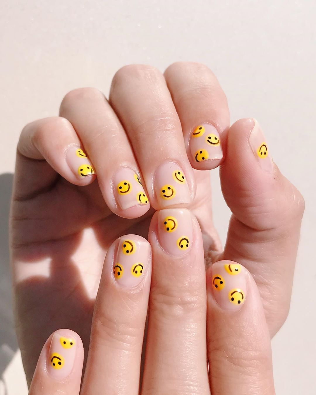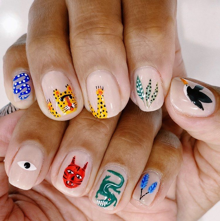An alternative option to the basic standard manicure is the one with the final addition of nail art: a nude nail polish embellished with small freehand drawings, tiny stickers with creative designs, gems and decorations. There are endless options, and if you can't choose, we suggest you go for a different design on each nail!
