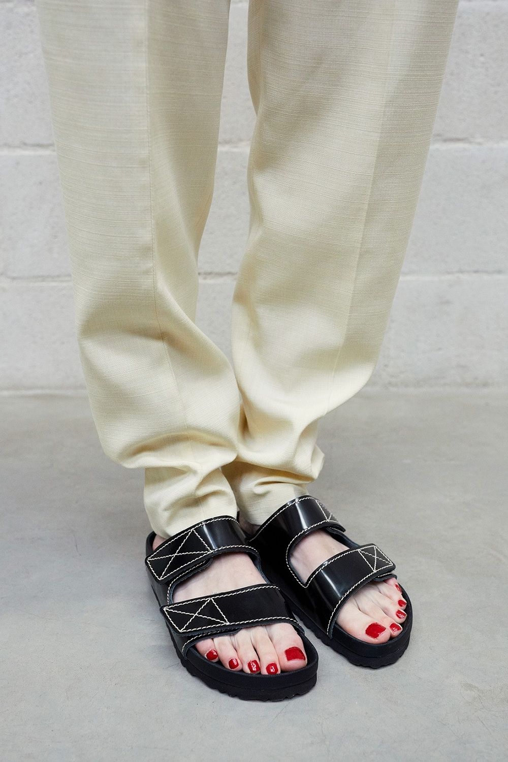 The result is a series of unisex sandals, made in mirror-polished calfskin leather that recalls Proenza Schouler's clothes and comes in black, white, ochre and silver.