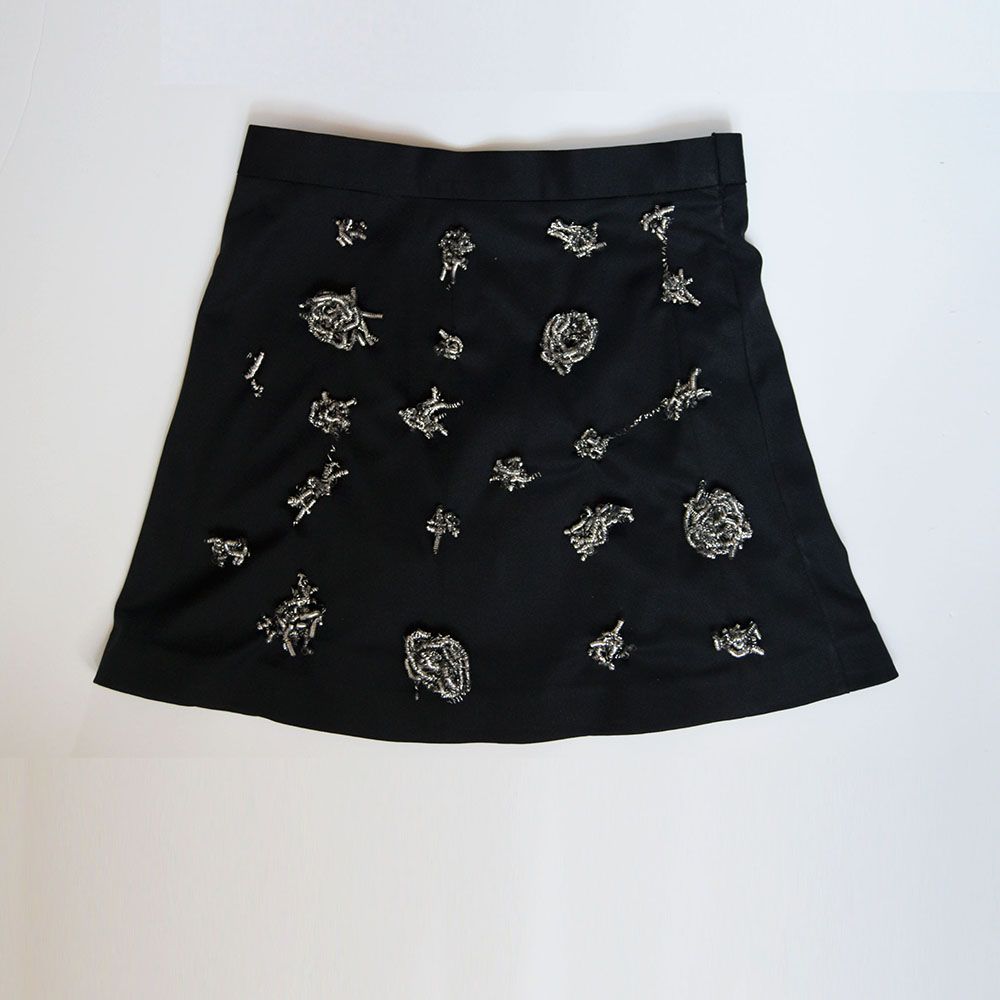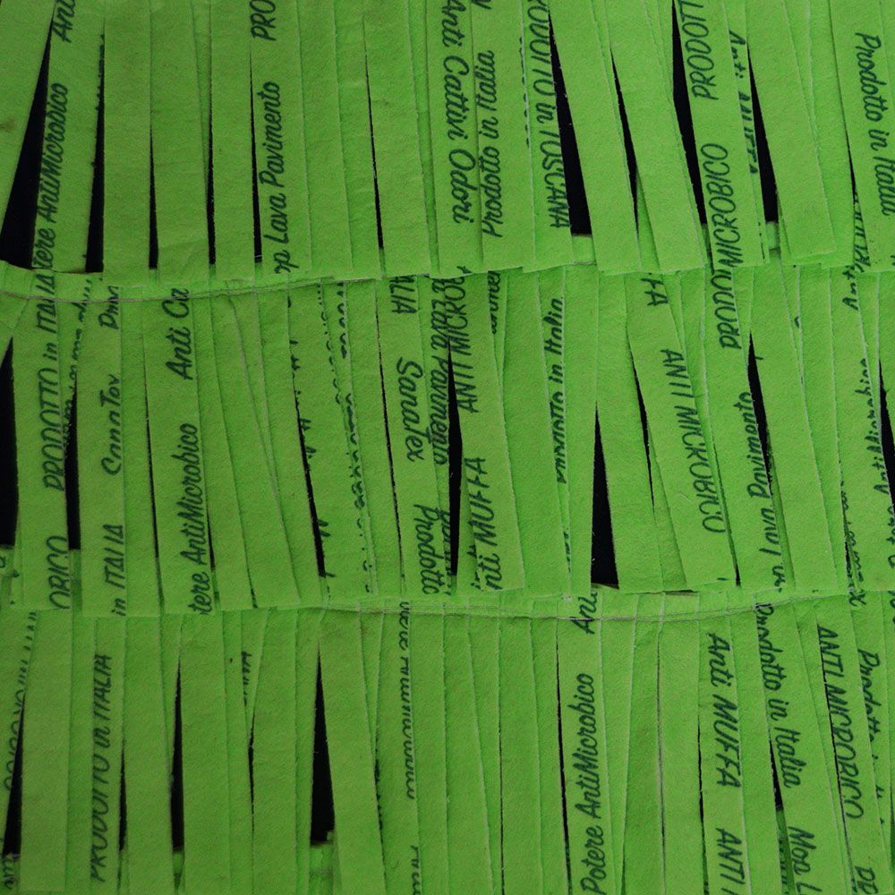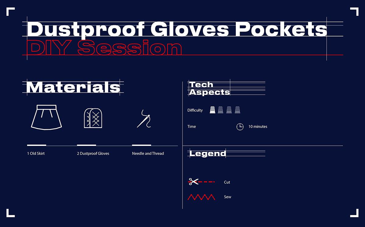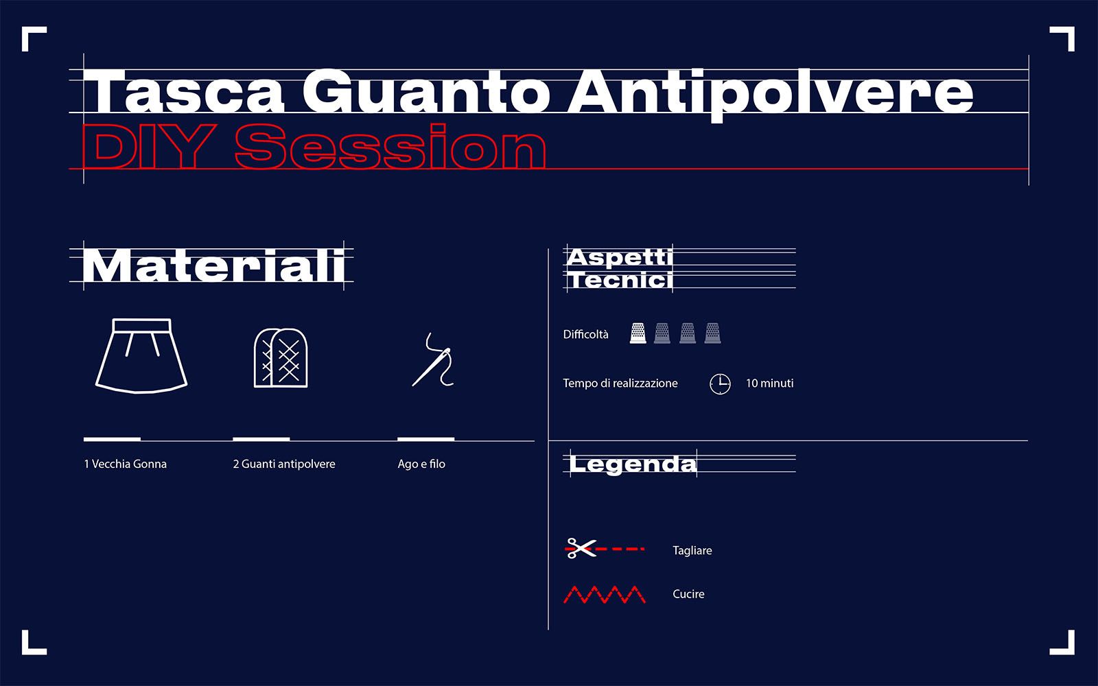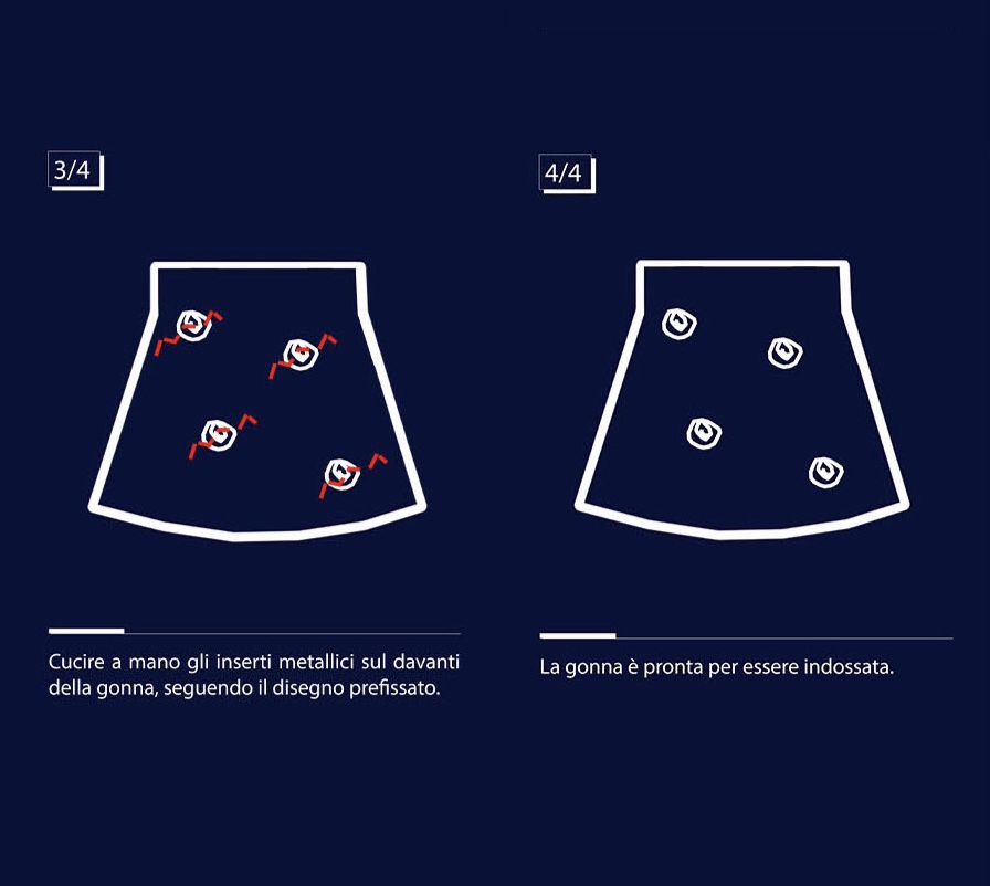 In this experiment the following items were used: metal sponges, which we turned into inserts to be applied by hand on a skirt, to create bright details that look like jewels; a mop, we turned the fringes into a decorative element to be applied directly on the skirt; gloves for dusting, that became colourful and fun pockets. Ready to customize?