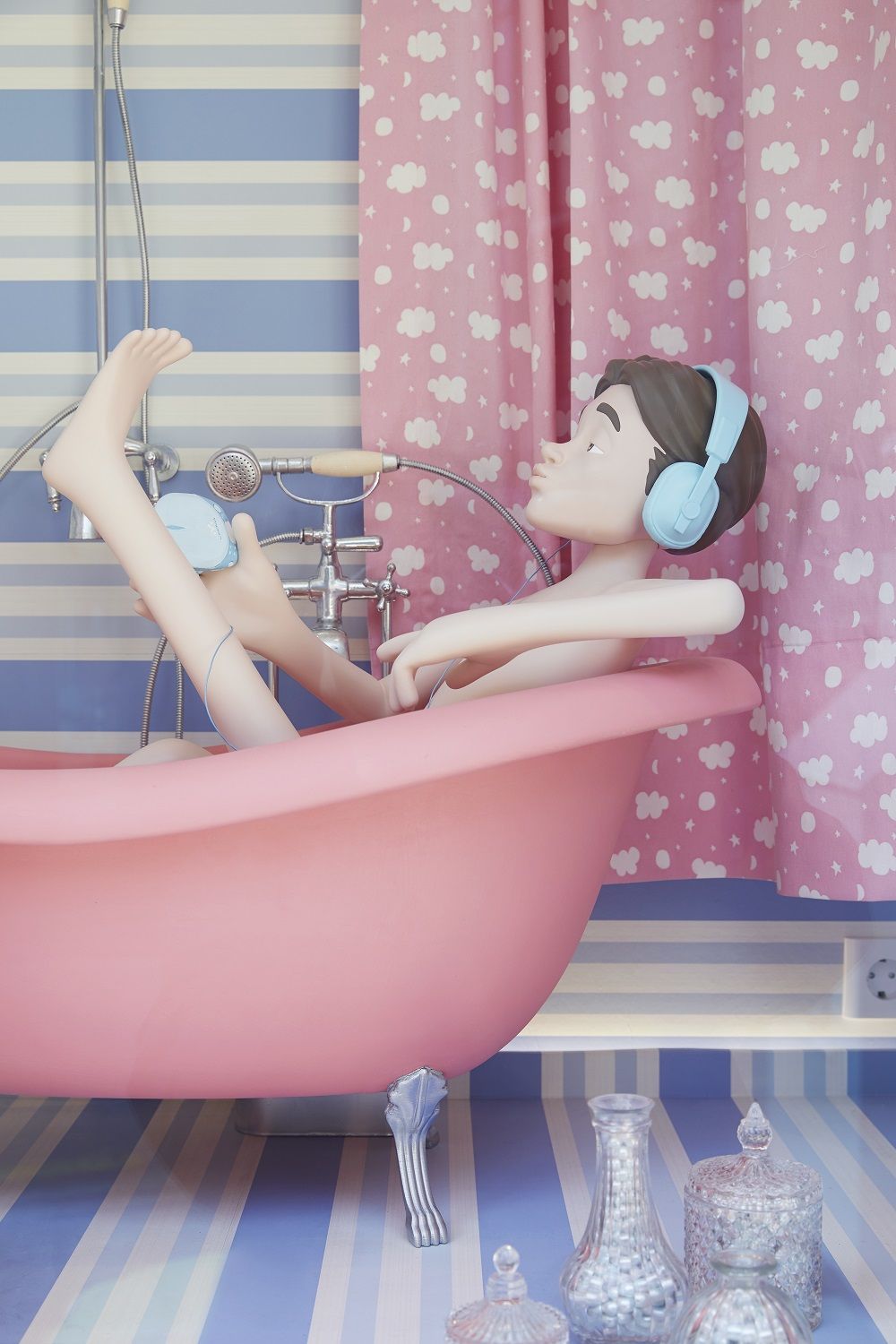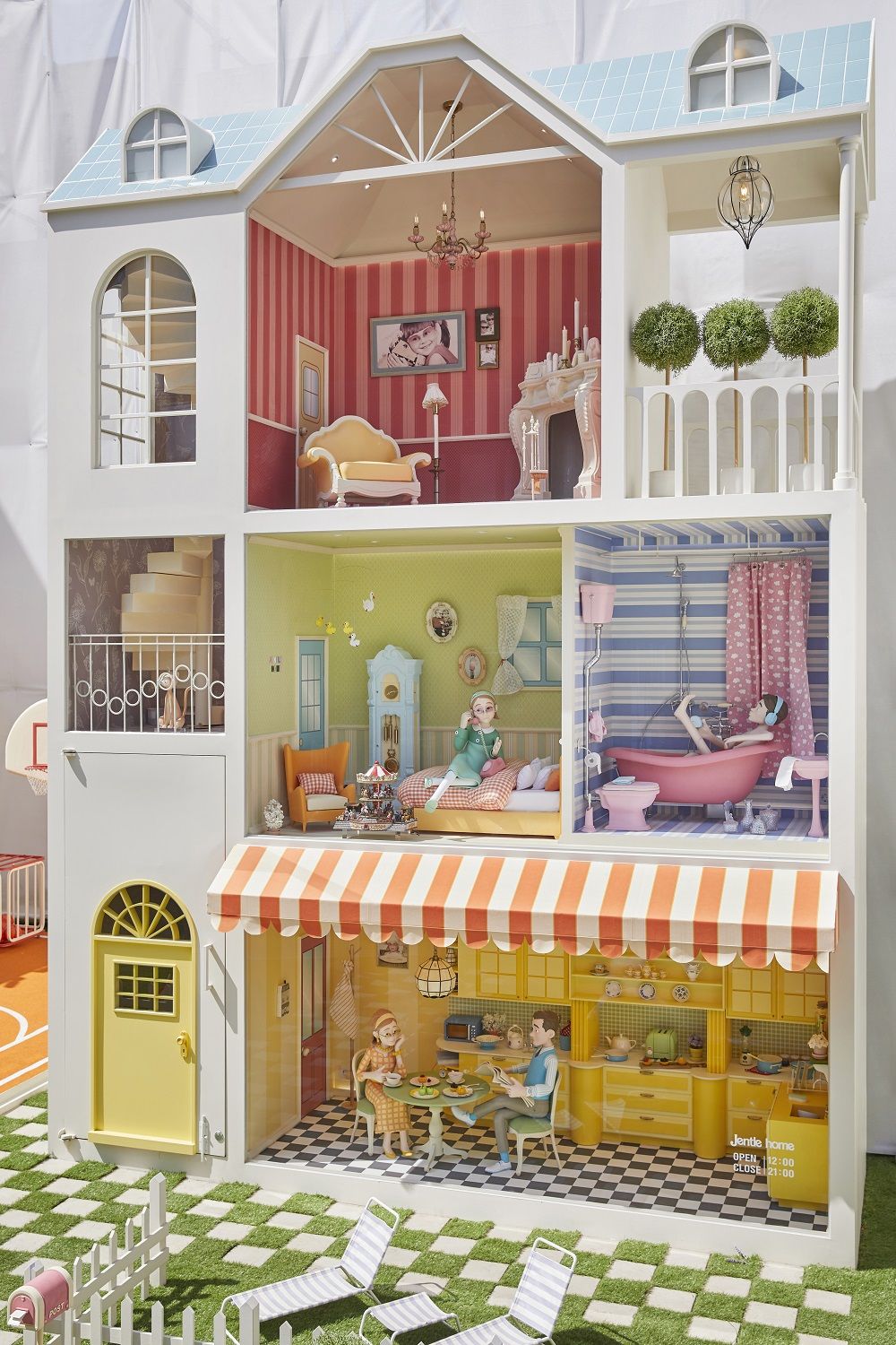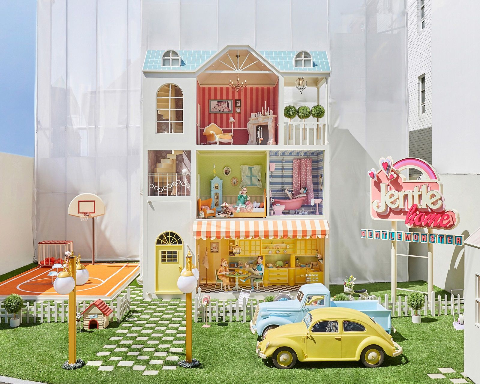 Gentle Monster unveiled the new Jentle Home collection in collaboration with Jennie Kim with a special pop up inspired by the singer's childhood memories and located across from the brand's flagship store in the Garosugil district in Seoul. Once guests have entered the store, they find a real doll's house, populated by funny figures involved in daily activities such as bathing, telephoning or cooking hamburgers. Going up, they step into a fairytale space in pastel tones with a kitchen and living room that look like the perfect set for the ultimate Instagram shot. There is also a dressing room that hides a secret room with a teddy bear fountain. On the third floor of the pop-up location there is a retro-style supermarket with special products.
