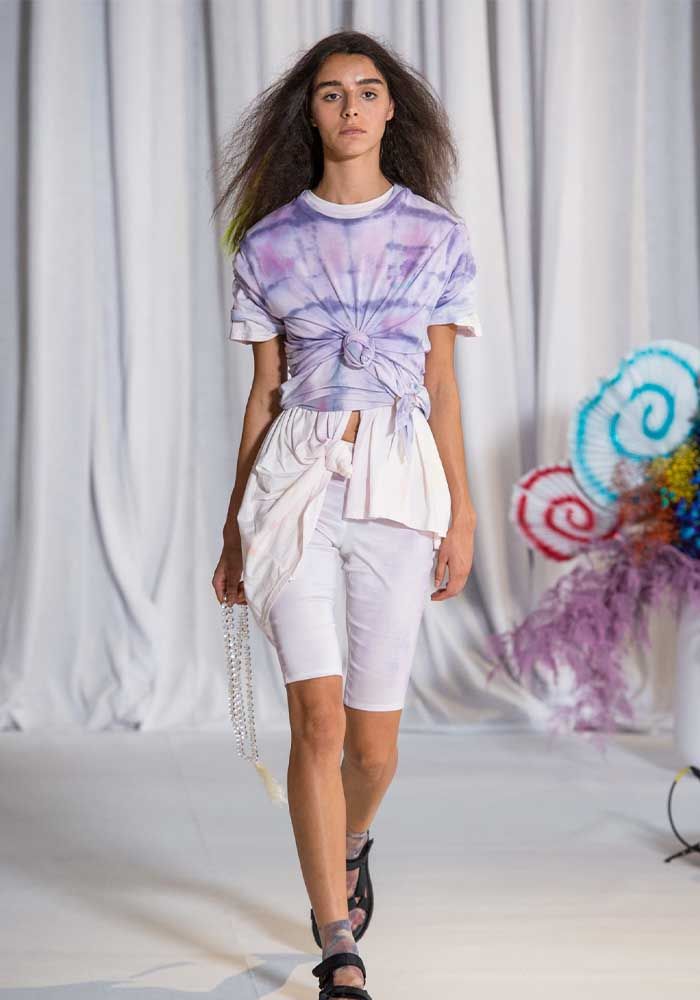 In this specific historical moment, spending long days at home and feeling more creative, the tie dye technique has become viral, also through Tik Tok or influencer tutorials. Or perhaps, in part, also because of the need to spread a positive message of hope and serenity, that the soft and vibrant colors of the tie dye are able to convey. It is also very much loved by celebrities and influencers to show off an easy-chic style in leisure time, especially for their summer looks.