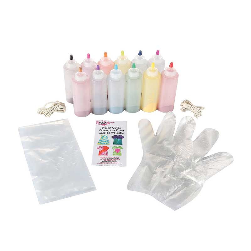1. First of all, the starter kit must include: elastic bands, a plastic sheet, colors for dyeing (can be easily found on Amazon), disposable gloves, a pot, a container, salt, plastic bags, a white t-shirt strictly made of cotton.