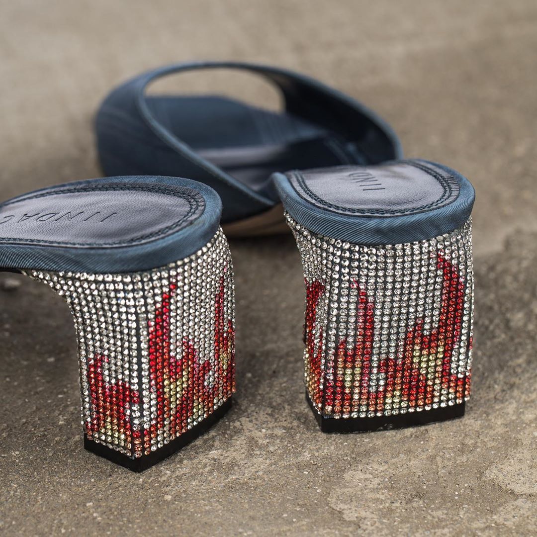 IINDACO, written with two "i" in reference to the month of birth of the brand's founders and also a reference to their friendship, is a young brand that already has a lot to tell. It is not simply about made-in-Italy footwear, but a business model based on research and a circular economy, an eco-sustainable project in all its phases: from product design to the search for excellent quality recycled and recyclable materials, from the reduction of waste to reusable packaging. The brand's first collection is inspired by rationalist architecture and men's footwear, offering a sensual and refined product. The architectural forms, the satin effect, the bold colors literally conquered us. Our favorite detail? The square heel decorated with flames made of micro crystals.