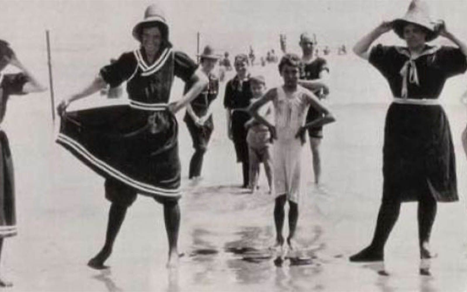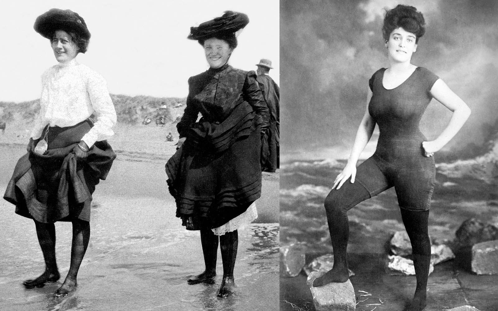 The seaside looks for women in the early 20th century included wide slip-pants up to the ankle, on which skirts with petticoats were worn. The upper part instead consisted of a shirt with puffed sleeves up to the elbow.
