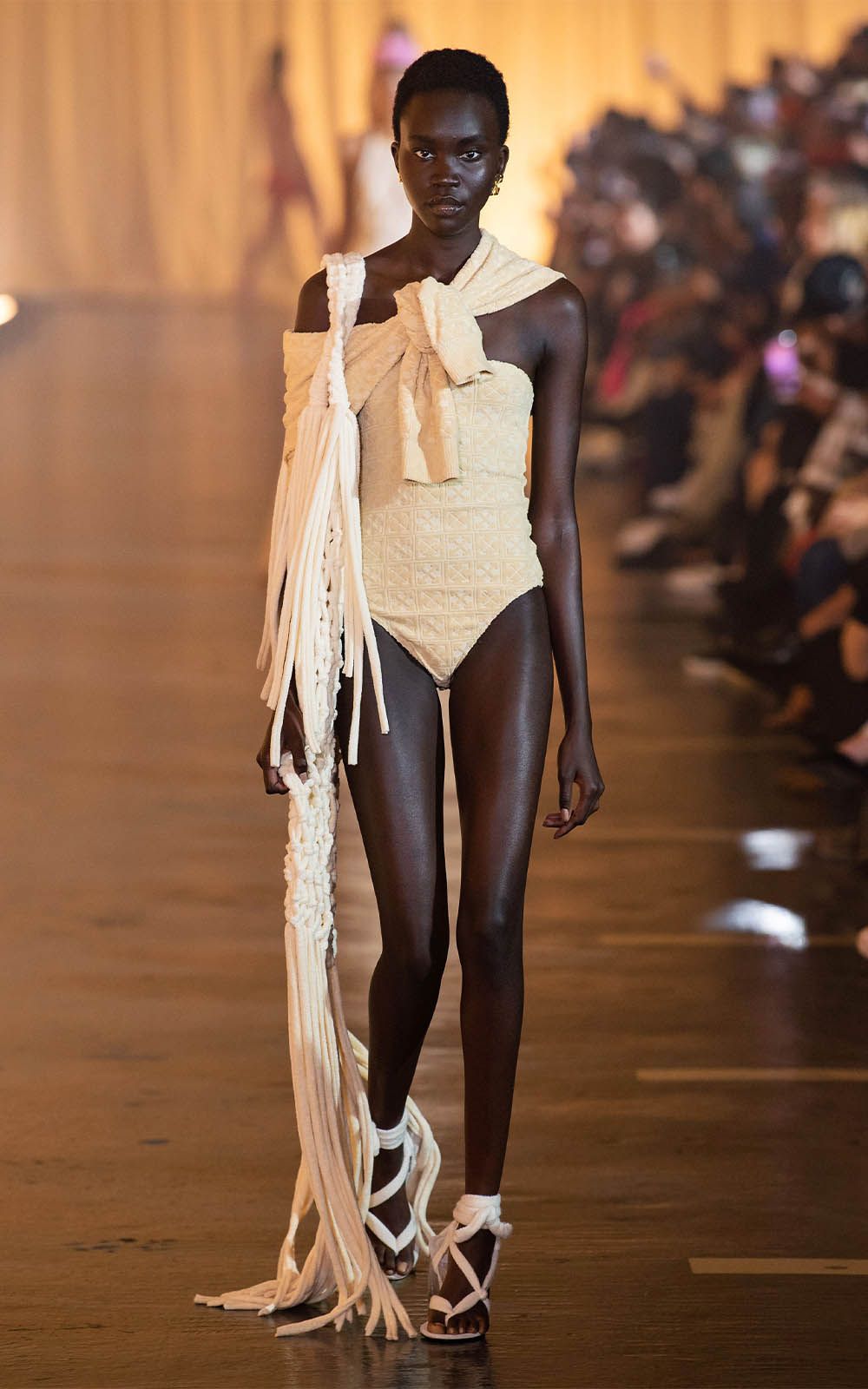 In 1958 Lycra was introduced by the homonymous company, a material that allowed to cover the body by drying it quickly. Today the main fabrics used for making swimwear are precisely lycra, lastex and other stretch fabrics that adhere well to body shapes. In 1920, rayon was used, a fiber obtained from cellulose, but it was characterized by poor durability, especially when wet.