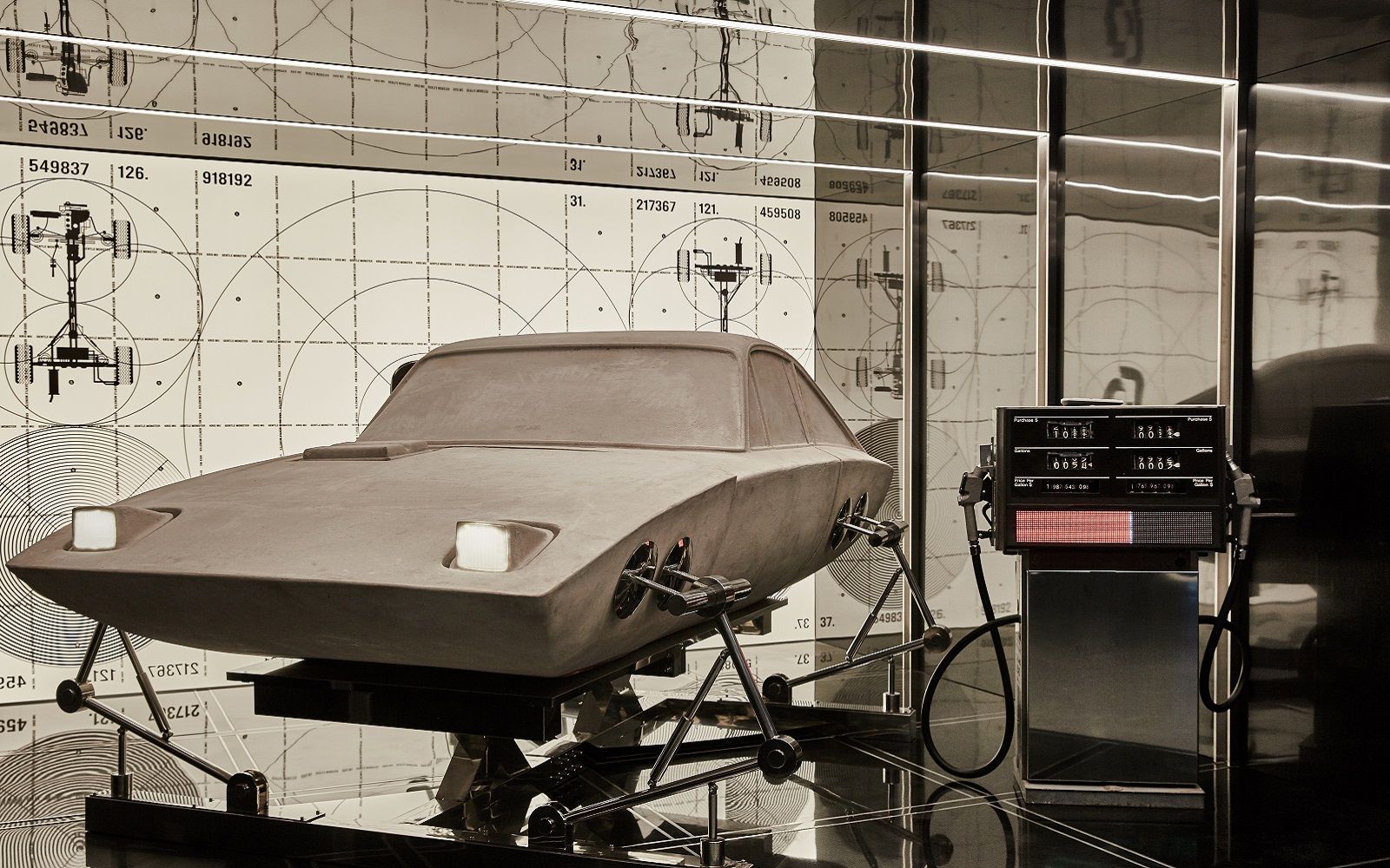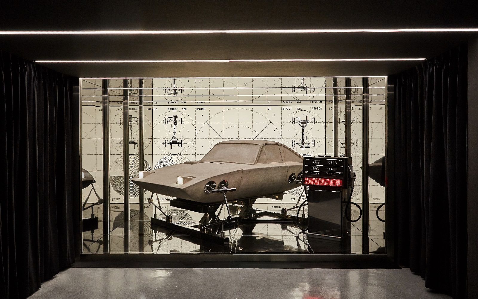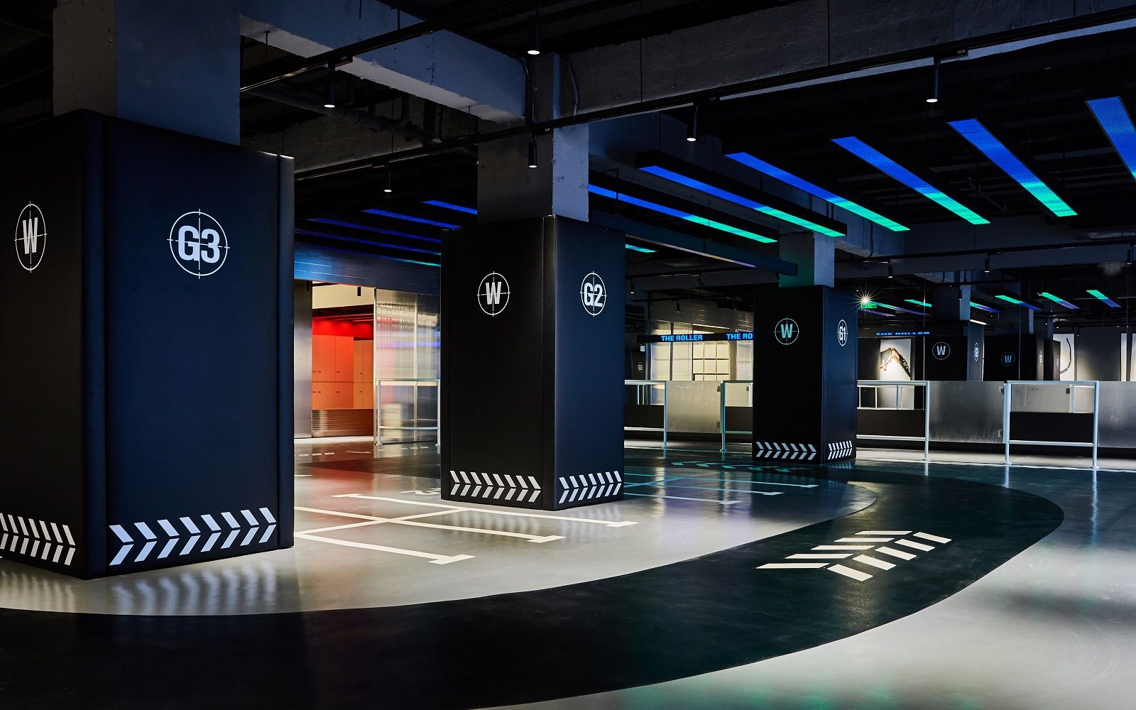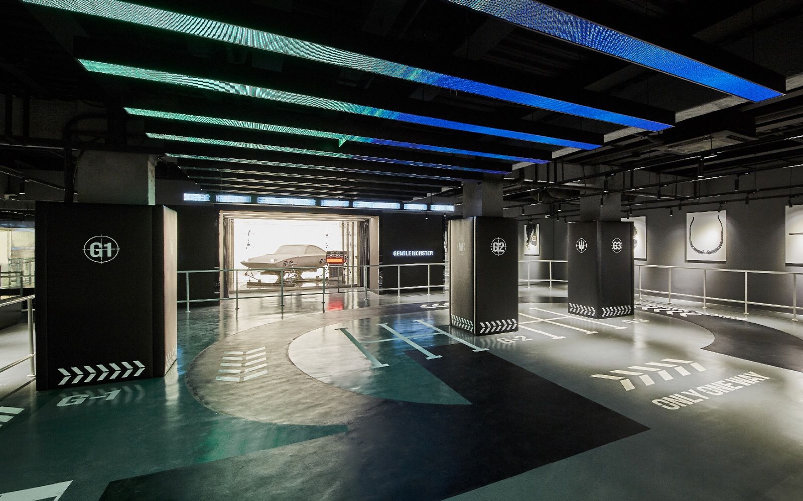 The space in Shanghai is called The Roller and recreates the atmosphere of a parking lot for artists. Entering, visitors will find themselves inside a skating rink with two large monitors showing the Gentle Wu collection an eye-catching futuristic vehicle, a clear reference to Wu's passion for luxury cars and speed racing.