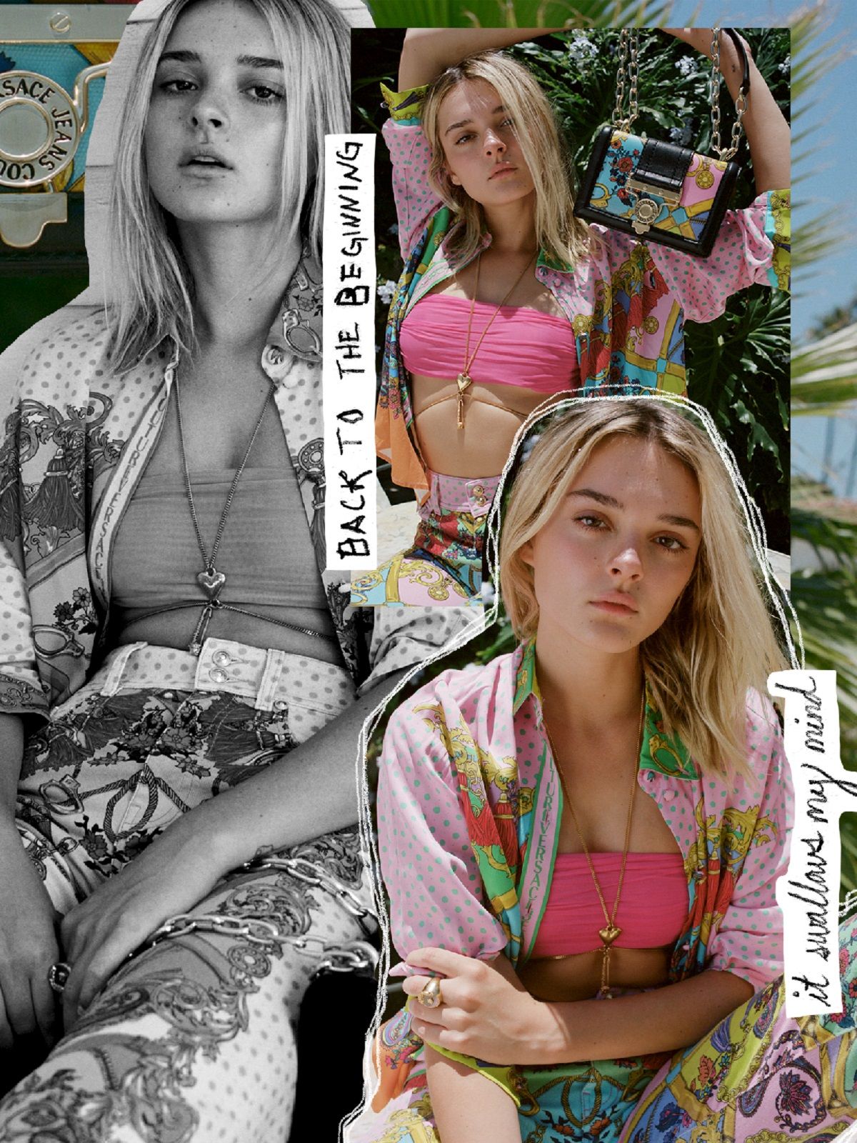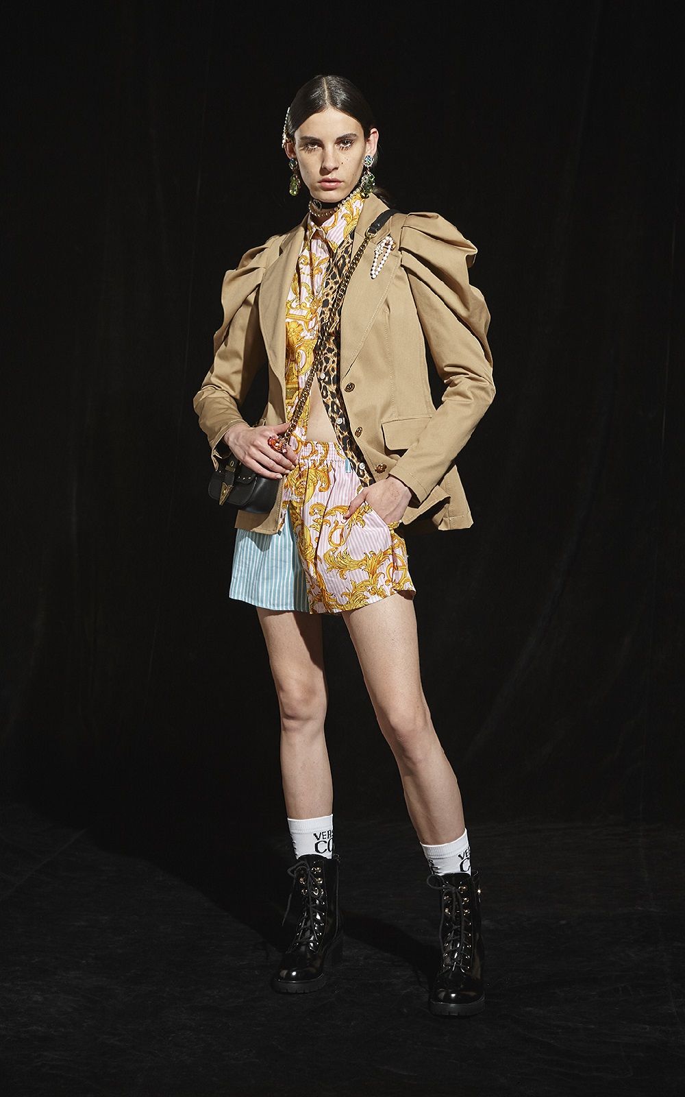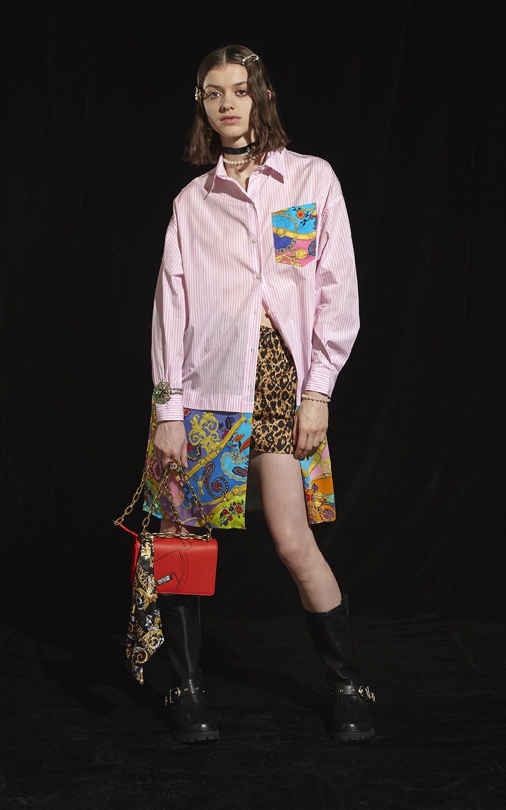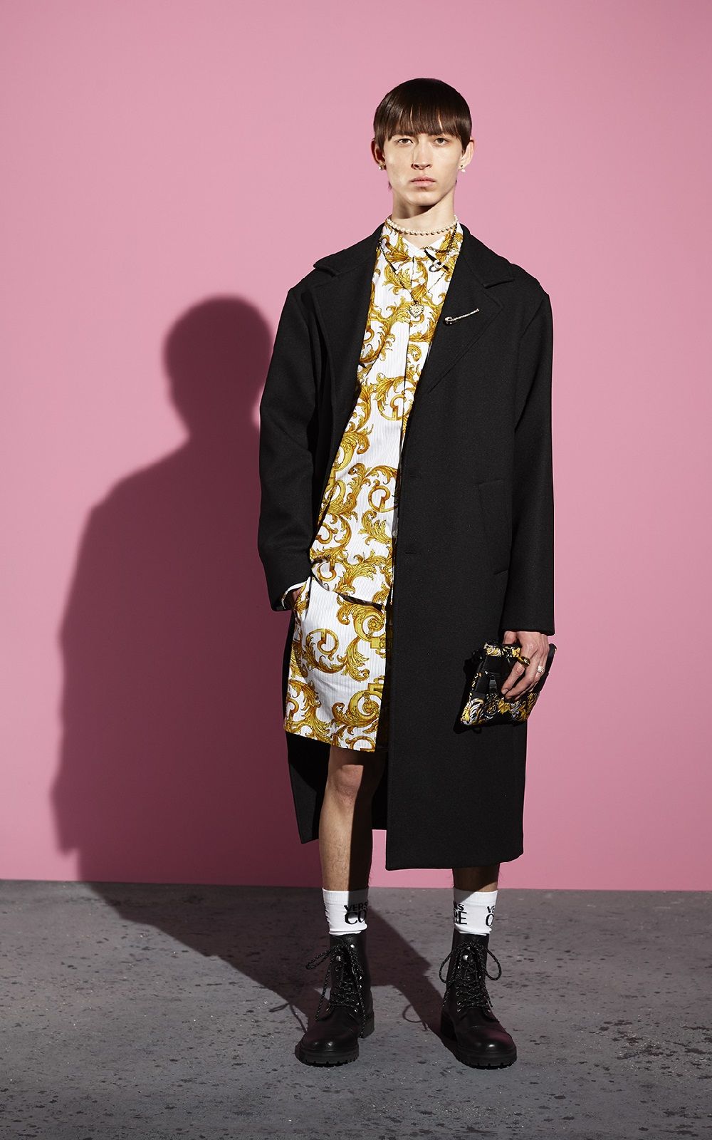 The sixties silhouettes meet the girly rebellious mood of the 90s Riot grrrl in Versace Jeans Couture's FW20 collection. Starting with denim, which is a key element of the line, the brand plays with the codes of femininity by inserting unconventional details recalling the decade of grunge, when Courtney Love appeared on stage wearing slip dresses, torn fishnet stockings and biker boots.