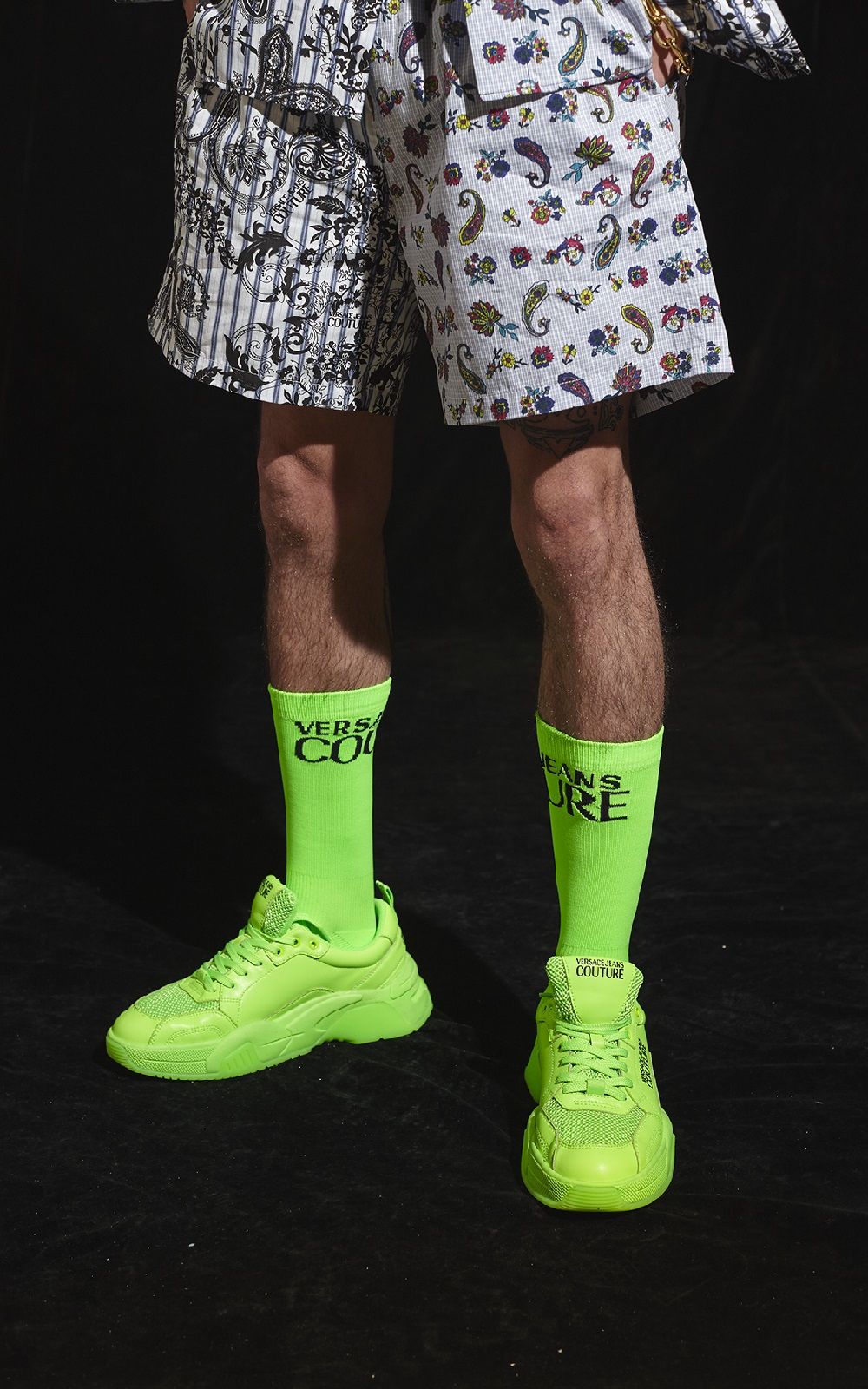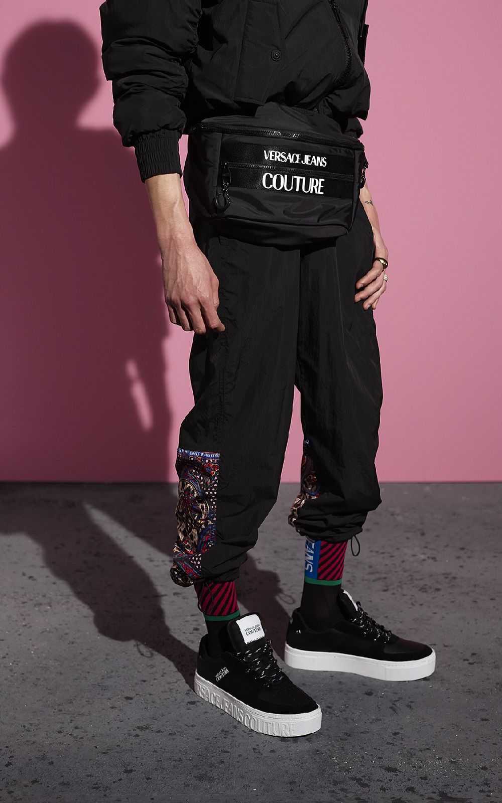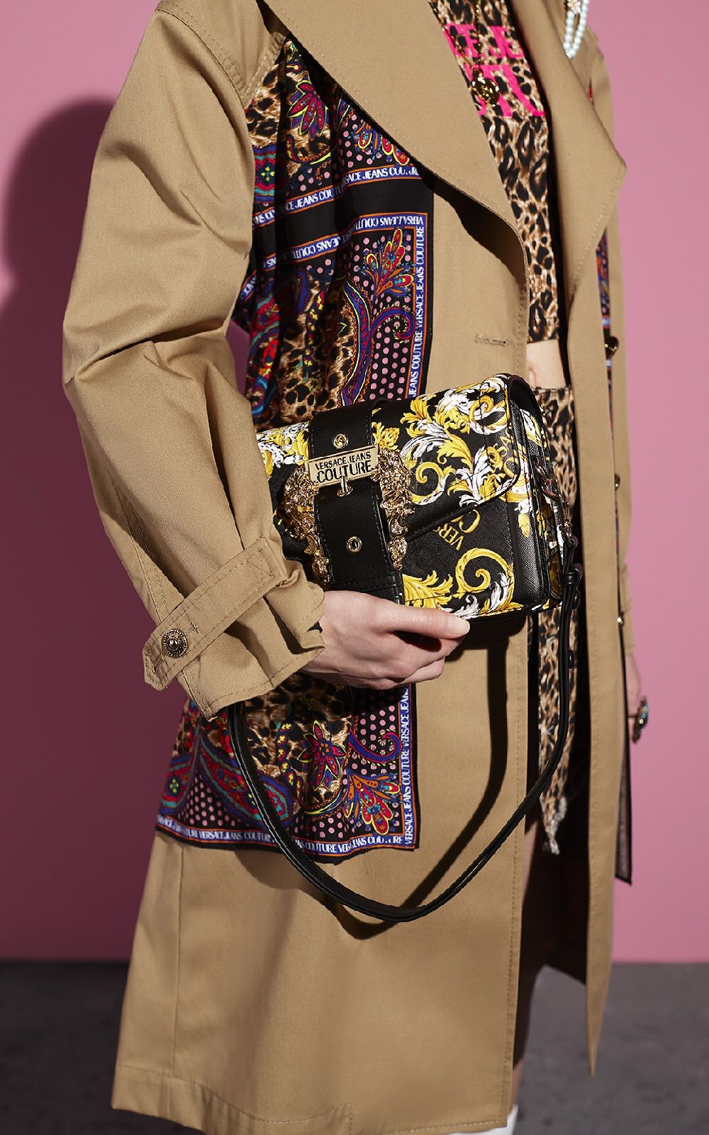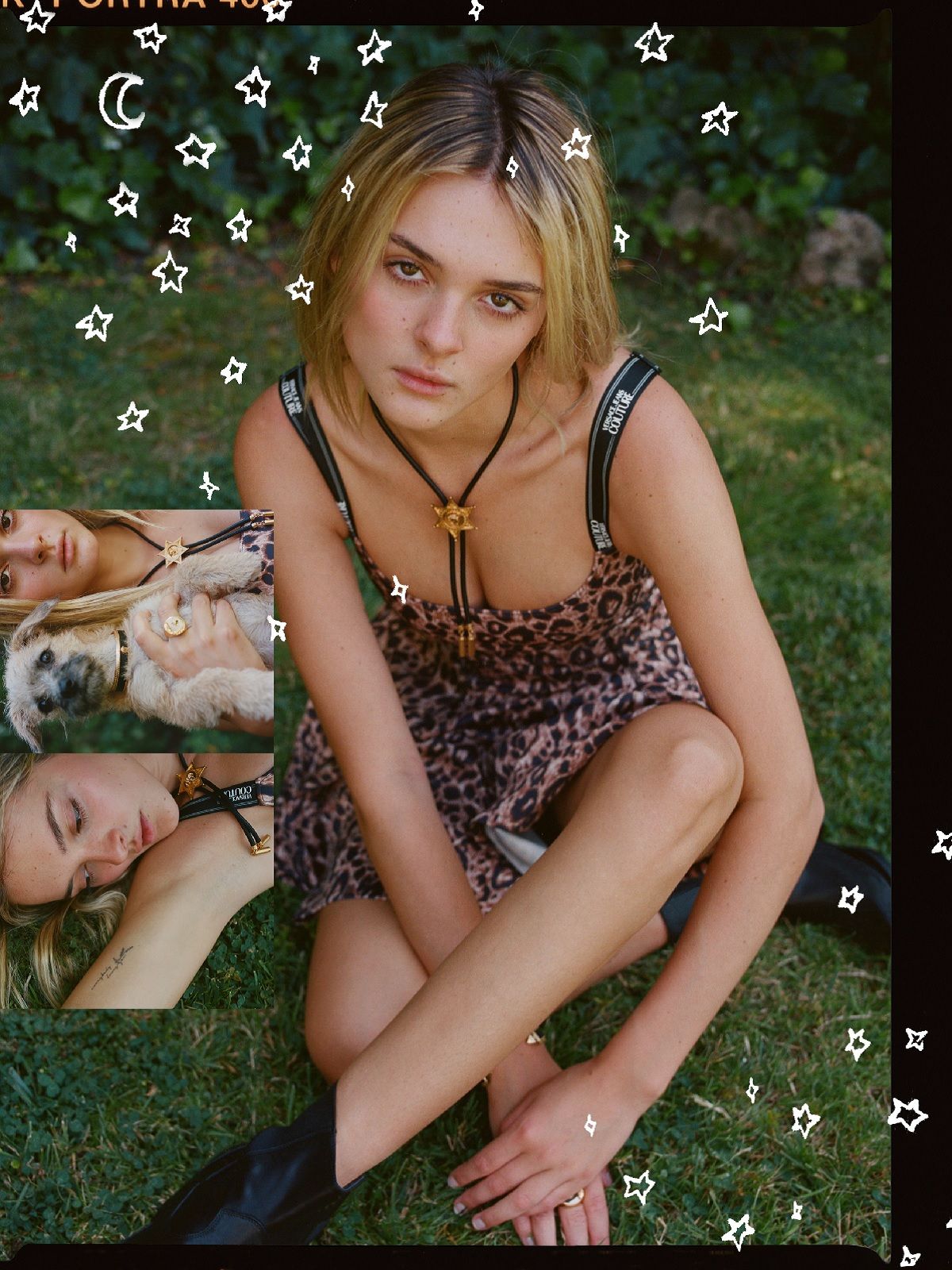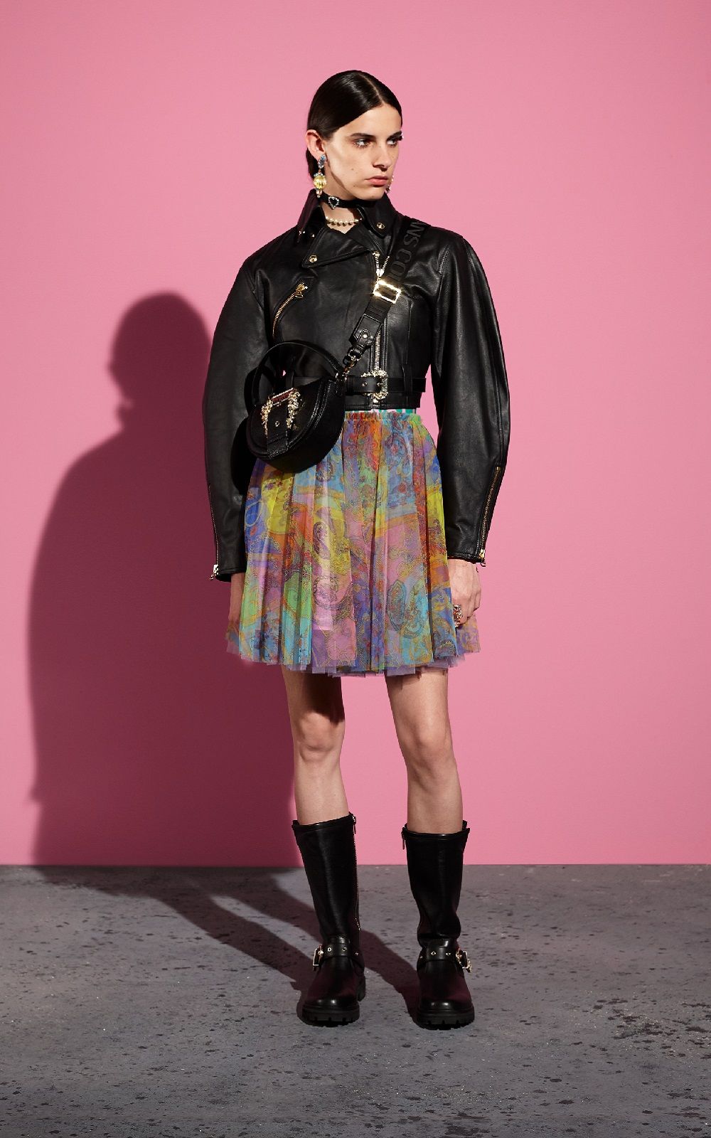 The sixties silhouettes meet the girly rebellious mood of the 90s Riot grrrl in Versace Jeans Couture's FW20 collection. Starting with denim, which is a key element of the line, the brand plays with the codes of femininity by inserting unconventional details recalling the decade of grunge, when Courtney Love appeared on stage wearing slip dresses, torn fishnet stockings and biker boots.