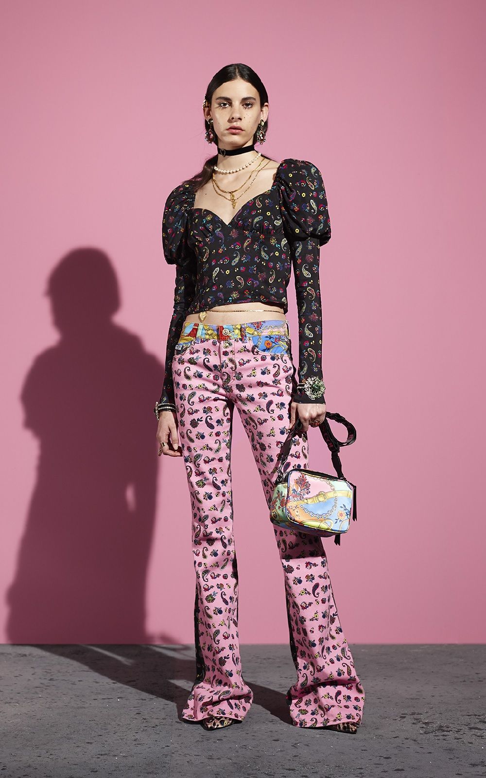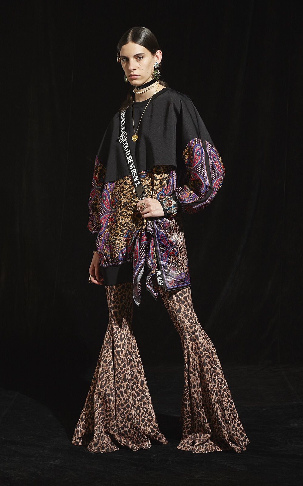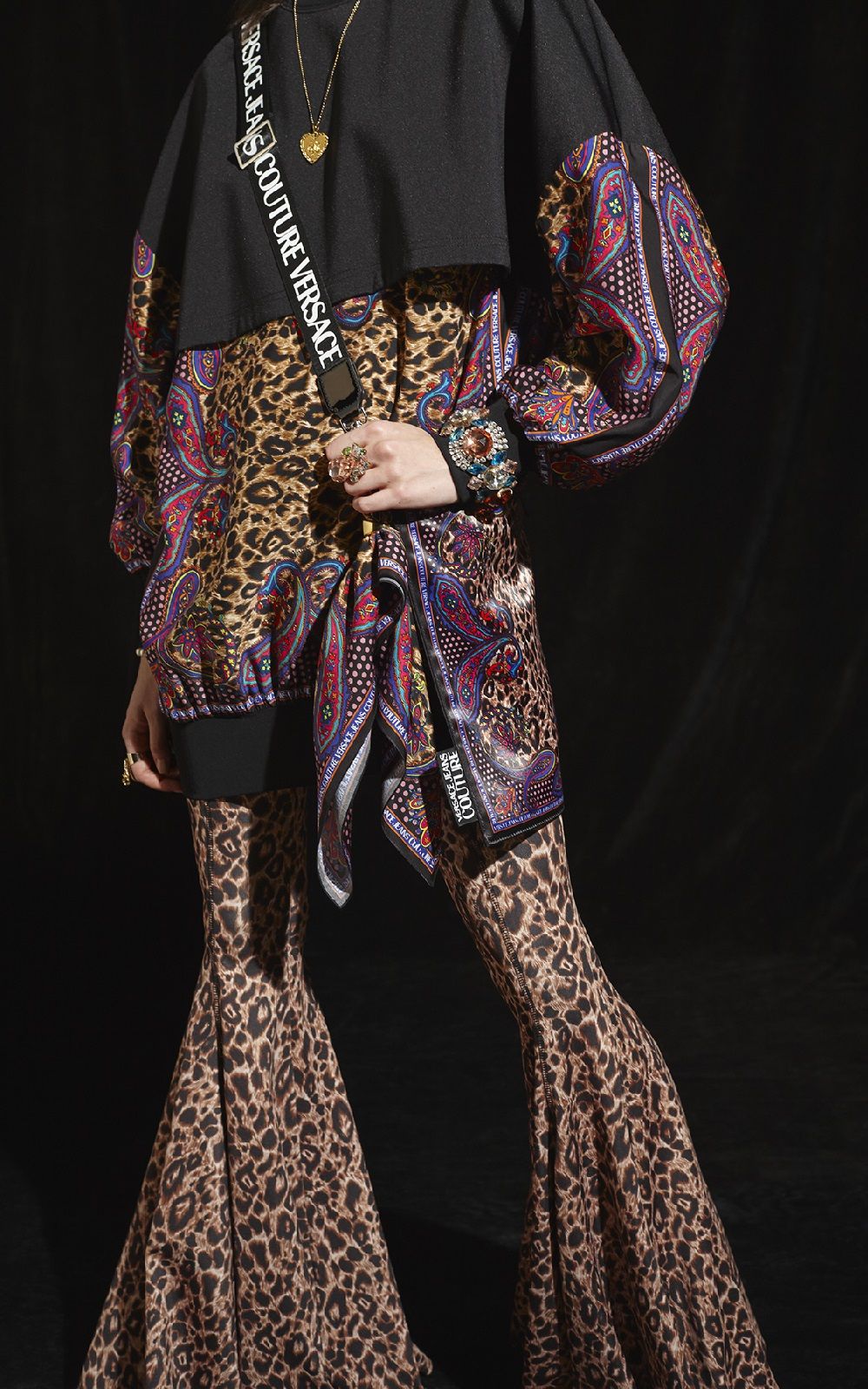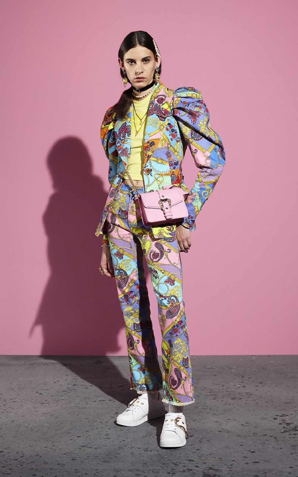 Jeans mix with pinstripe tailored pieces, micro cardigans with the oversized shirts, silk and lace baby dolls with leather jackets, pastel colorful prints with metal studs and spikes, flared pants with tweed suits. The scarves with their colorful, baroque, animal prints and paisley are more than just an accessory, they are the feature that gives cohesion and contemporaneity to every item, from shirts to bags.