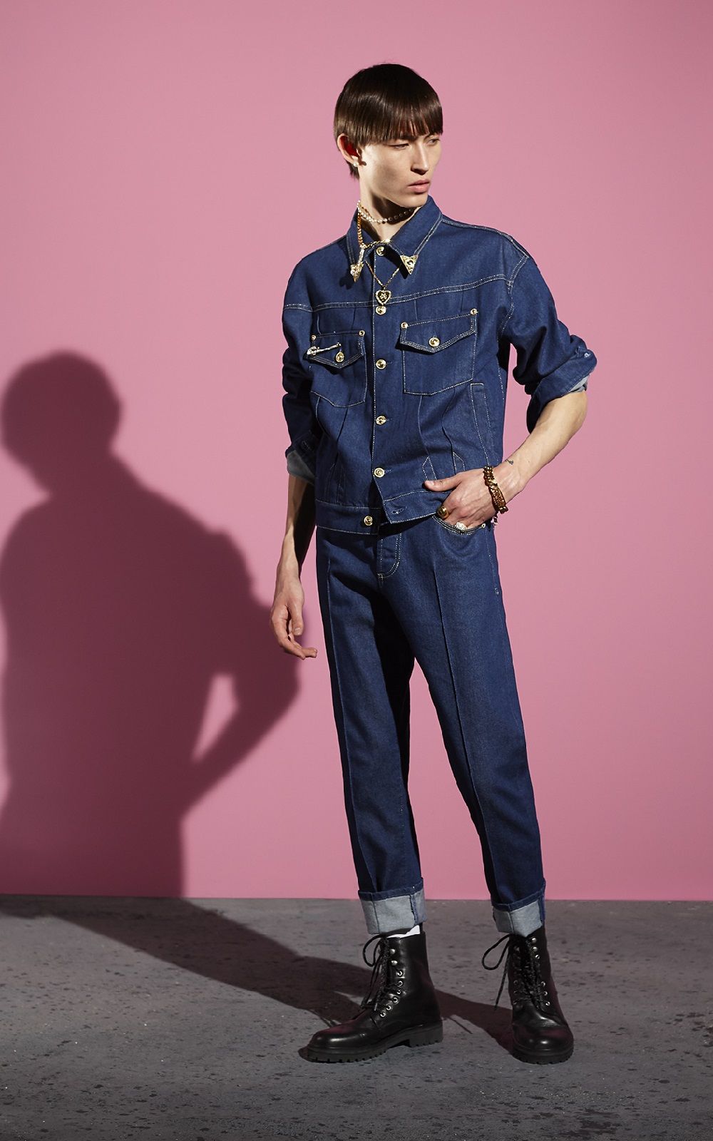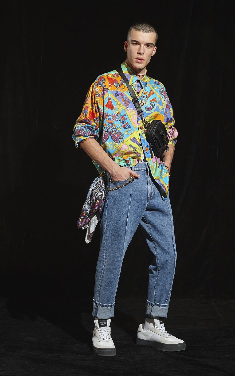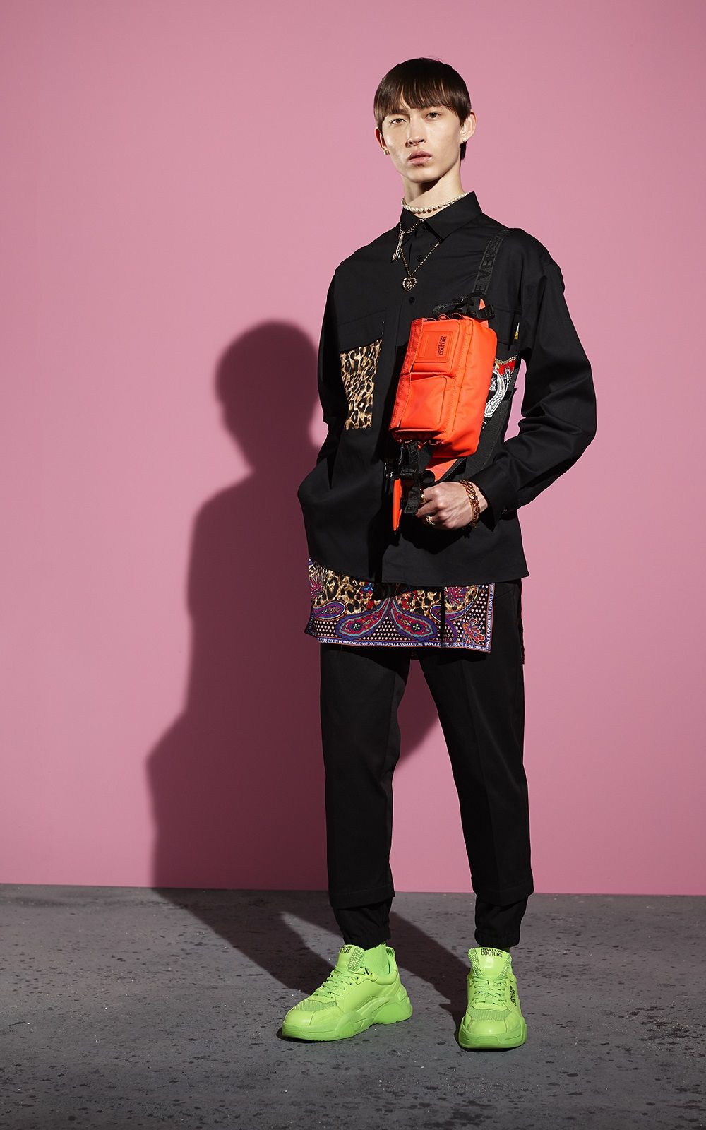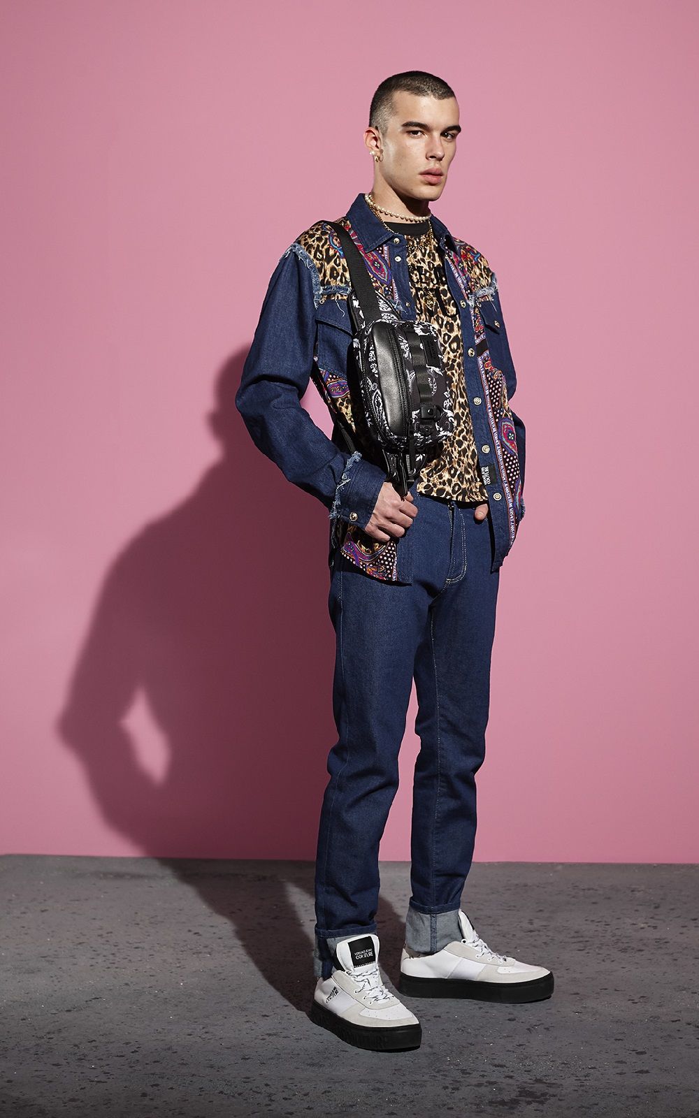 The same balance of opposites equally characterizes the male proposal. Streetwear, tailoring and elements taken from the world of sport produce a series of eye-catching, colourful, playful looks, designed around the must-have of the season: bleached jeans, animalier prints and structured peacoats.