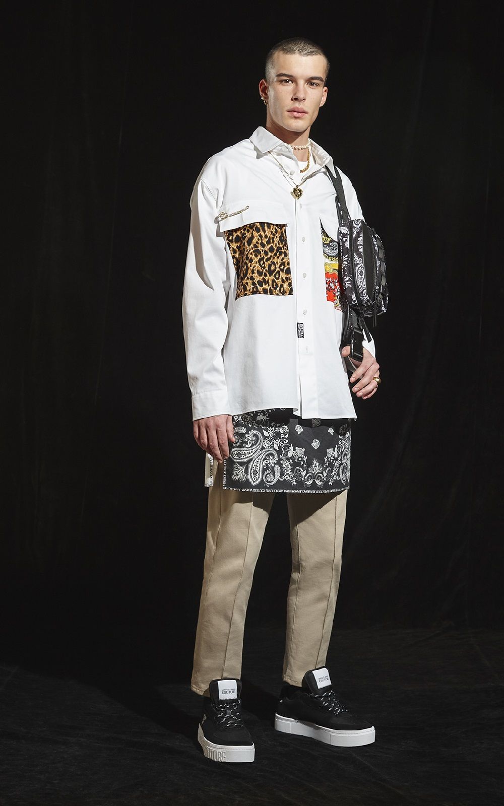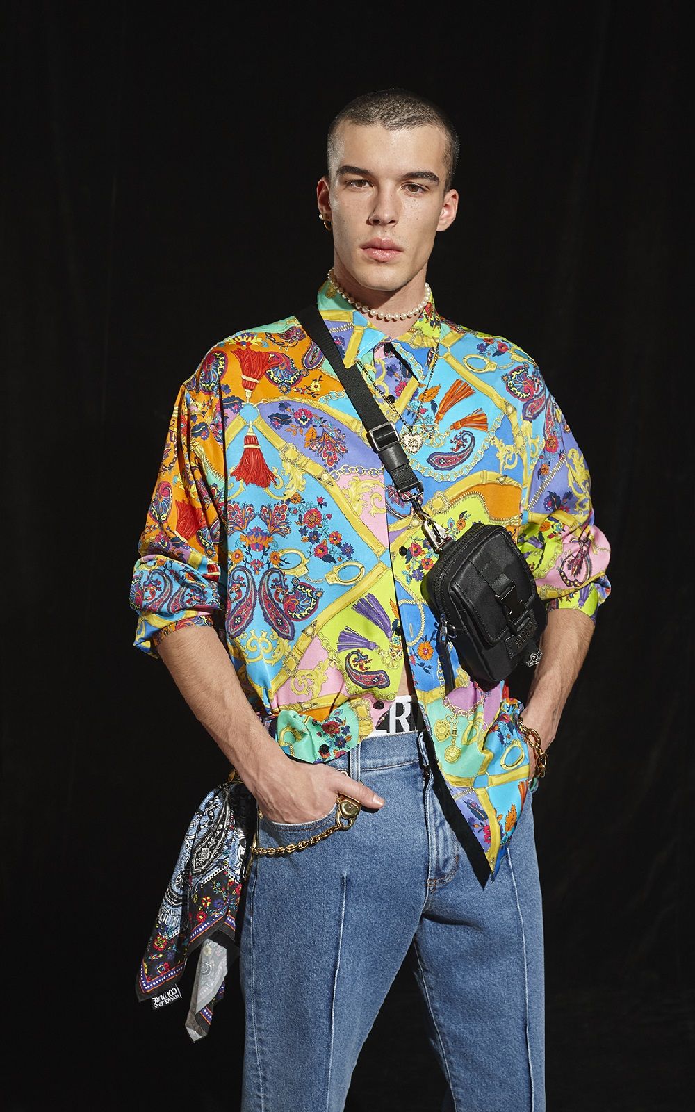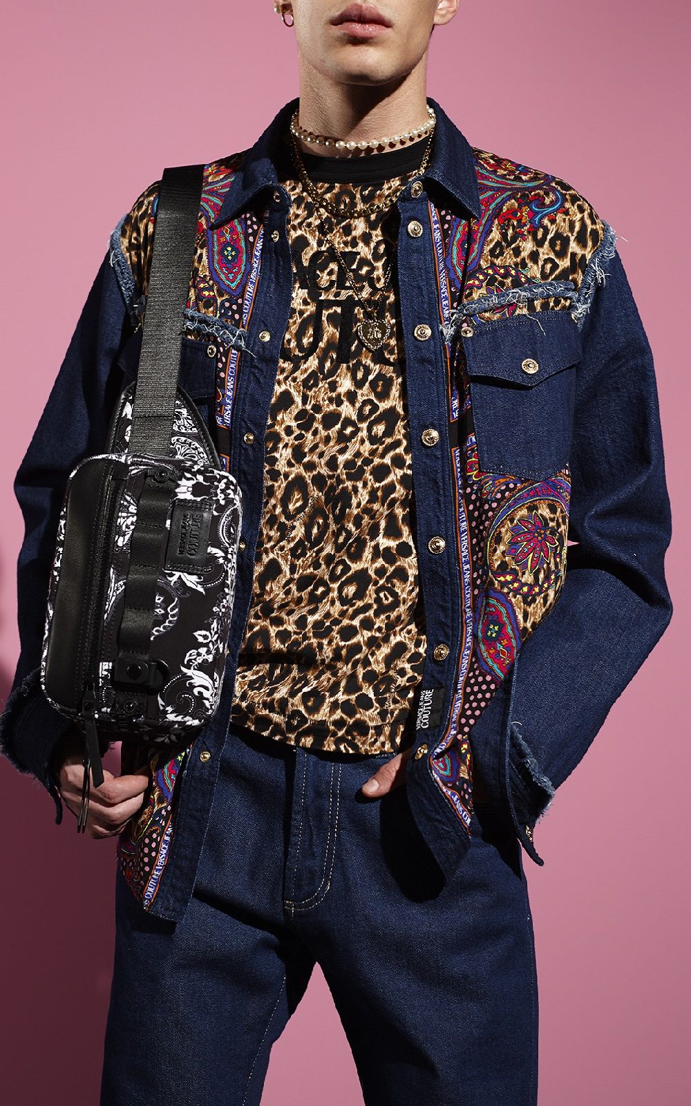 The same balance of opposites equally characterizes the male proposal. Streetwear, tailoring and elements taken from the world of sport produce a series of eye-catching, colourful, playful looks, designed around the must-have of the season: bleached jeans, animalier prints and structured peacoats.