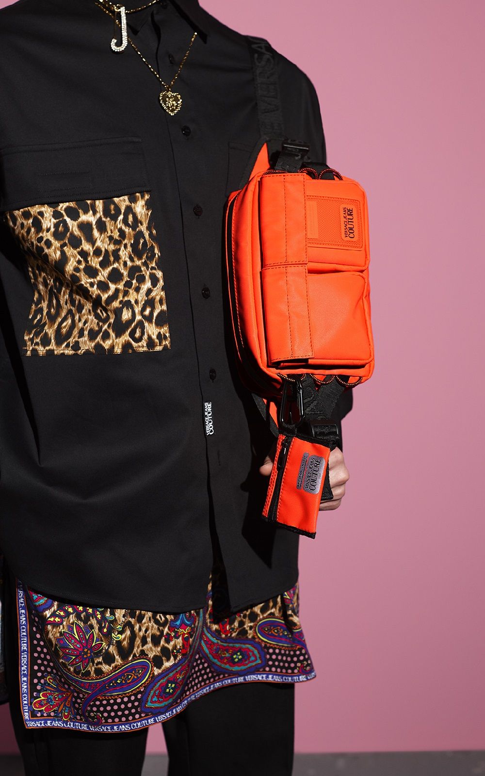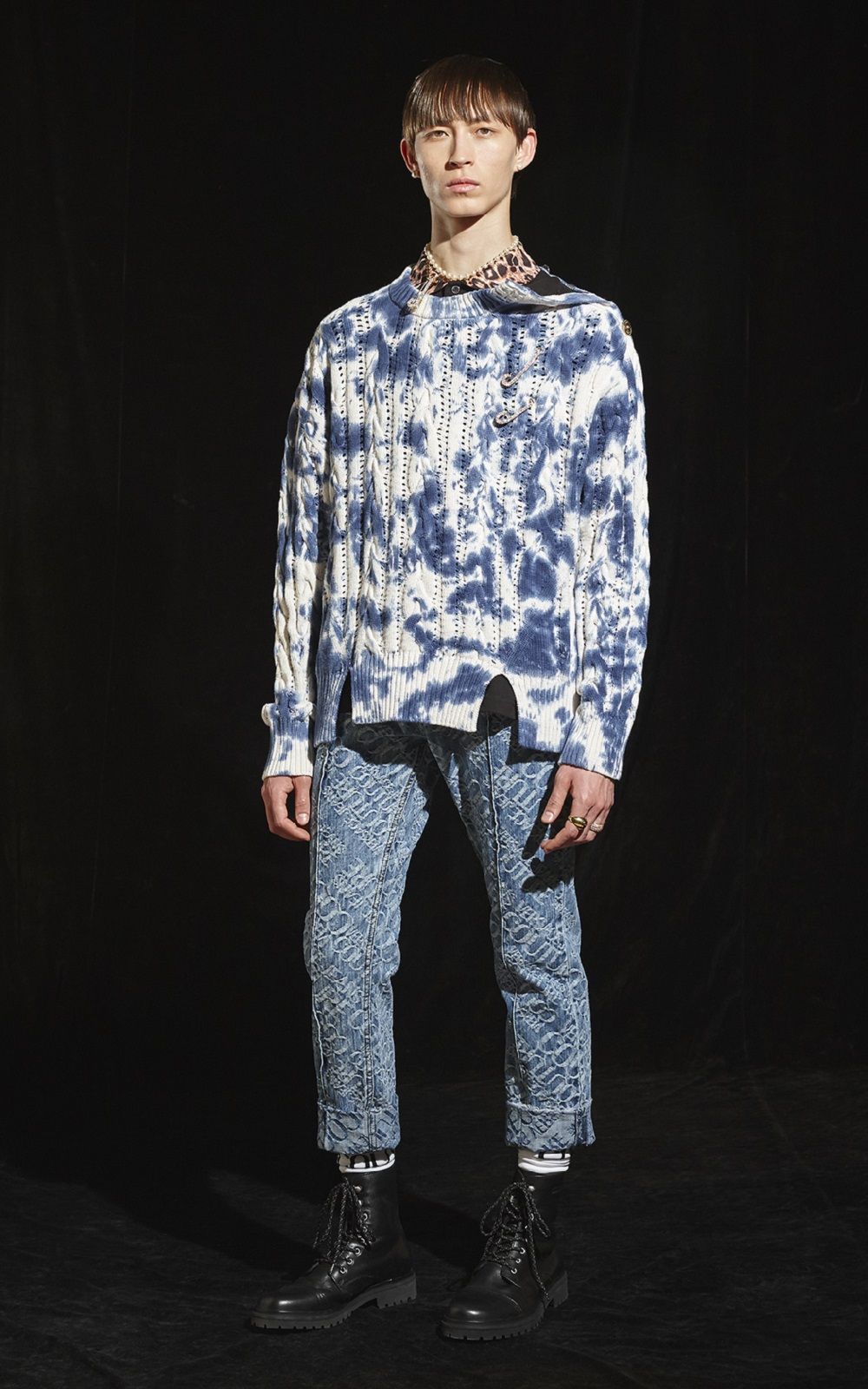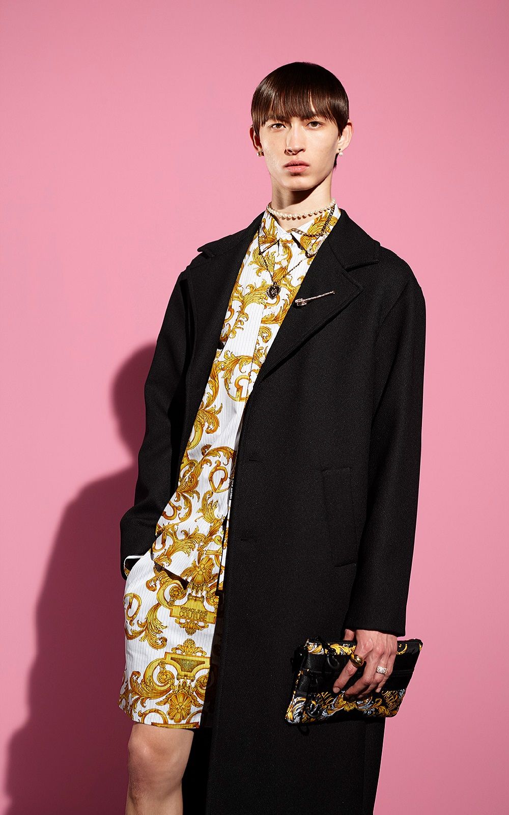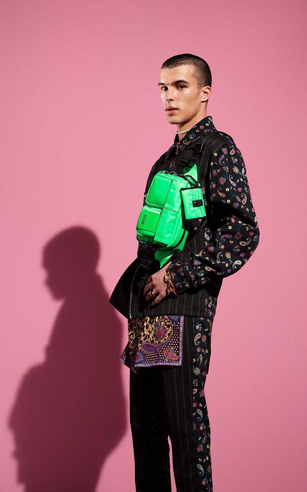 The same balance of opposites equally characterizes the male proposal. Streetwear, tailoring and elements taken from the world of sport produce a series of eye-catching, colourful, playful looks, designed around the must-have of the season: bleached jeans, animalier prints and structured peacoats.