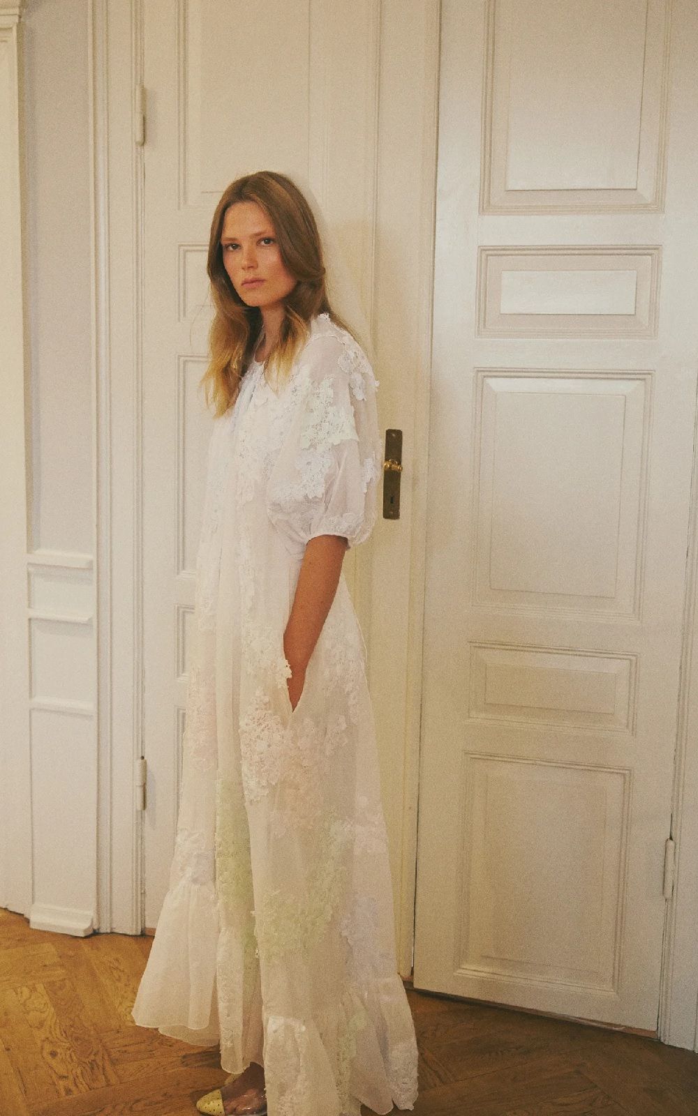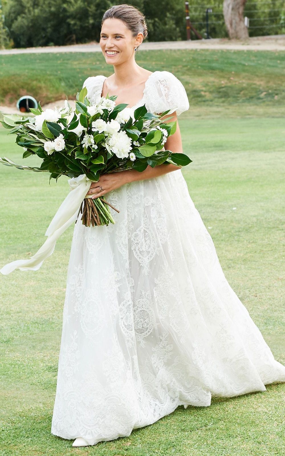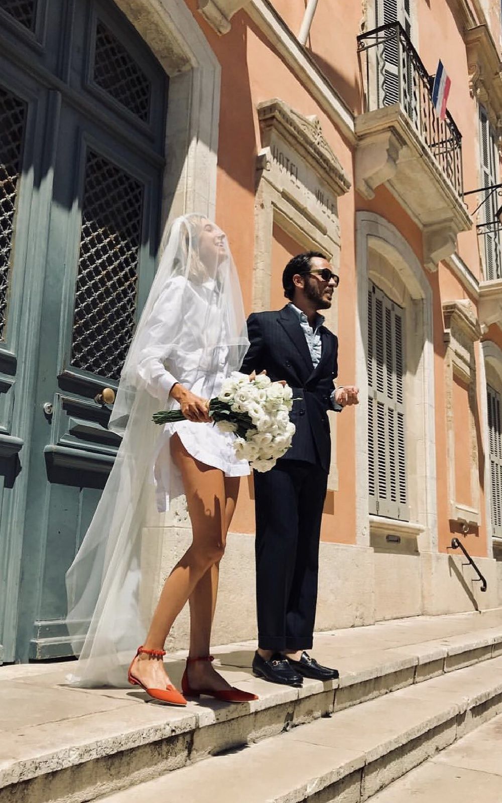 Vittoria Ceretti married DJ Matteo Milleri in Ibiza, in a small church overlooking the sea, in a white dress by Jacquemus. The creation that is part of the SS20 collection featured thin straps, deep V-neckline, soft skirt and a long row of central buttons that slides along the entire dress. To complete the minimal and Mediterranean look there were white sandals, a veil of organza and thin golden jewels.