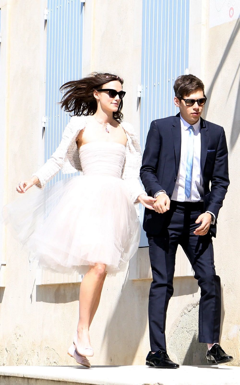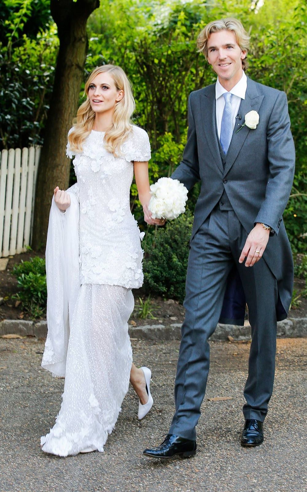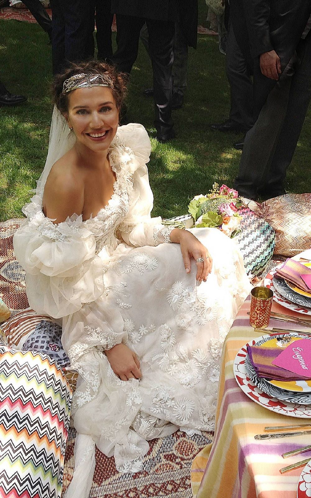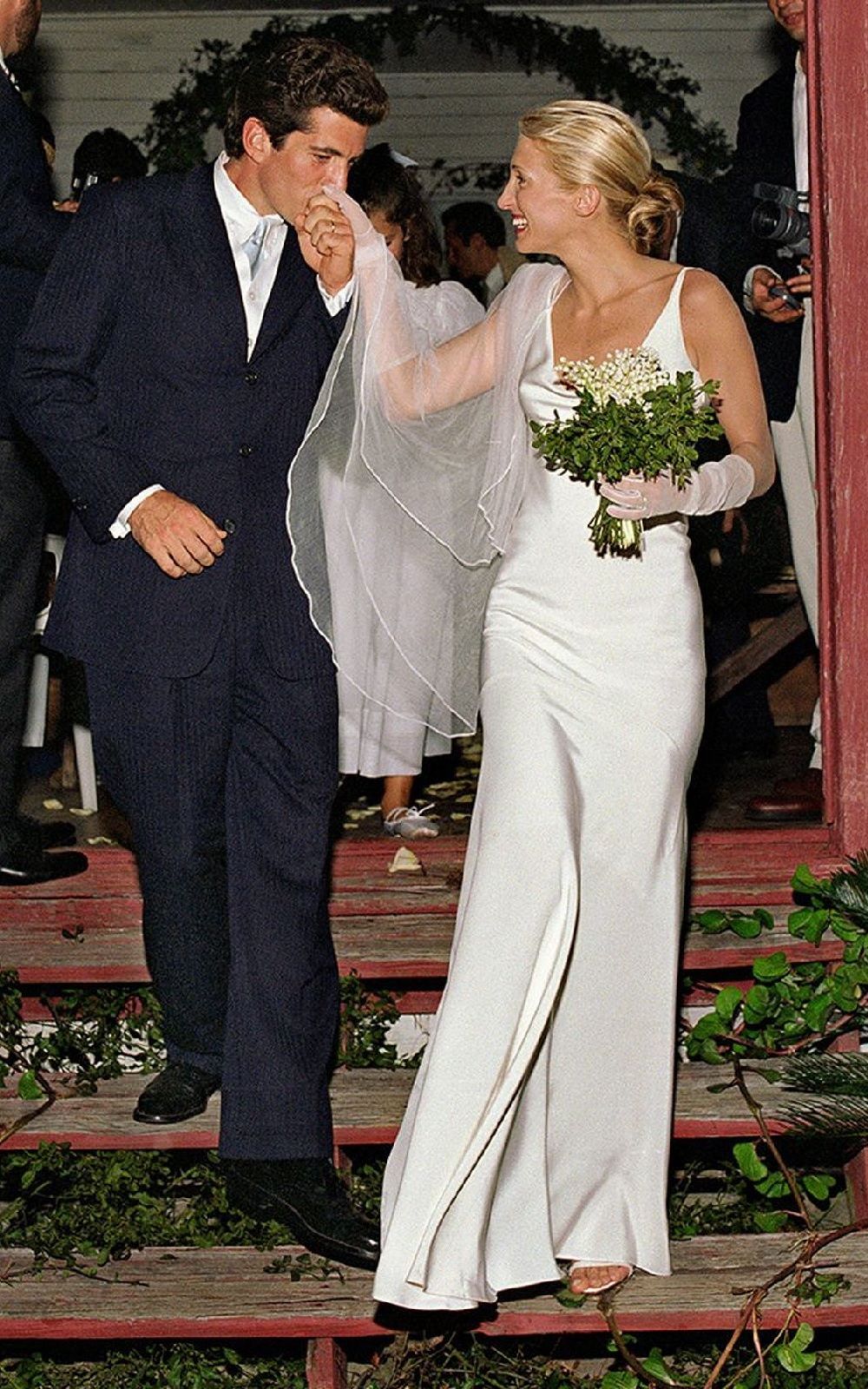 The marriage to Jamie Hince from The Kills didn't last long, but Kate Moss's dress has become one of the most popular ever. For the look of the boho ceremony in a Cotswolds village, the model called John Galliano. The designer, who was recently fired from the Maison Dior following his arrest under the influence of alcohol for violent behaviour and anti-Semitic insults, returned to work just for his friend and created a veiled slip dress inspired by the 1920s, with rhombus cuts and precious embroidery in rhinestones, beads and sequins adding a play of light. Kate's shoes were made by Manolo Blahnik.