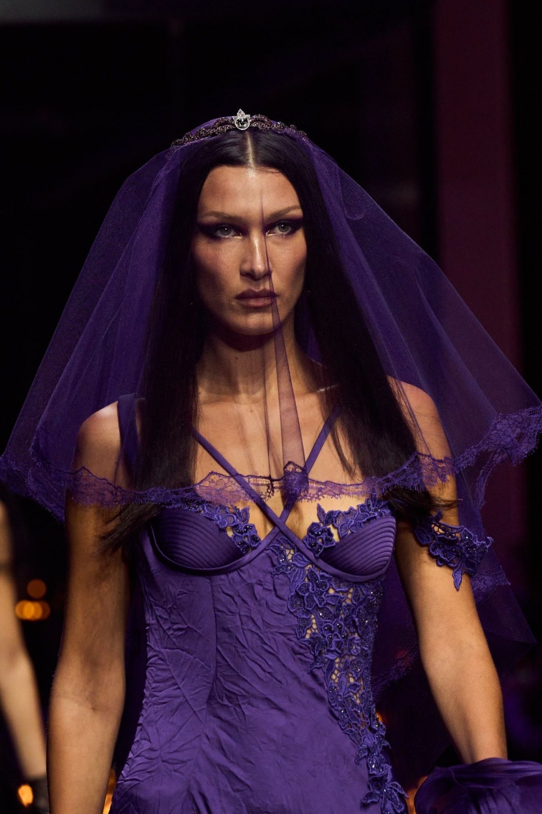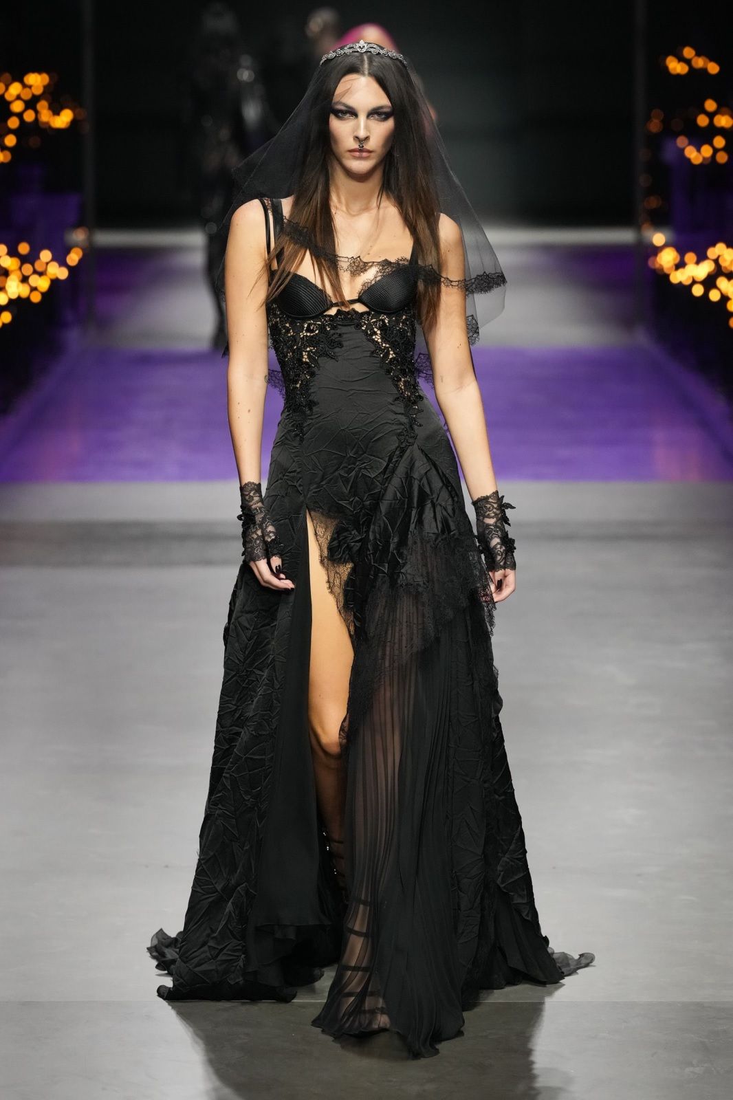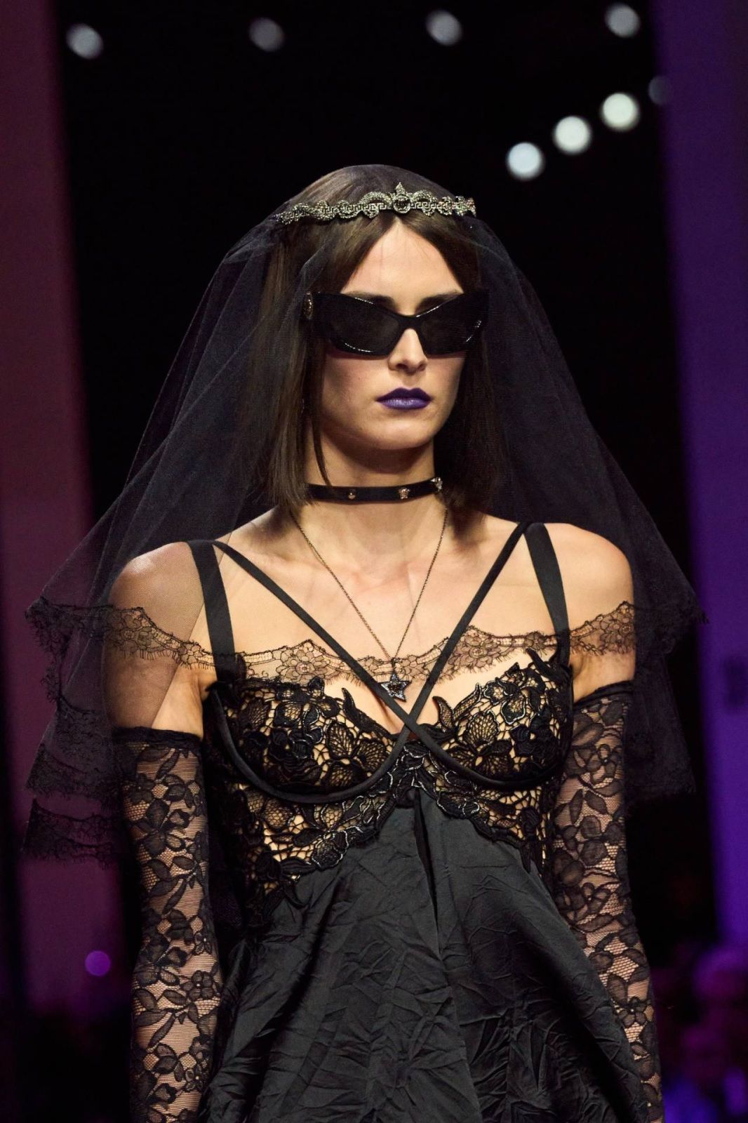 Get a slip dress, veil, black eyeliner and lipstick in dark shades, preferably black, purple or plum. What's next? Killer attitude, like a strong, complicated and sensual woman. Versace leaves nothing out, even if you reject the concept of the bride in a dark tone.